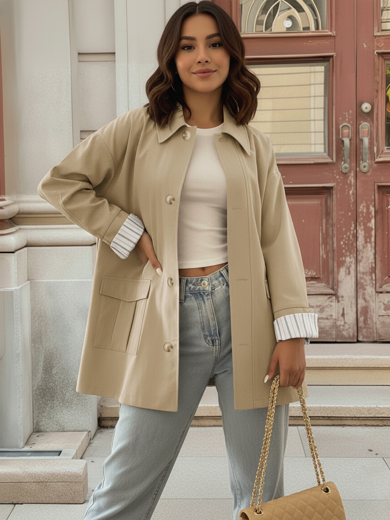 Solid Color Faux Suede Hollowed Detail Retro Style Jacket