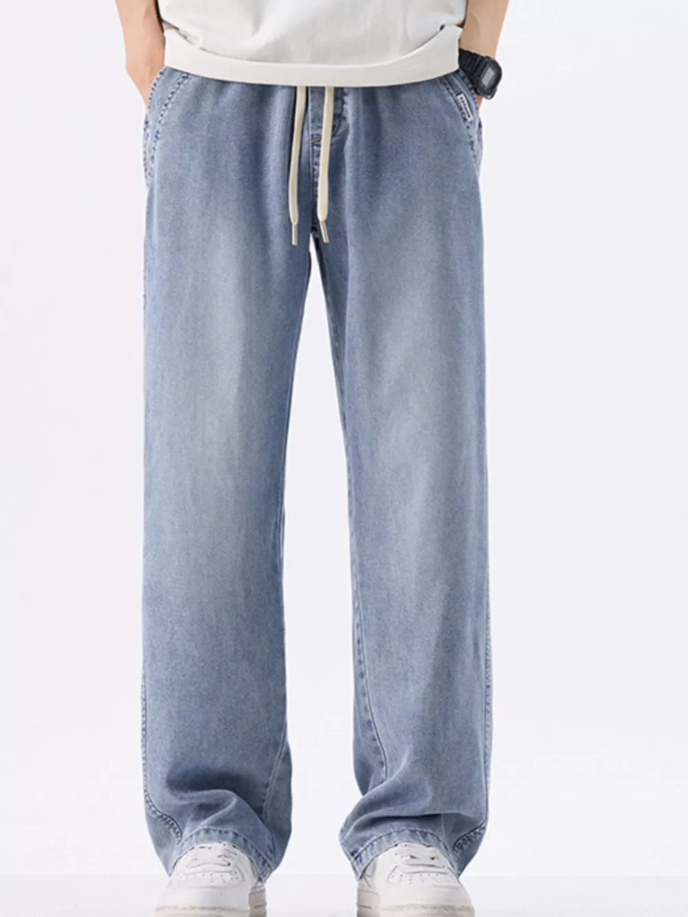 Men's Plus Size Drawstring Wide Leg Jeans