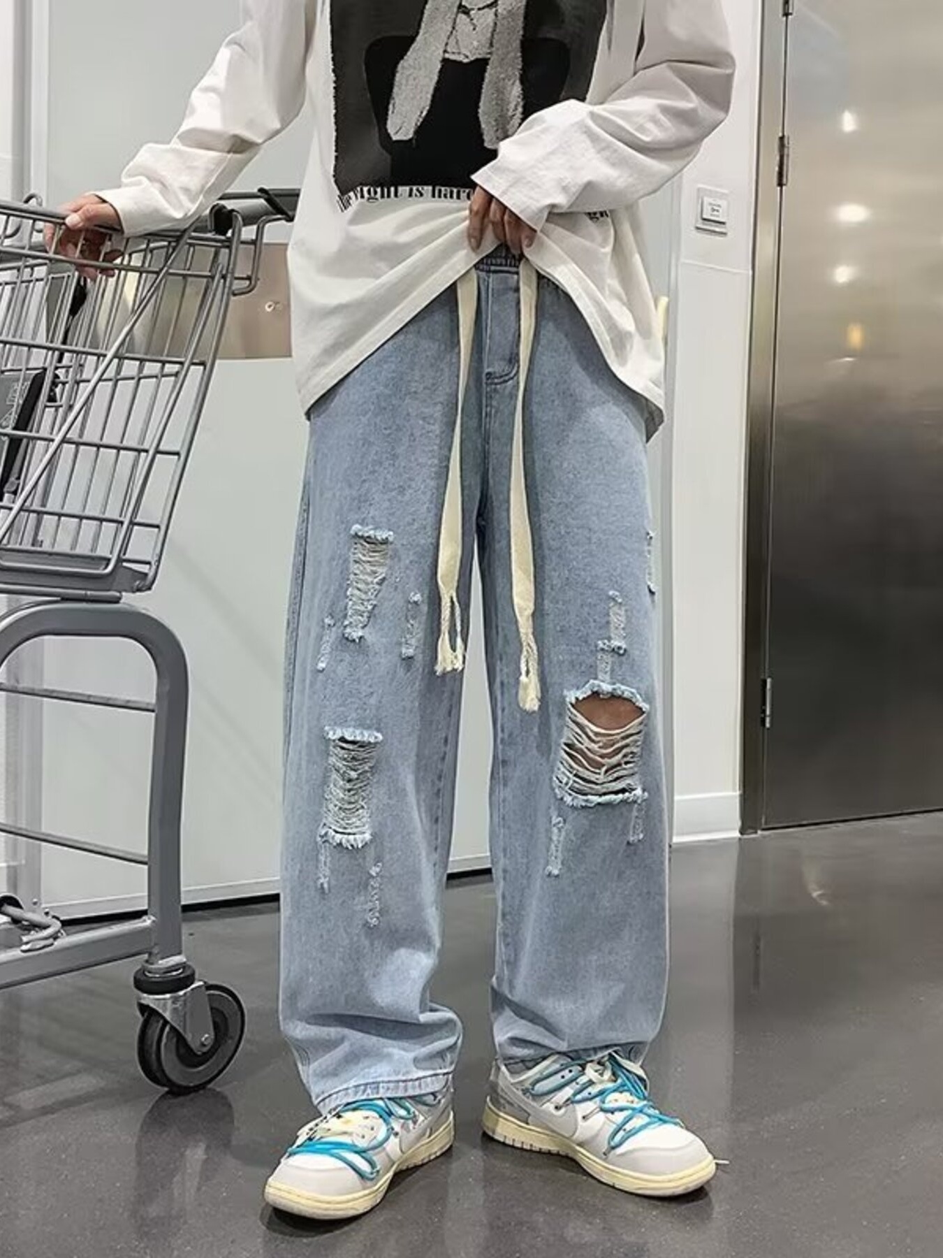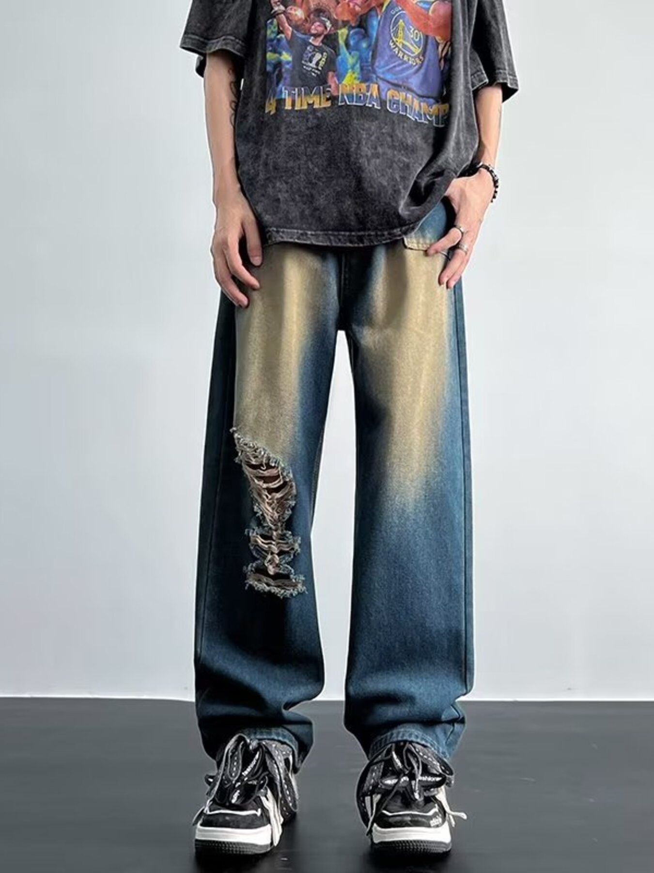 Men's Distressed Wide Leg Baggy Jeans