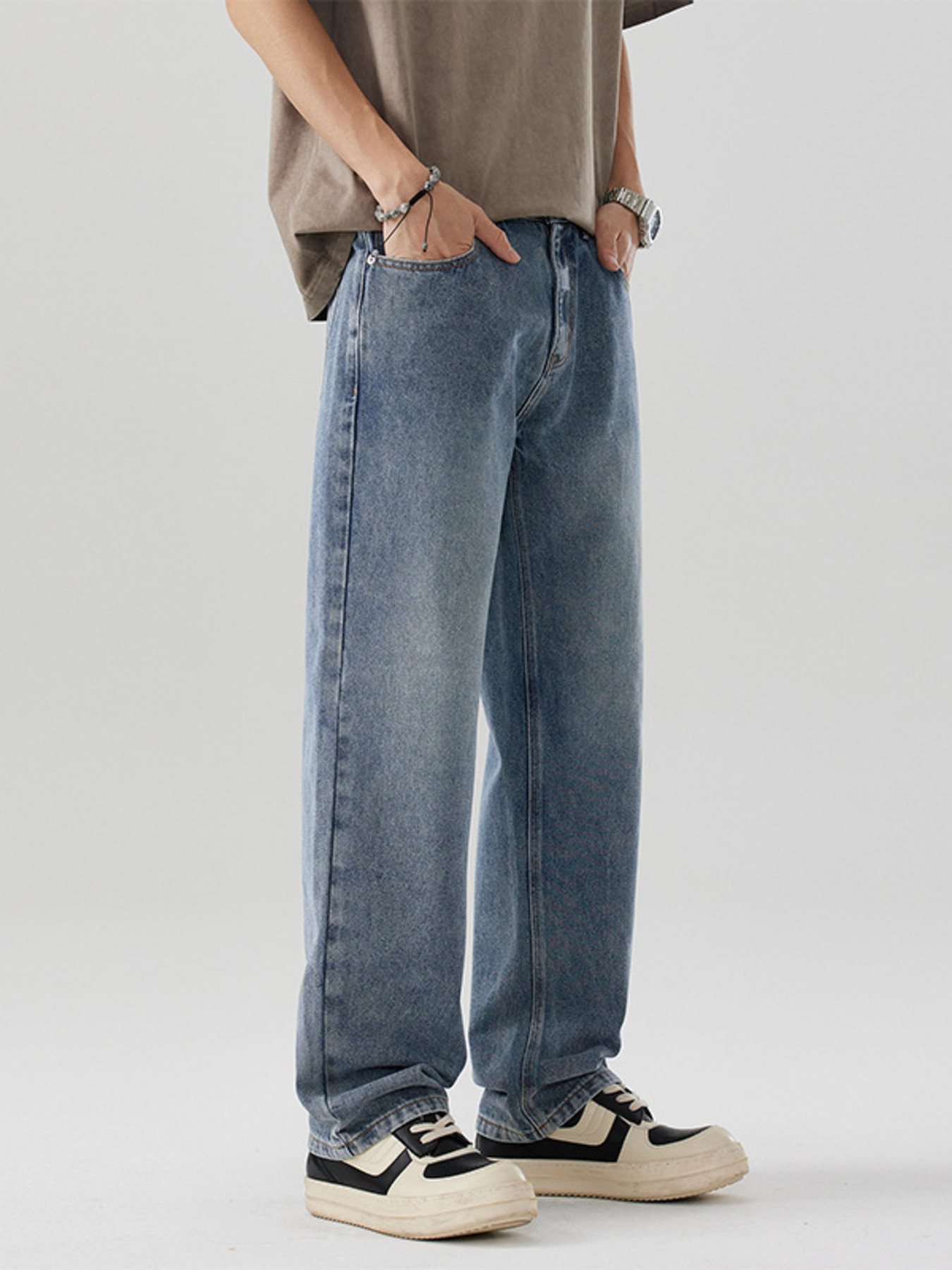 Men's Wide Leg Jeans with Pockets