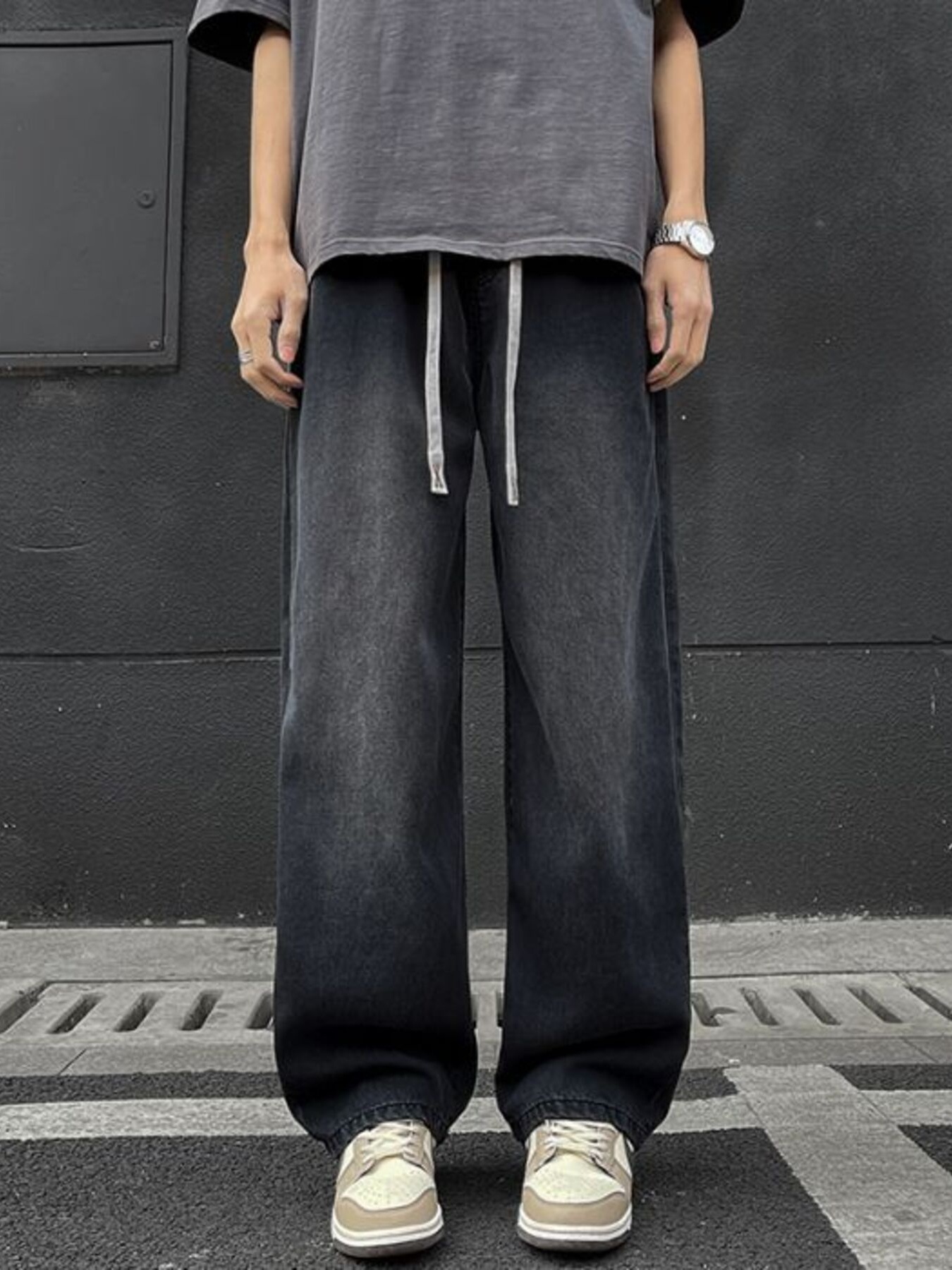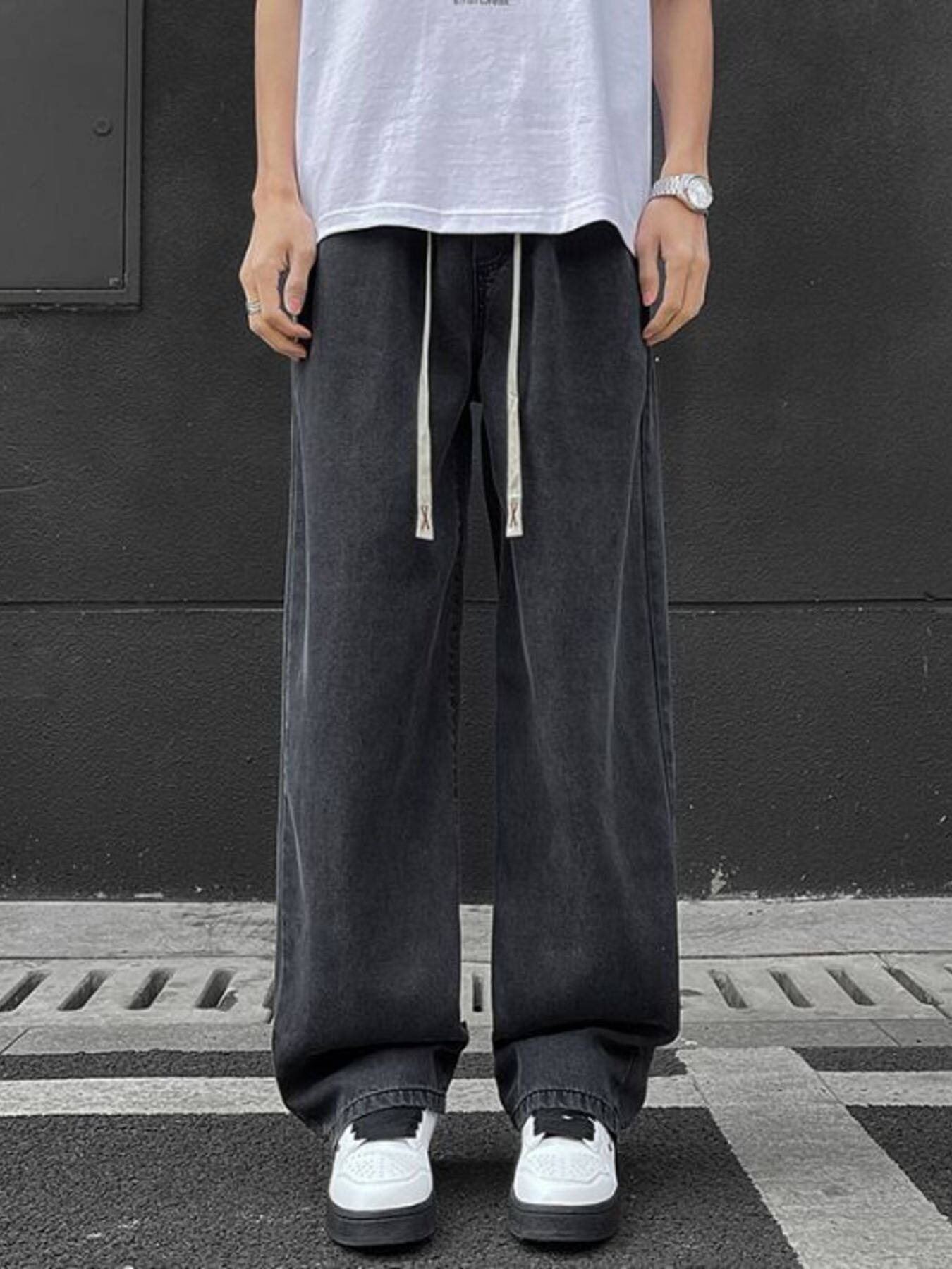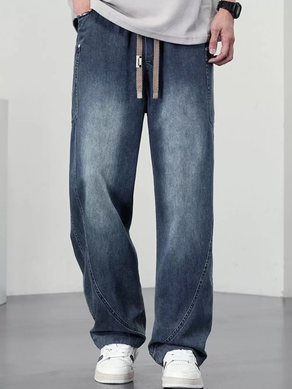 Men's Plus Size Drawstring Wide Leg Jeans