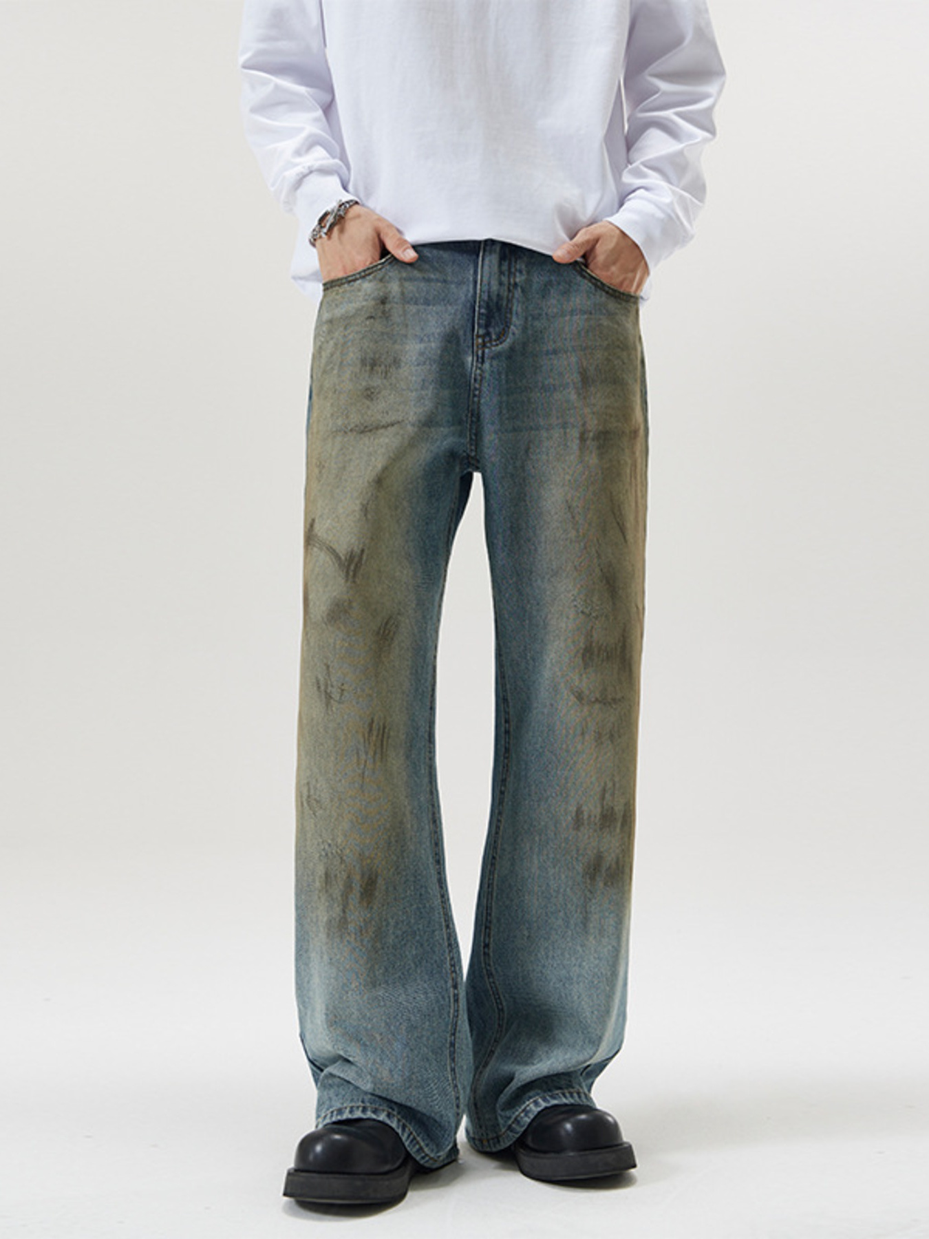 Men's Gradient Wash Wide Leg Jeans