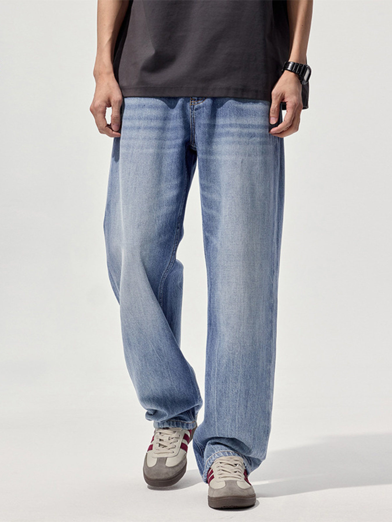 Men's Wash Wide Leg Relaxed Fit Jeans