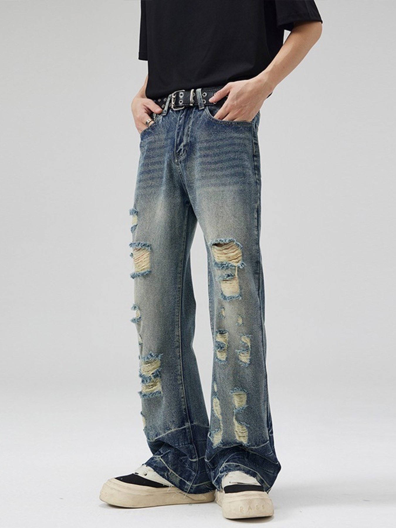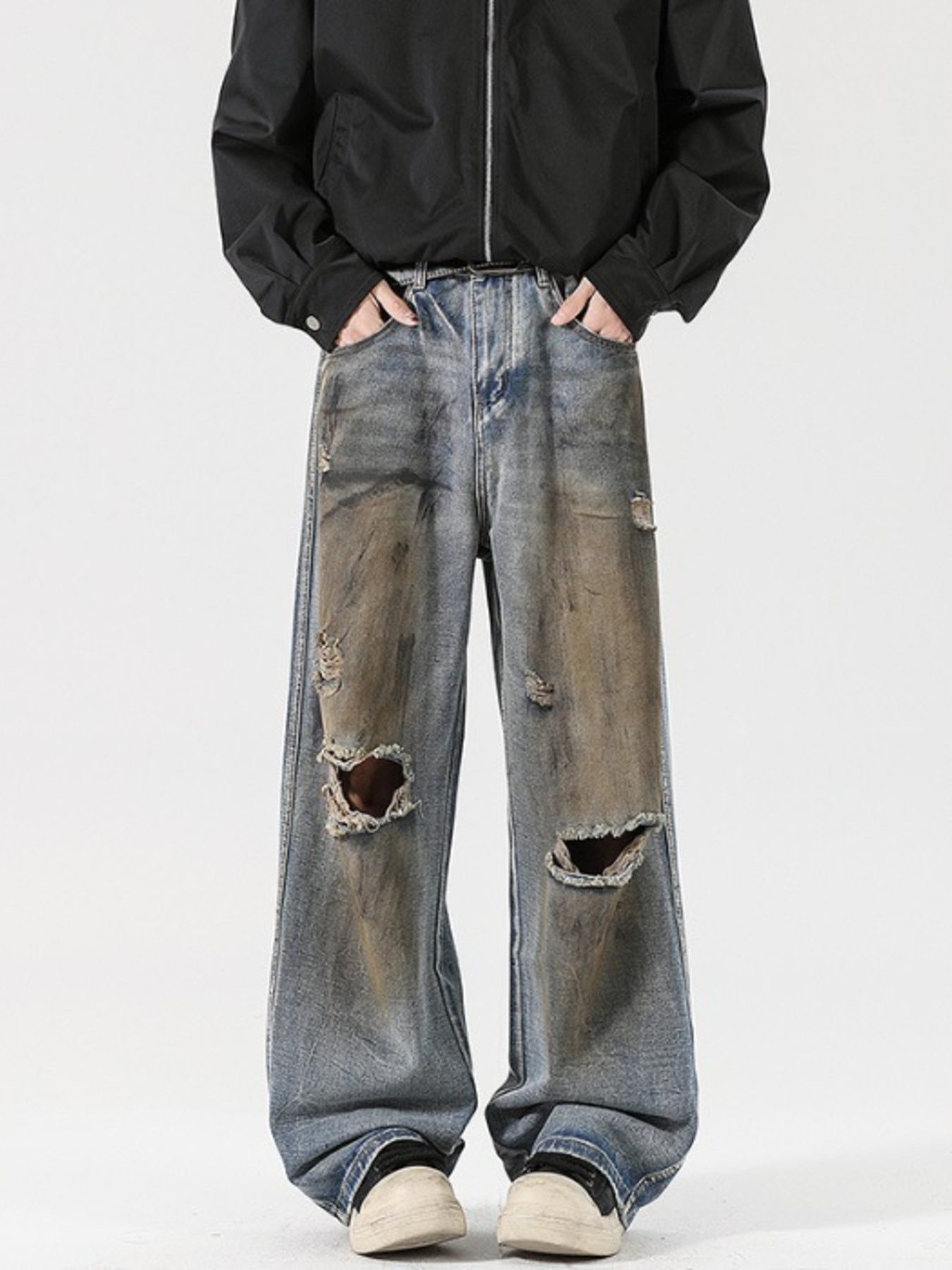 Men's Full Size Distressed Wide Leg Jeans Plus Size