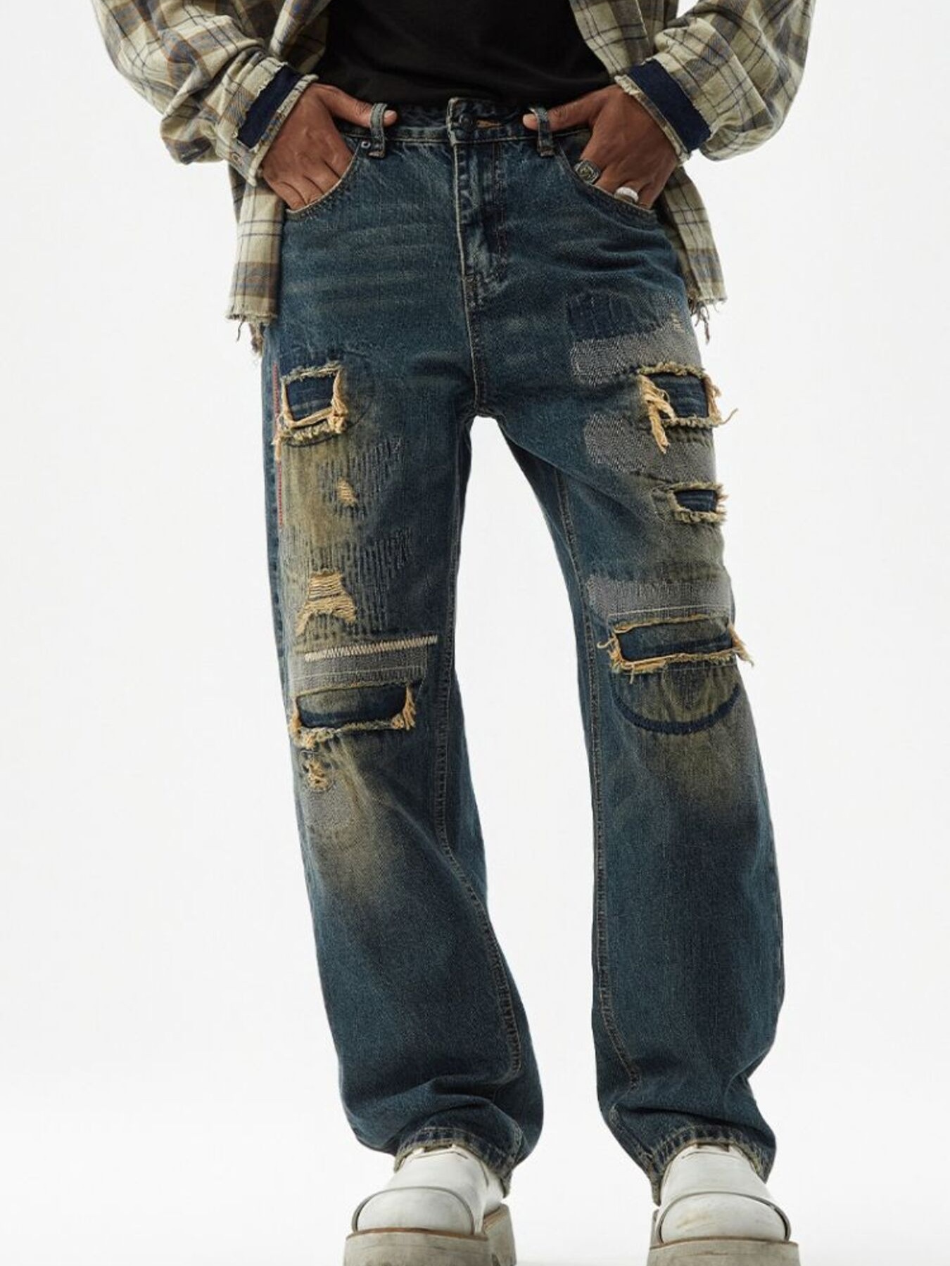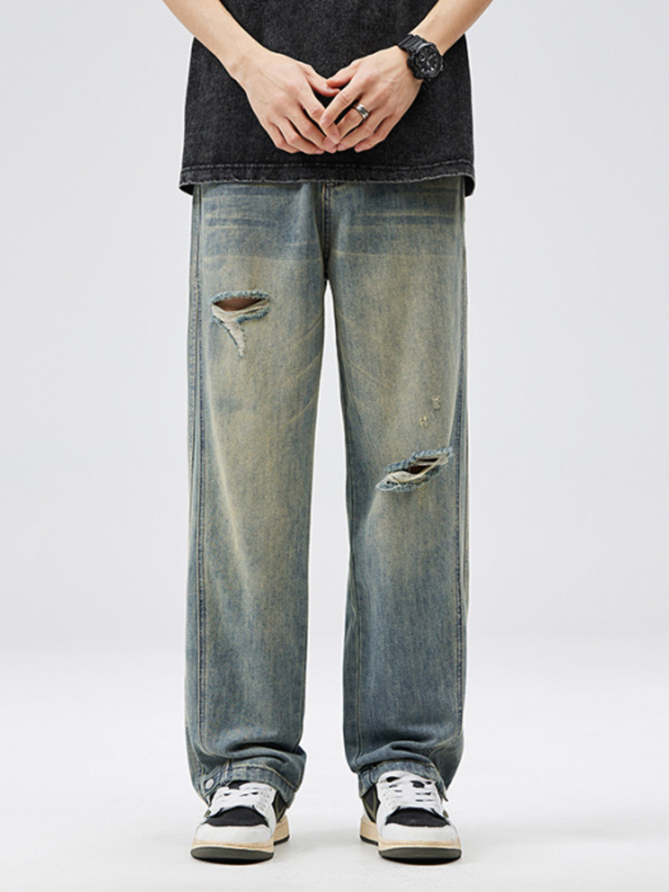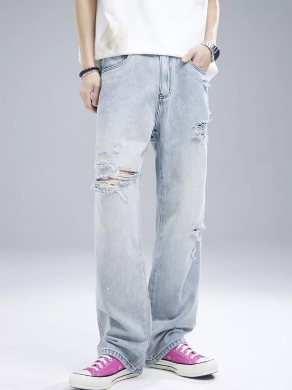 Men's Distressed Wide Leg Relaxed Fit Jeans