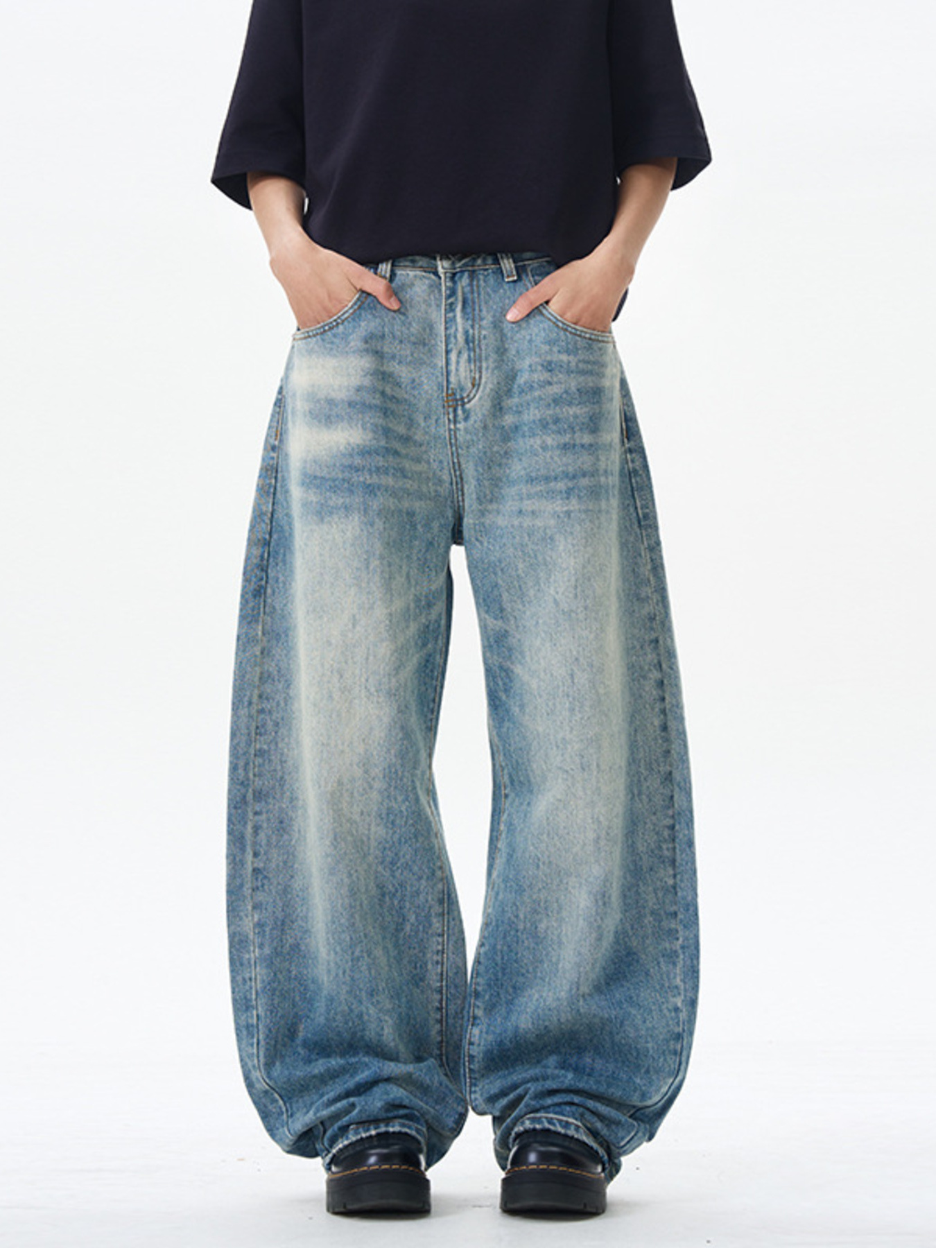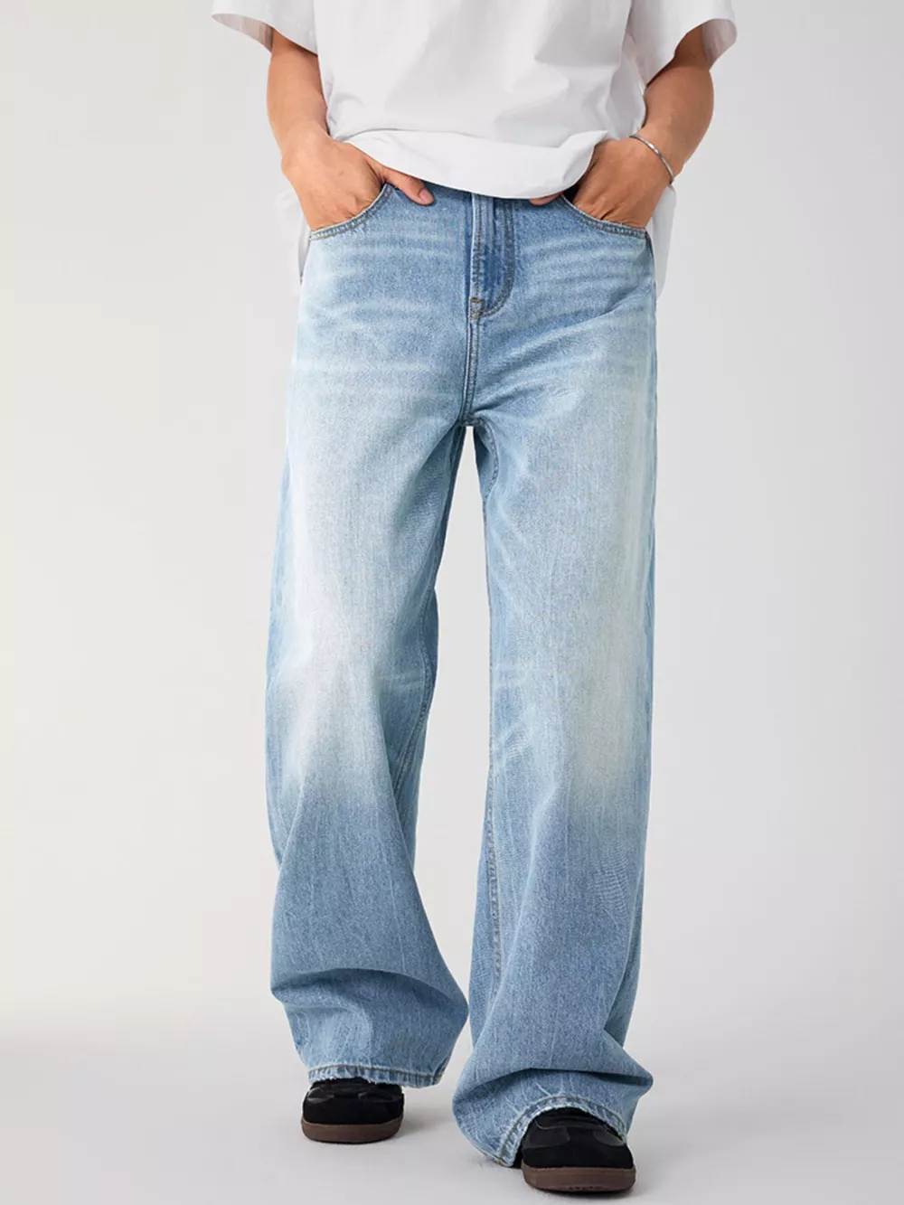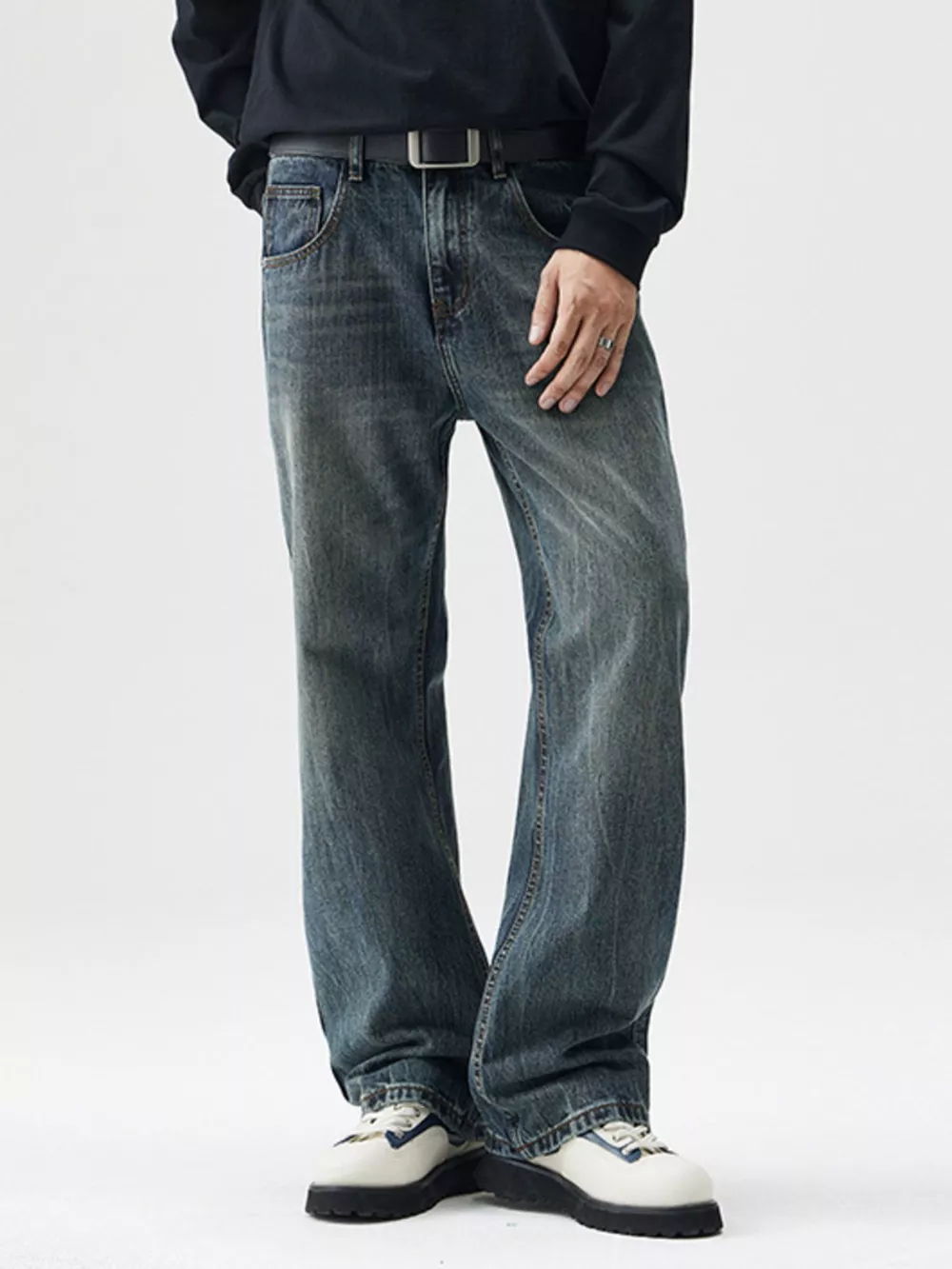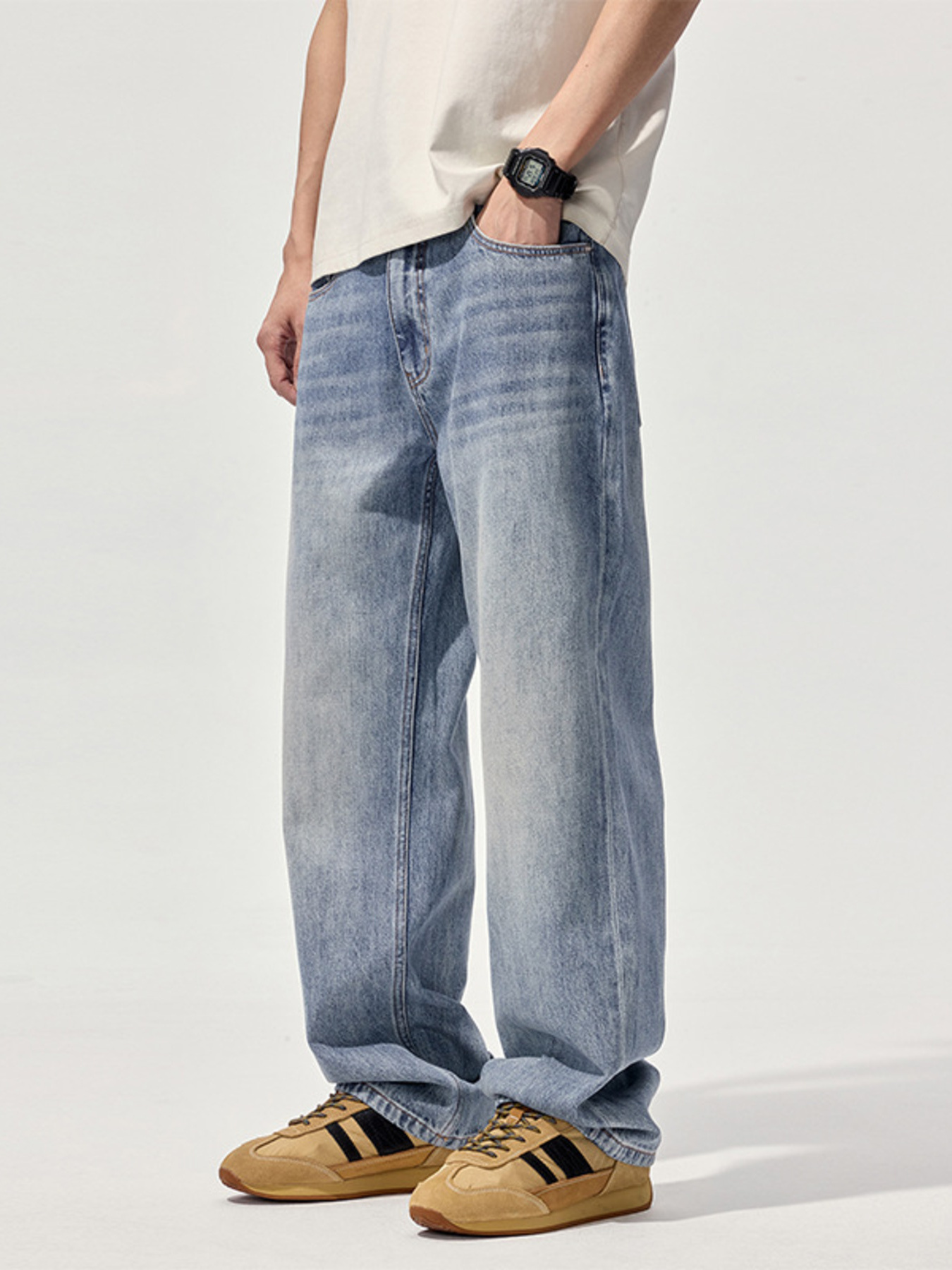 Men's Wash Relaxed Fit Wide Leg Jeans