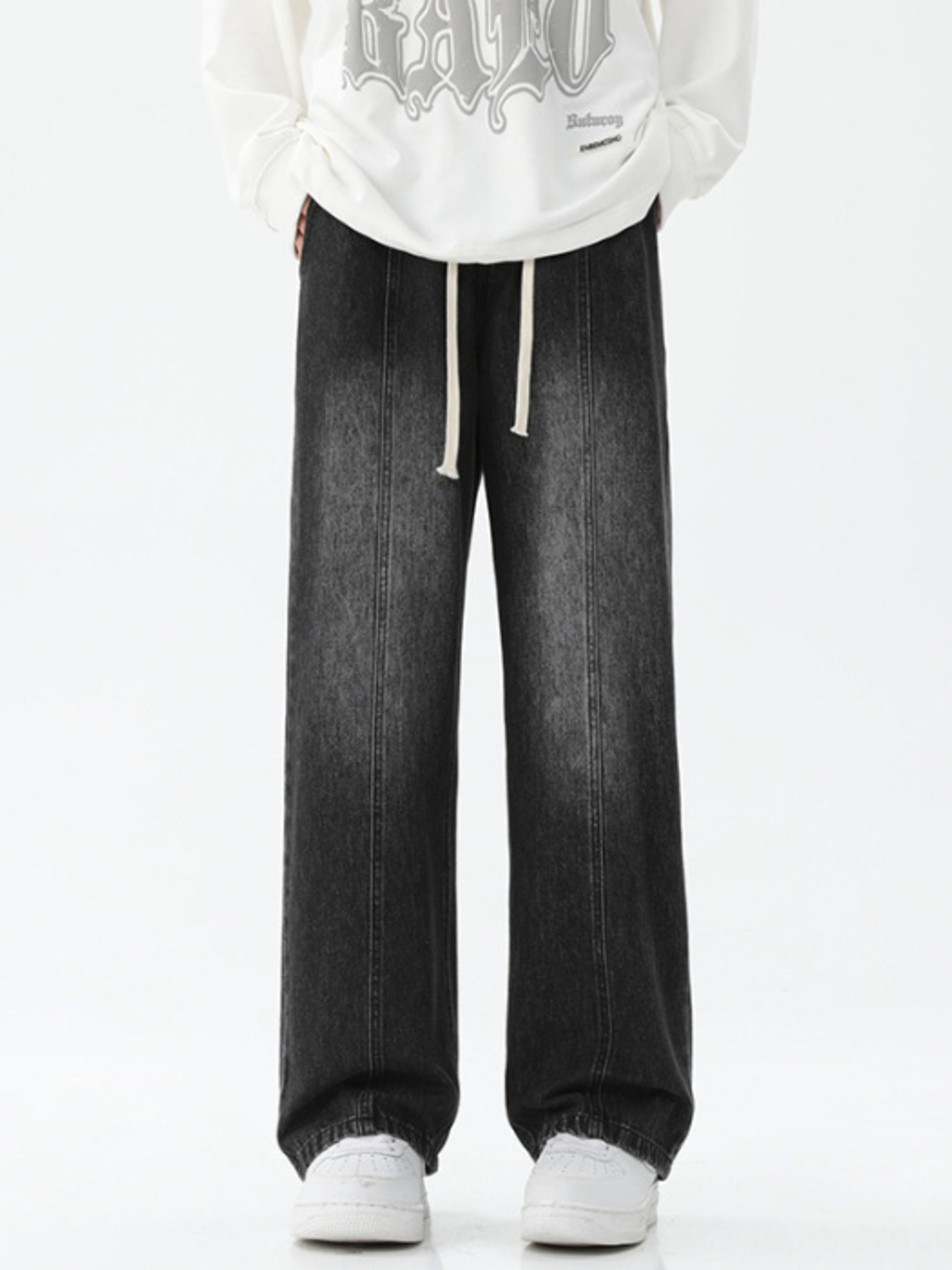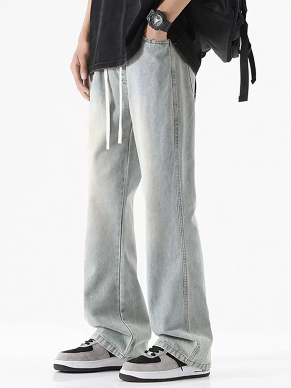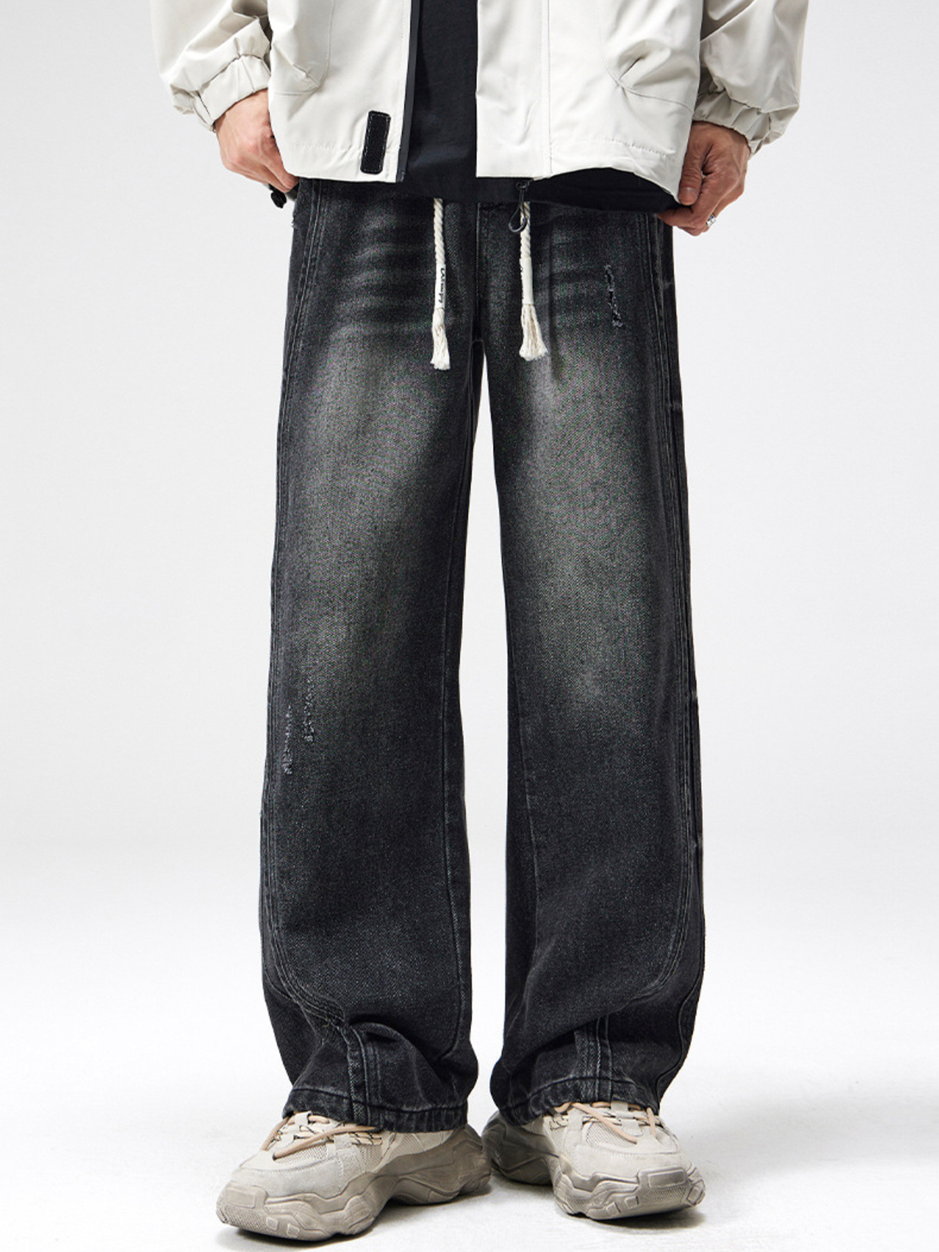 Men's Full Size Drawstring Wide Leg Jeans Plus Size