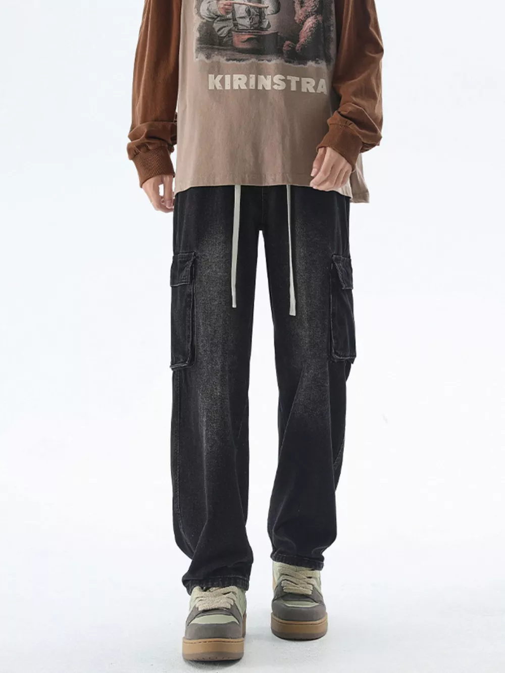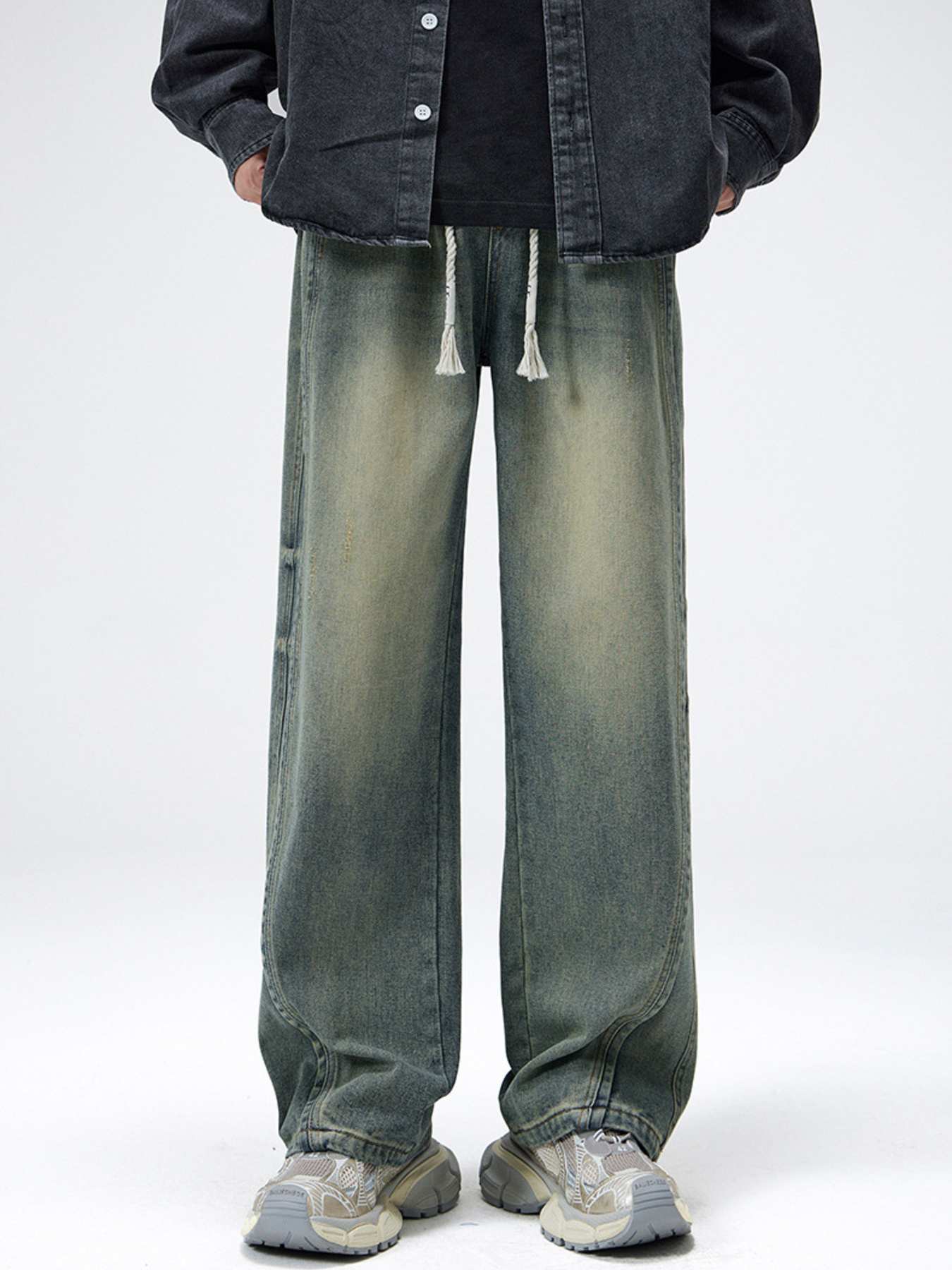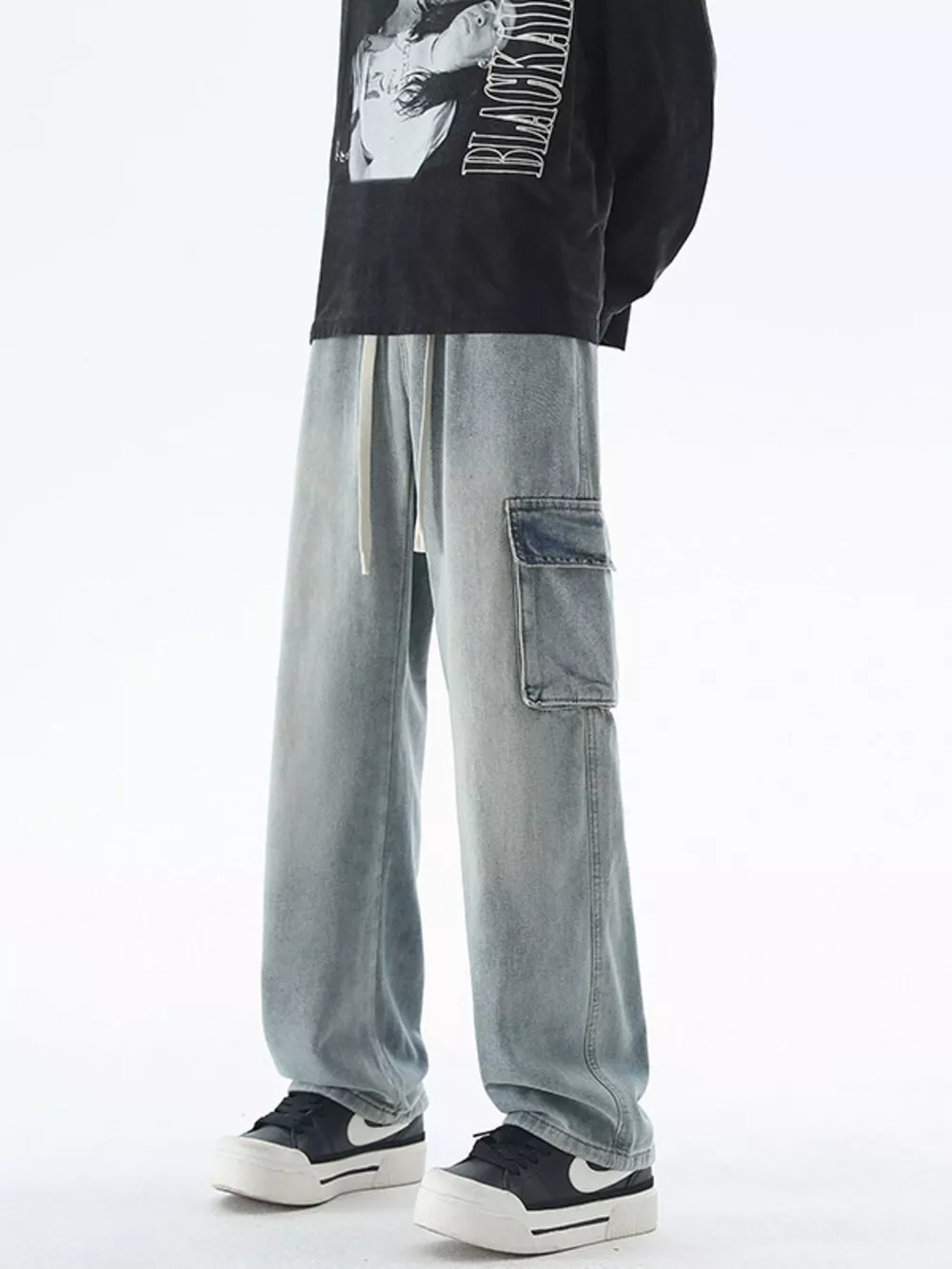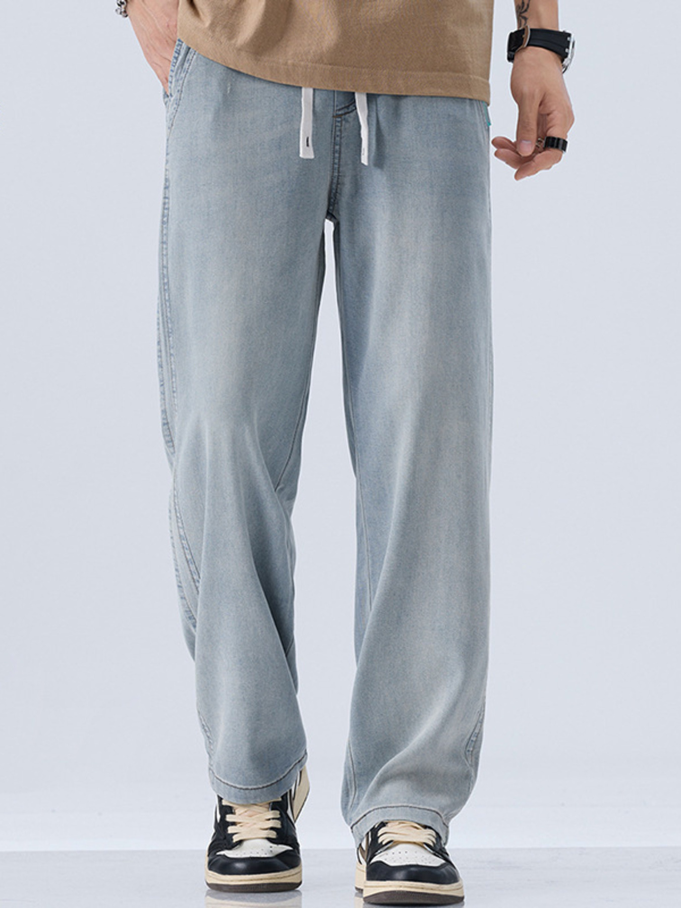 Men's Full Size Drawstring Wide Leg Jeans Plus Size