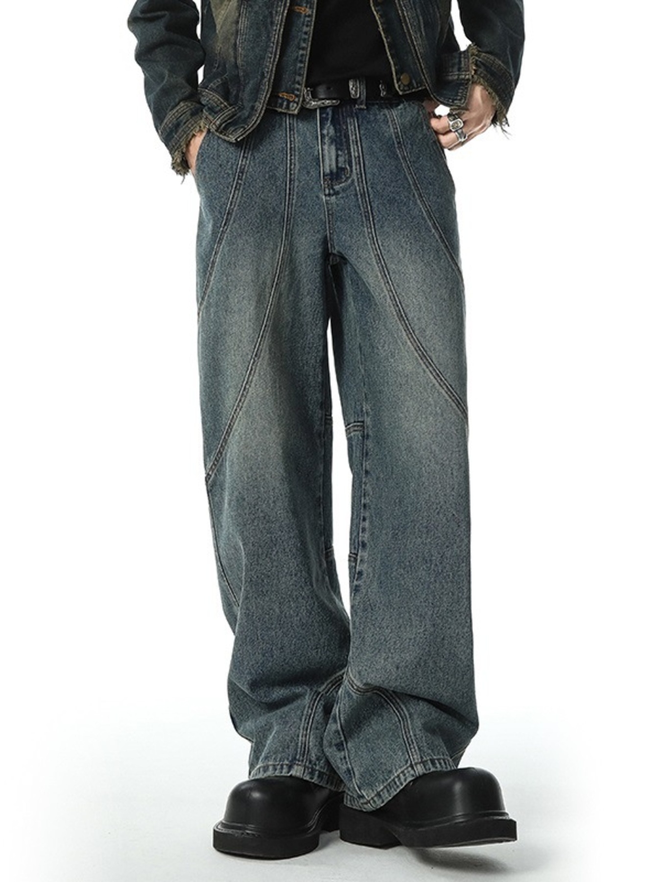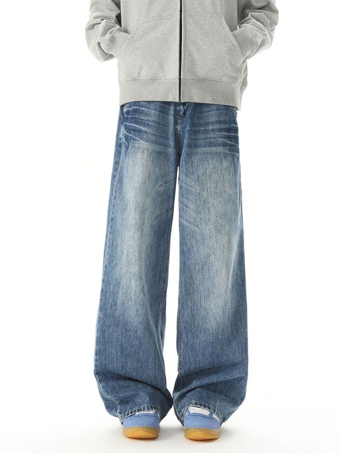 Men's Distressed Wash Relaxed Fit Wide Leg Jeans