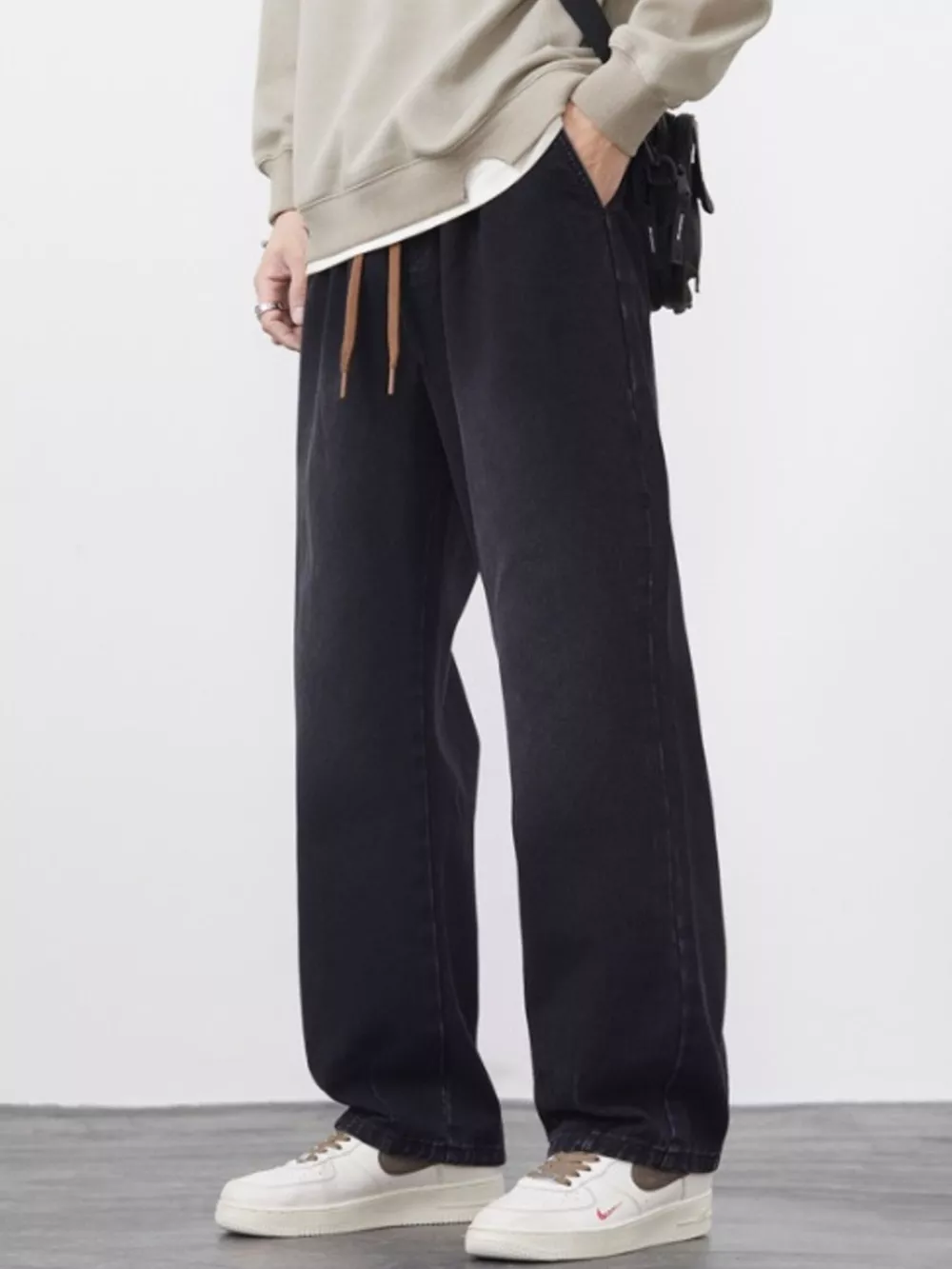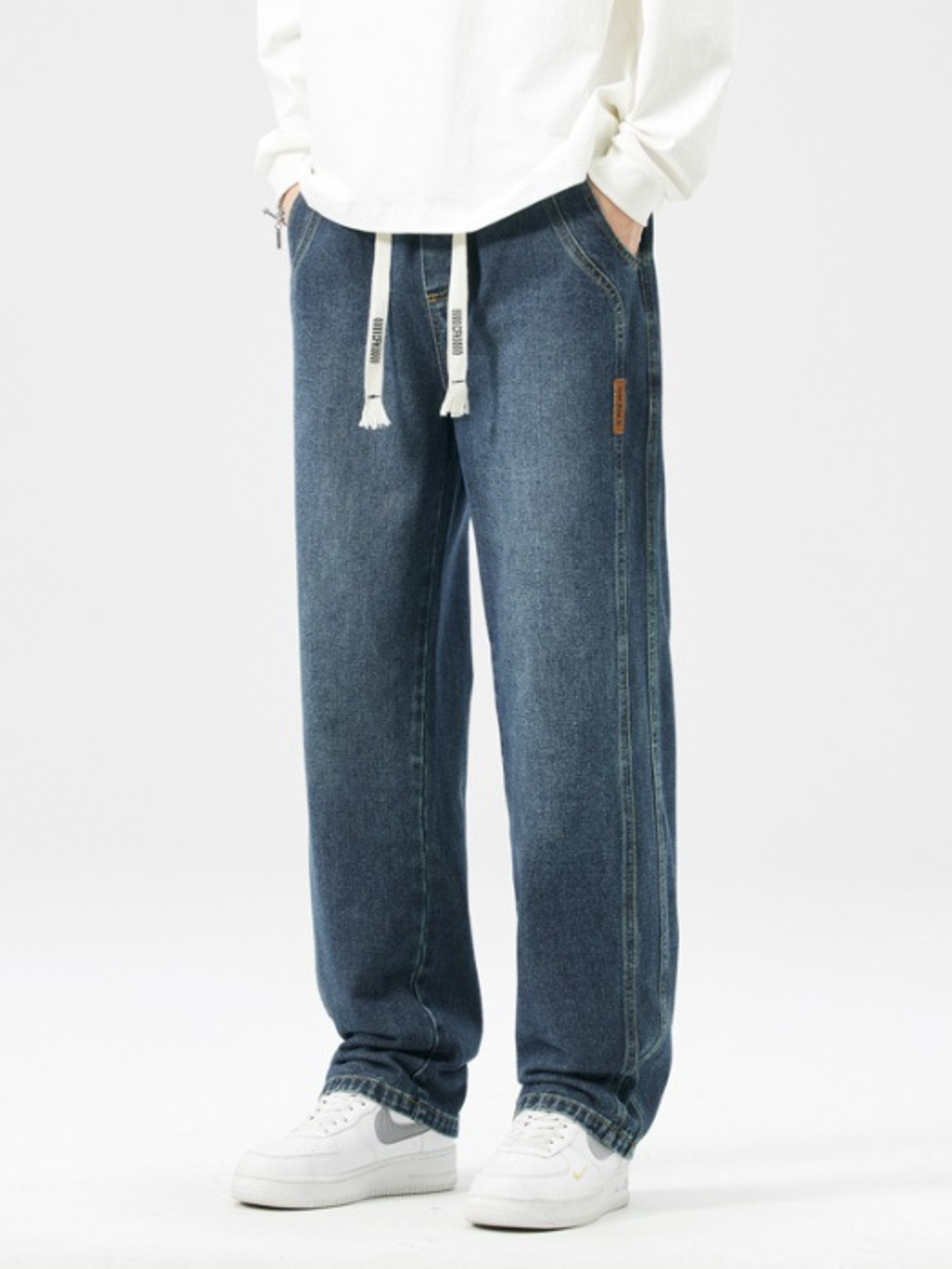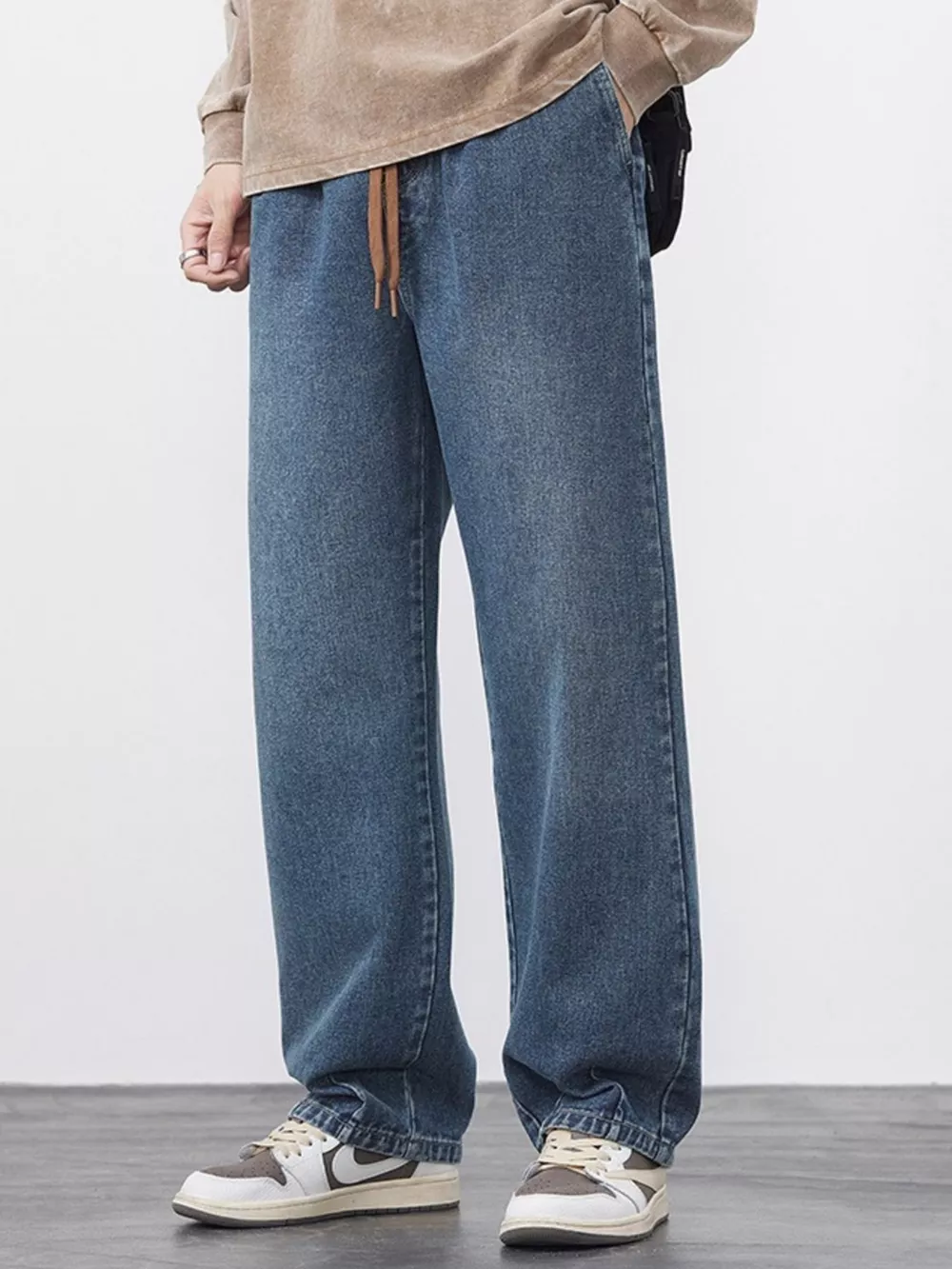 Men's Plus Size Drawstring Wide Leg Jeans
