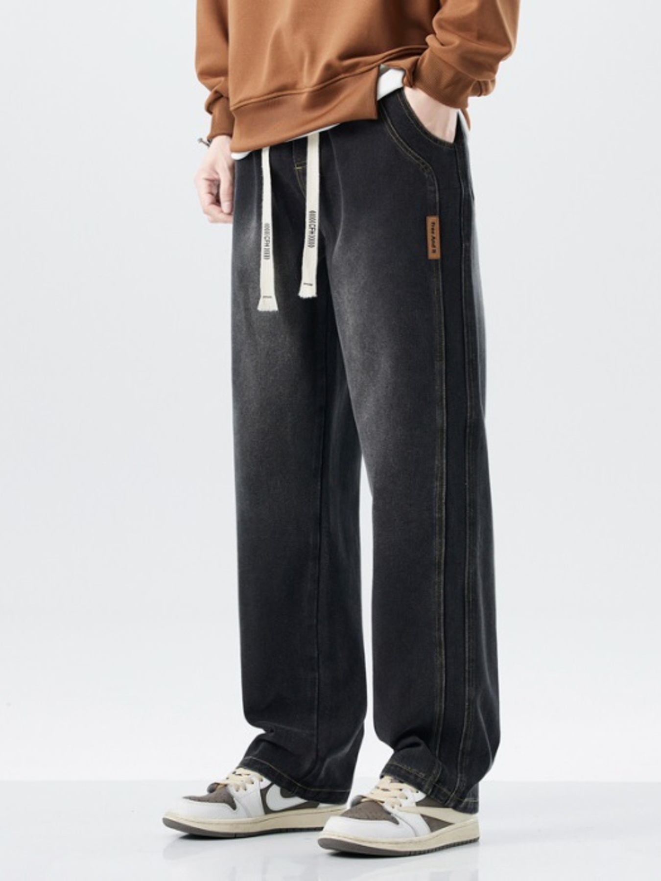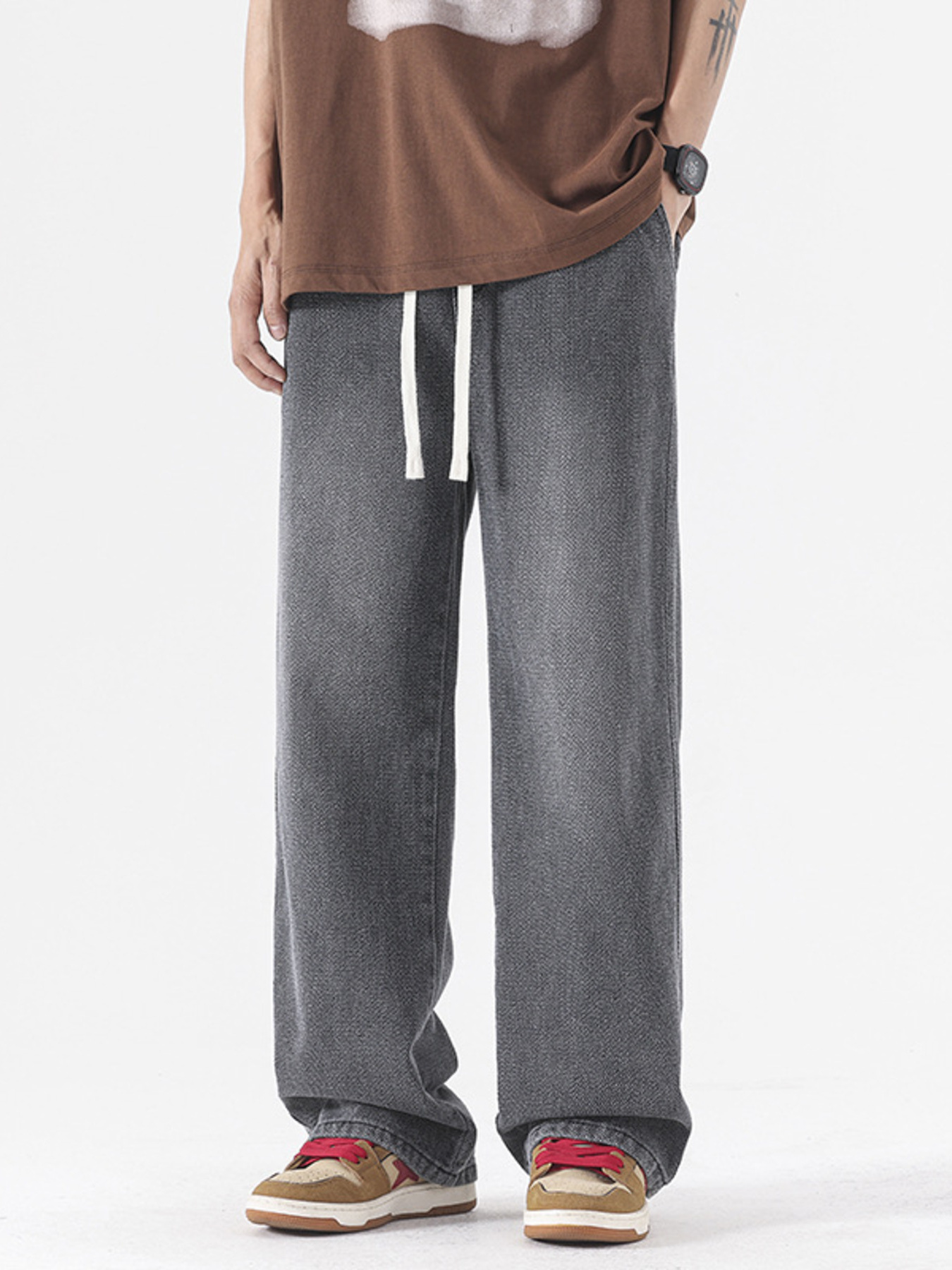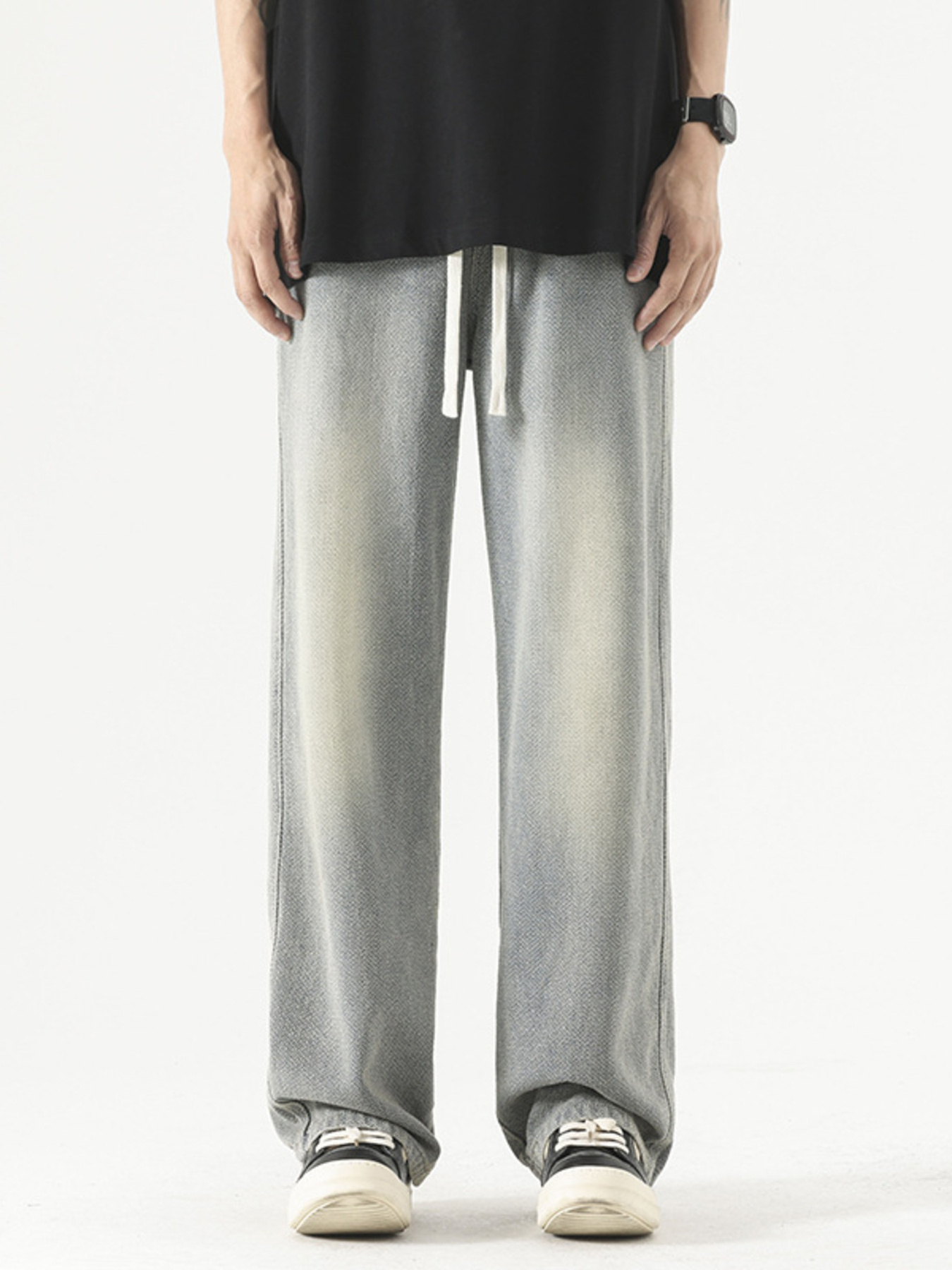 Men's Plus Size Drawstring Wide Leg Jeans