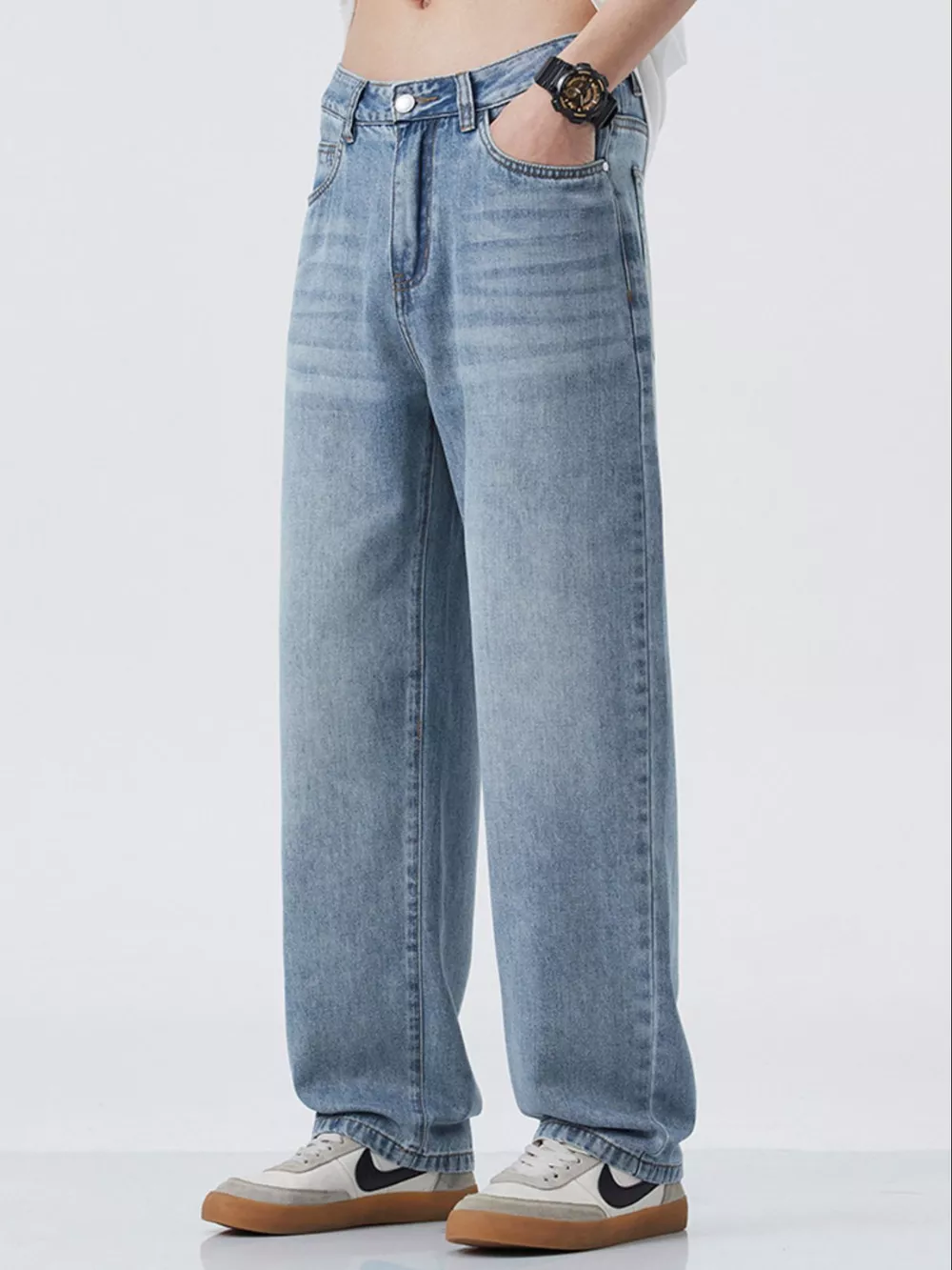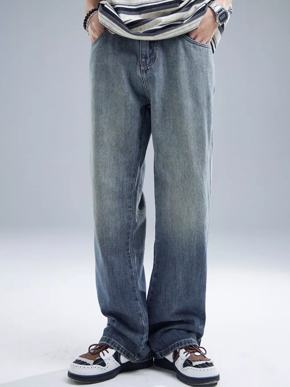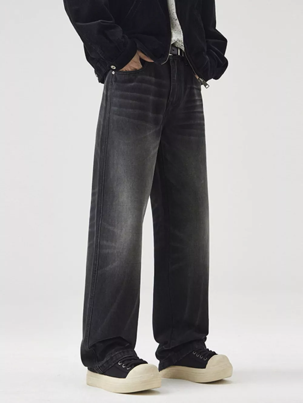 Men's Wide Leg Washed Jeans