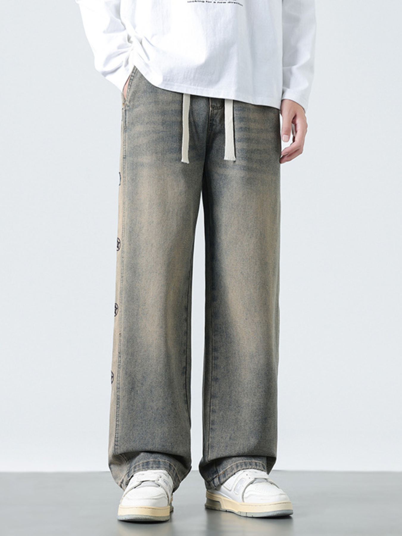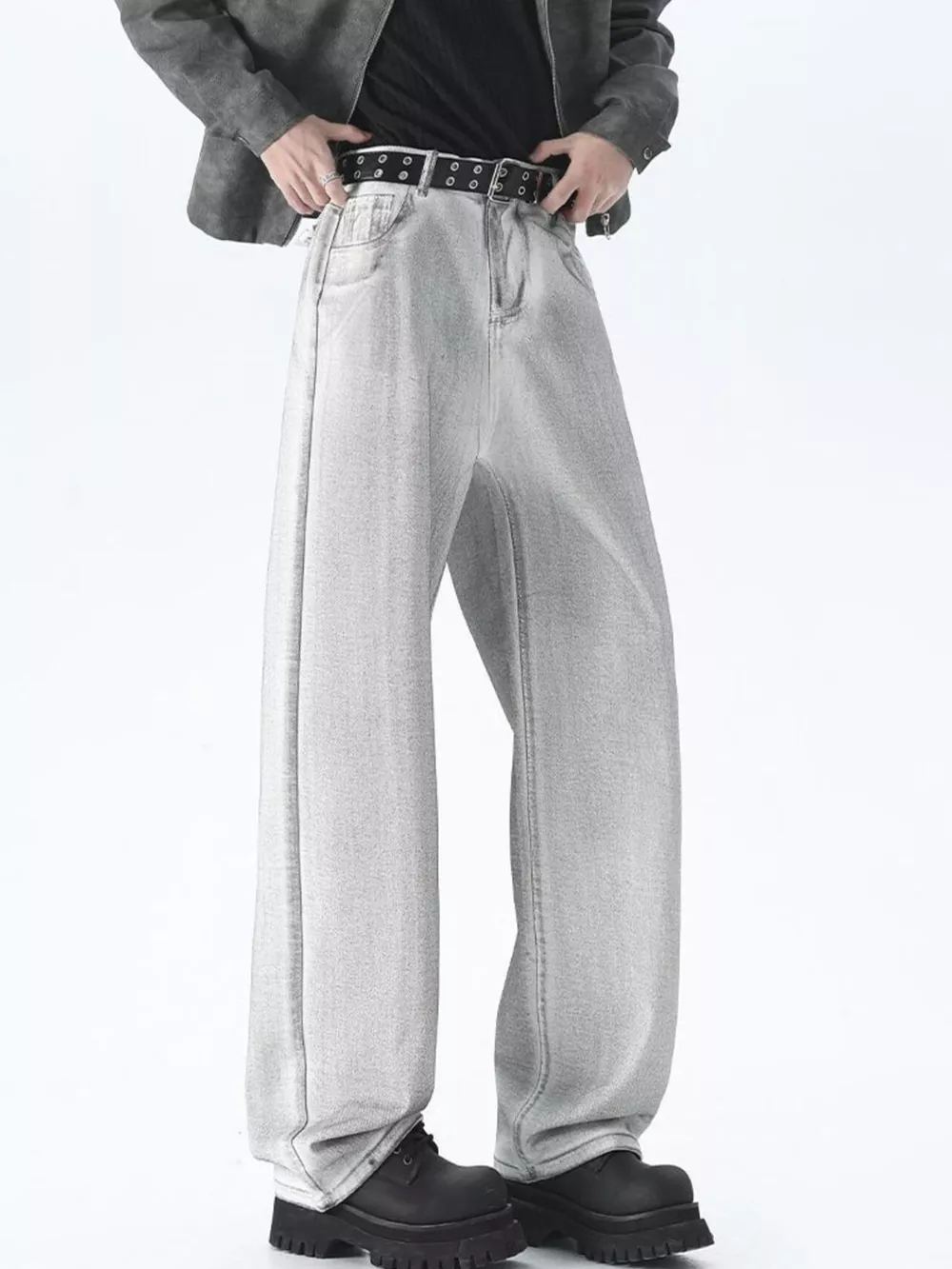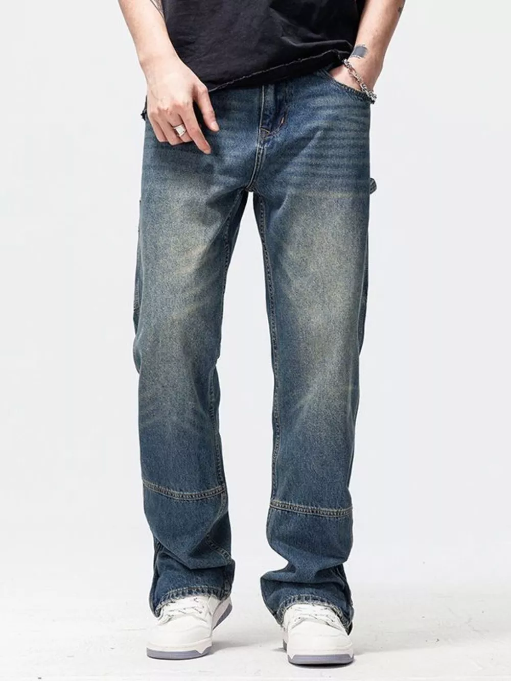 Men's Wide Leg Washed Jeans