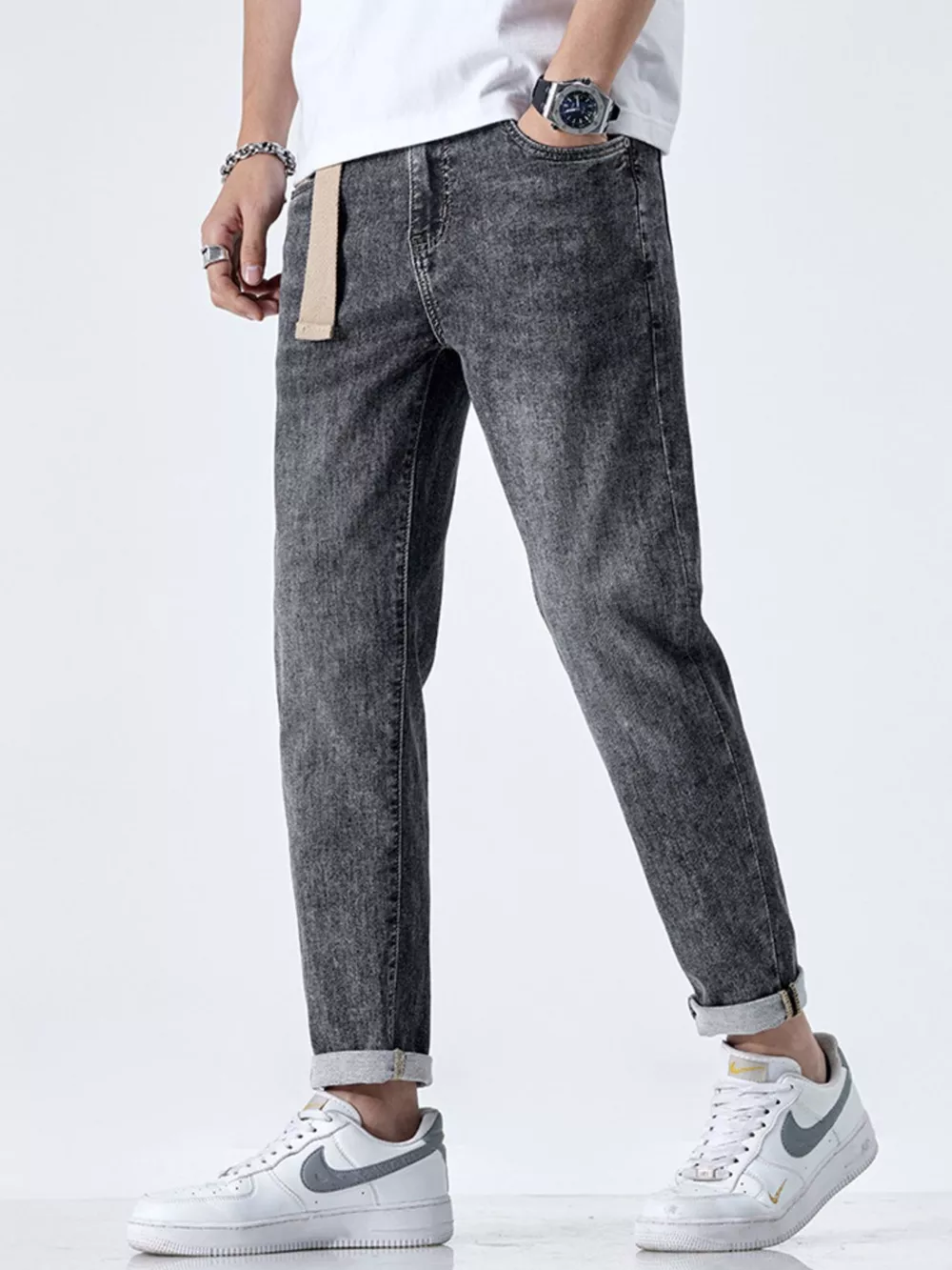 Men's Straight Leg Washed Jeans
