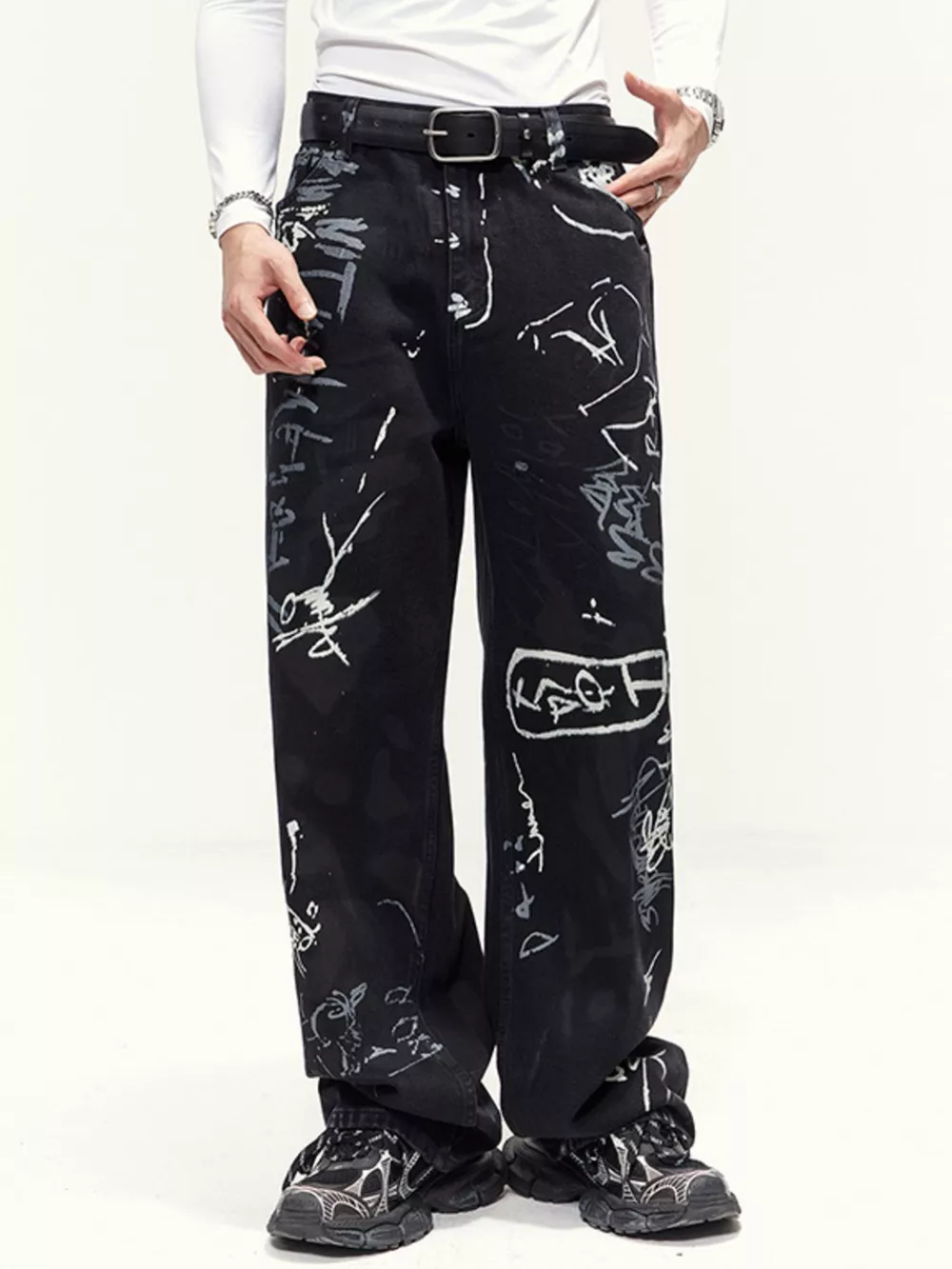 Men's Printed Wide Leg Jeans