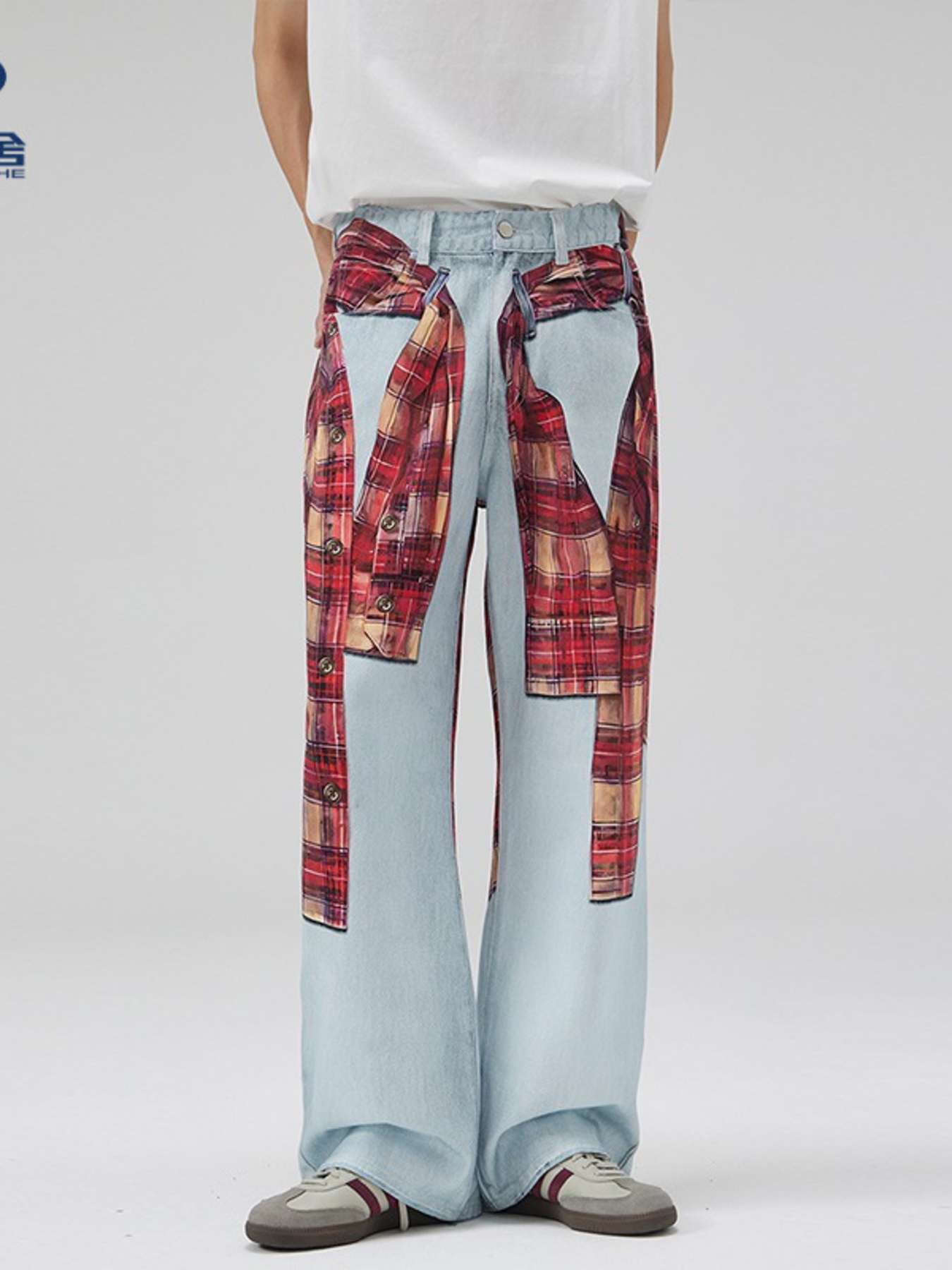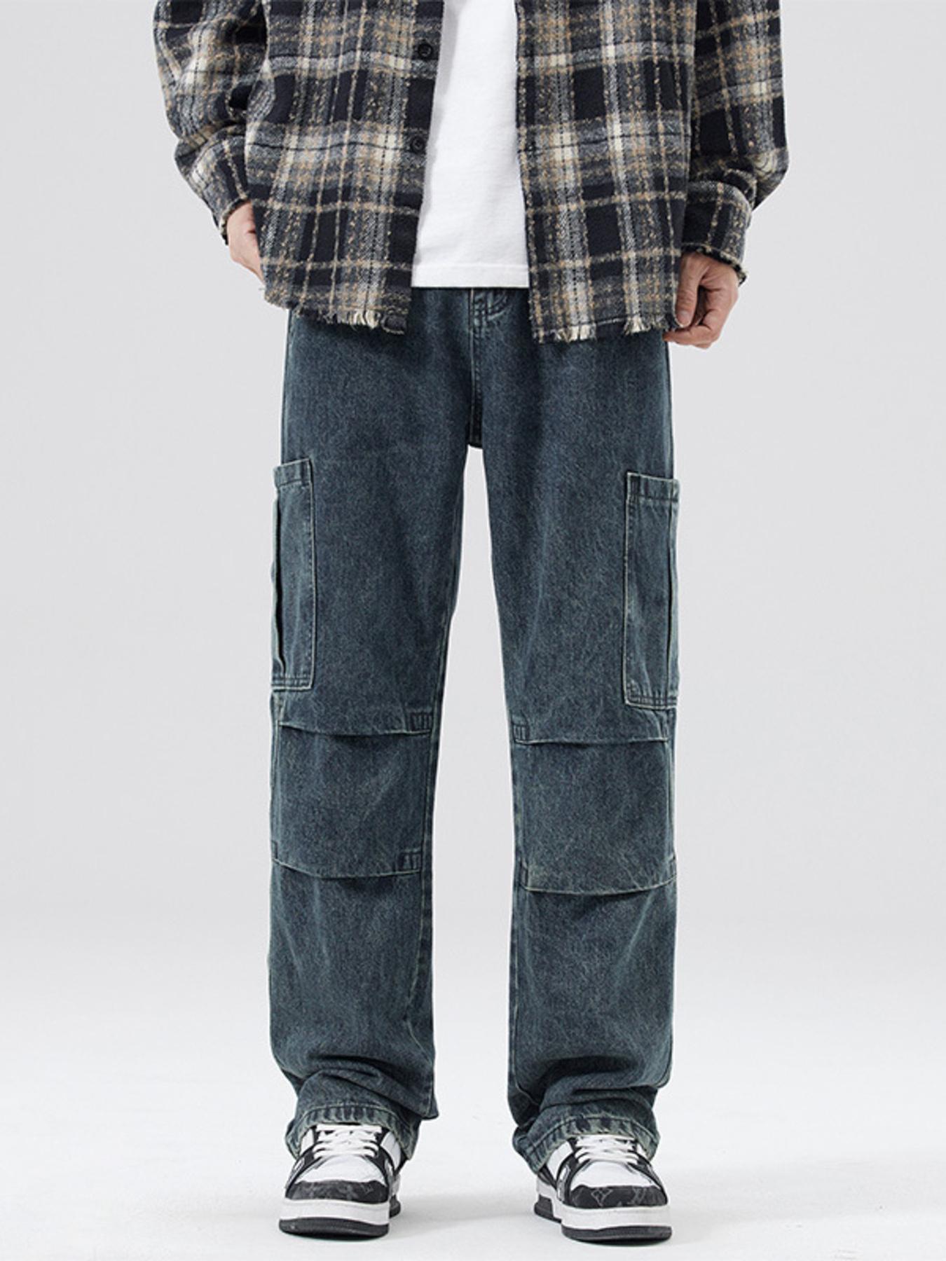 Men's Plaid Wide Leg Jeans