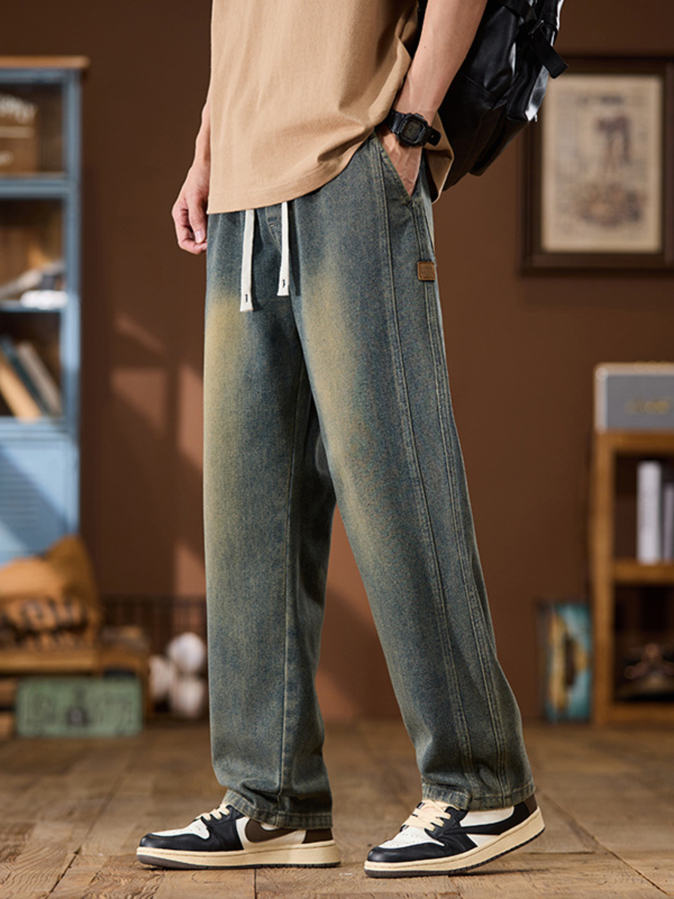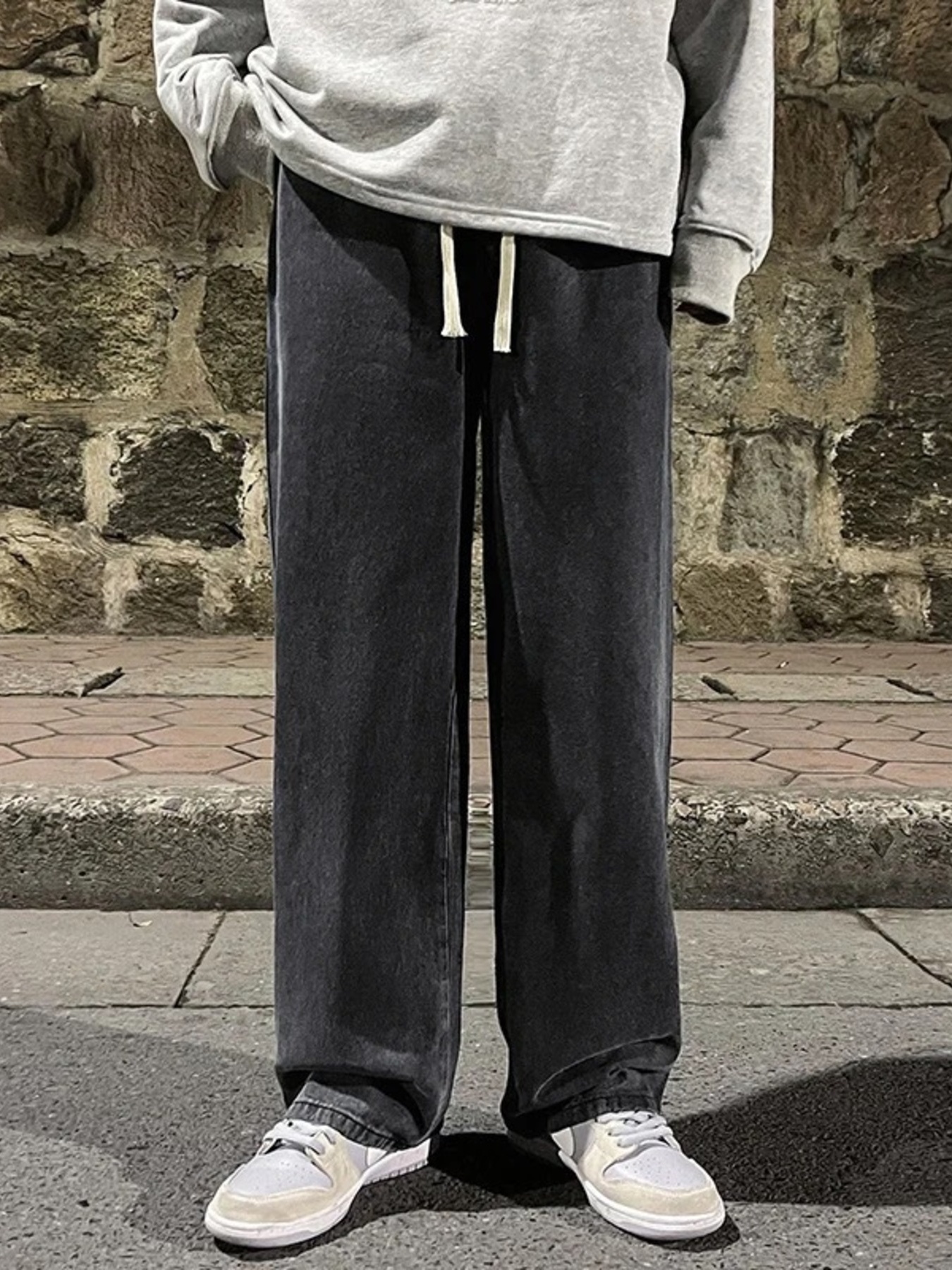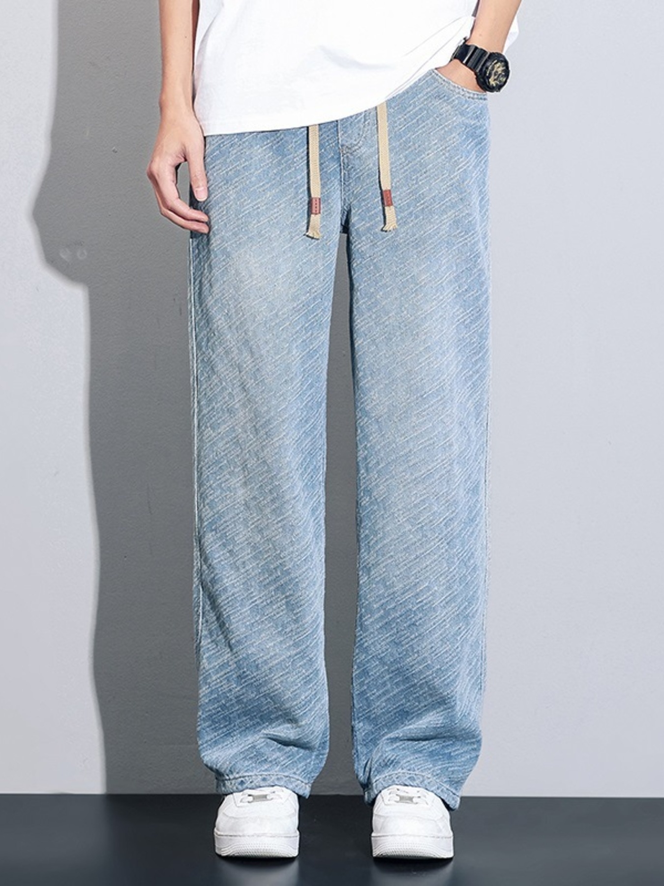 Men's Full Size Drawstring Wide Leg Jeans Plus Size