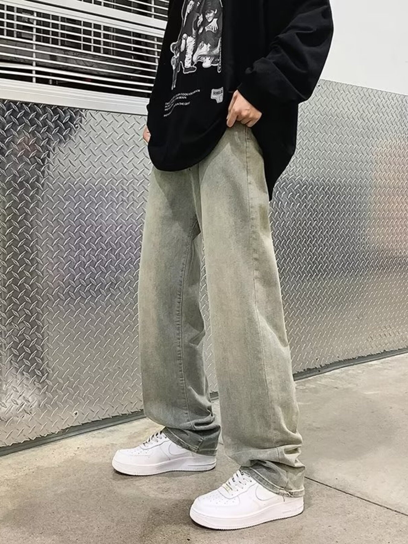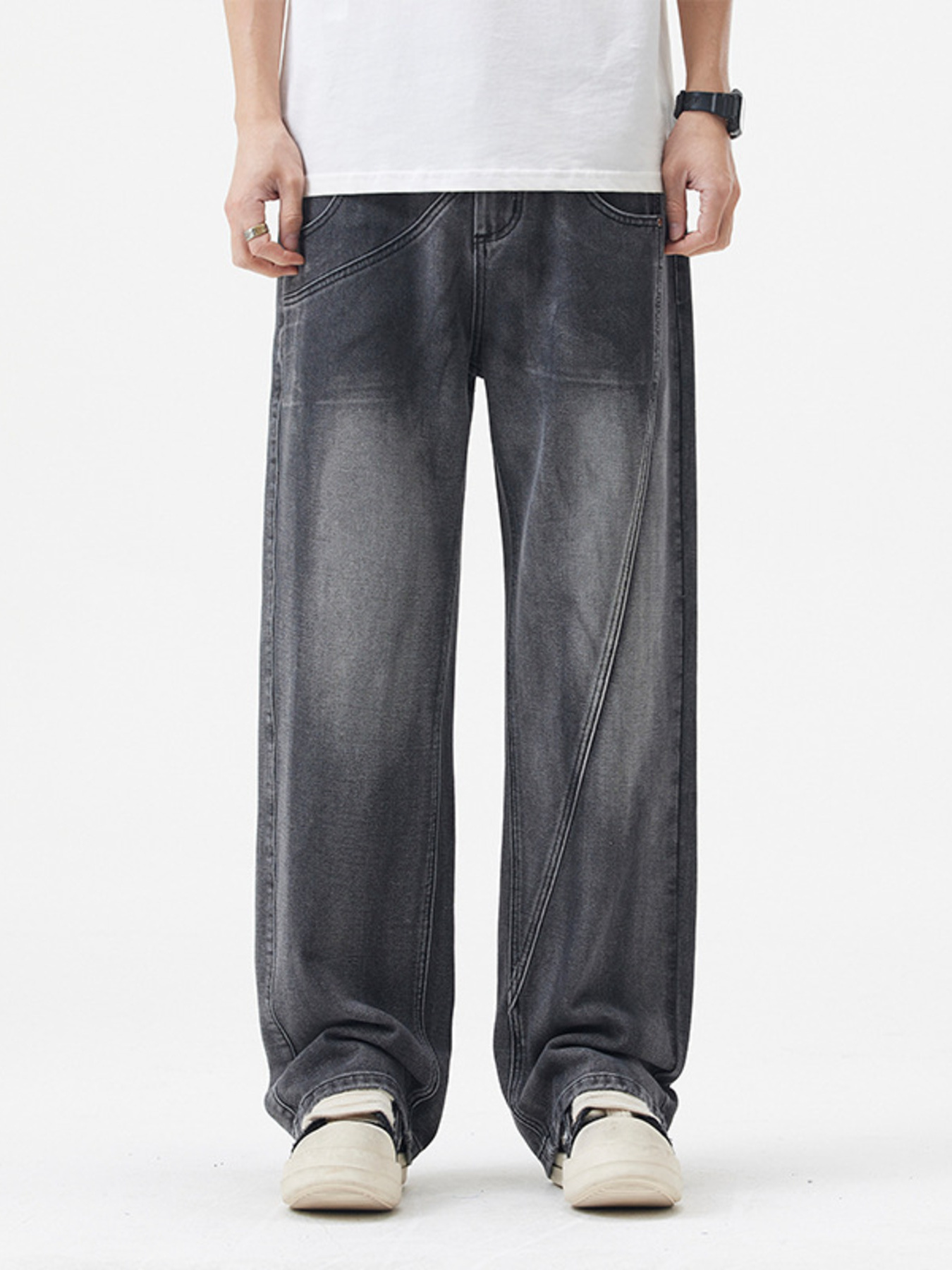 Men's Full Size Washed Straight Leg Jeans Plus Size