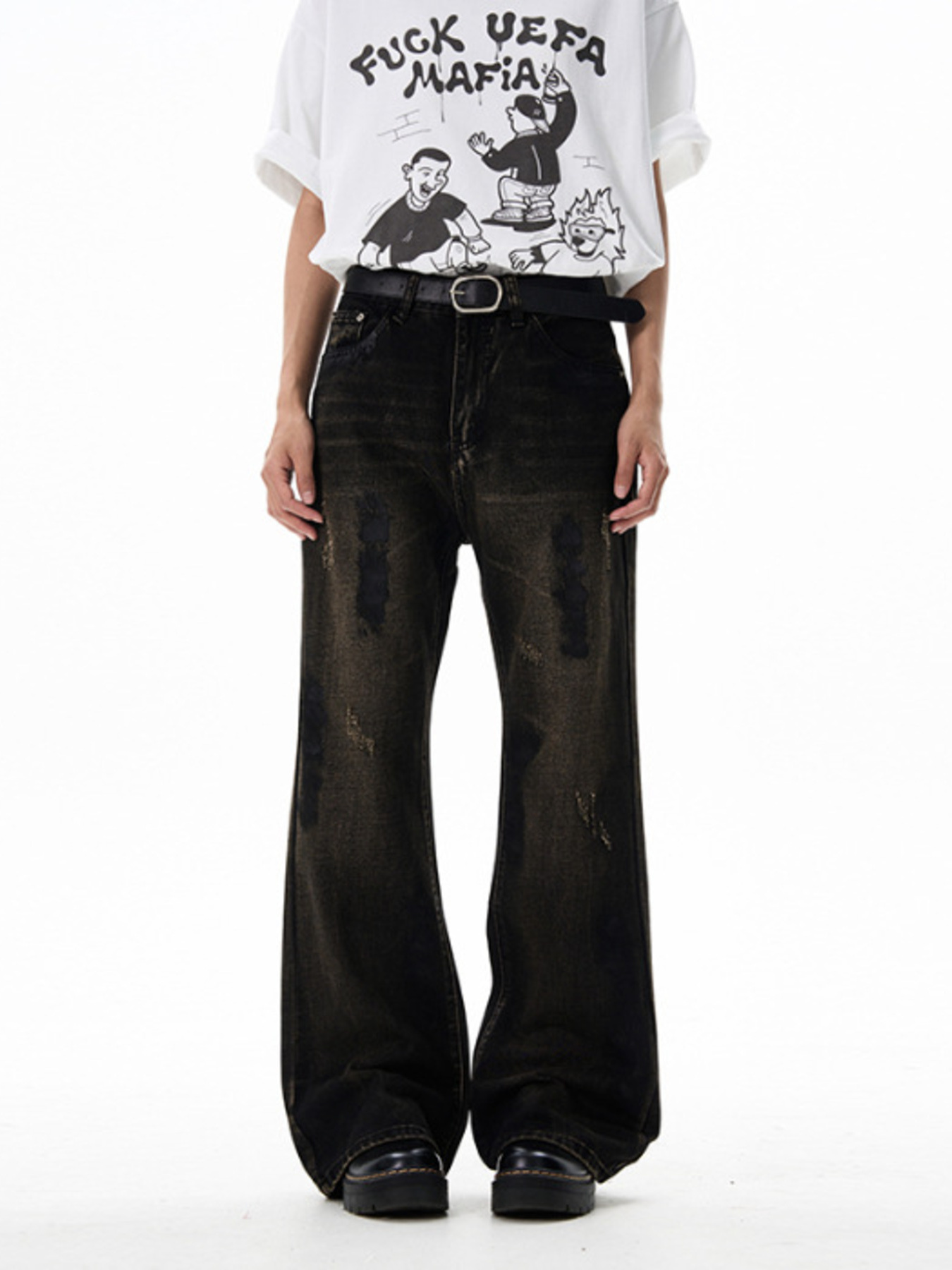 Men's Full Size Distressed Wide Leg Jeans Plus Size