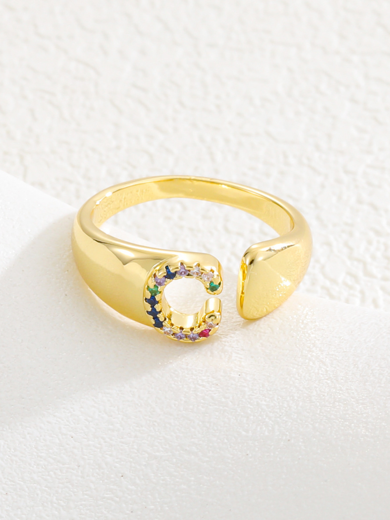 18K Gold-Plated Zircon Letter Ring