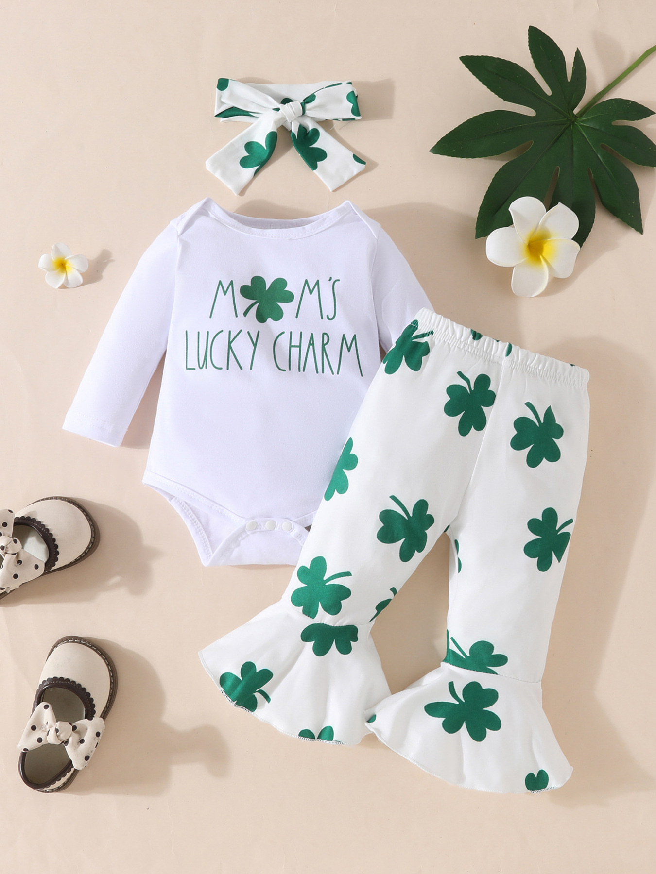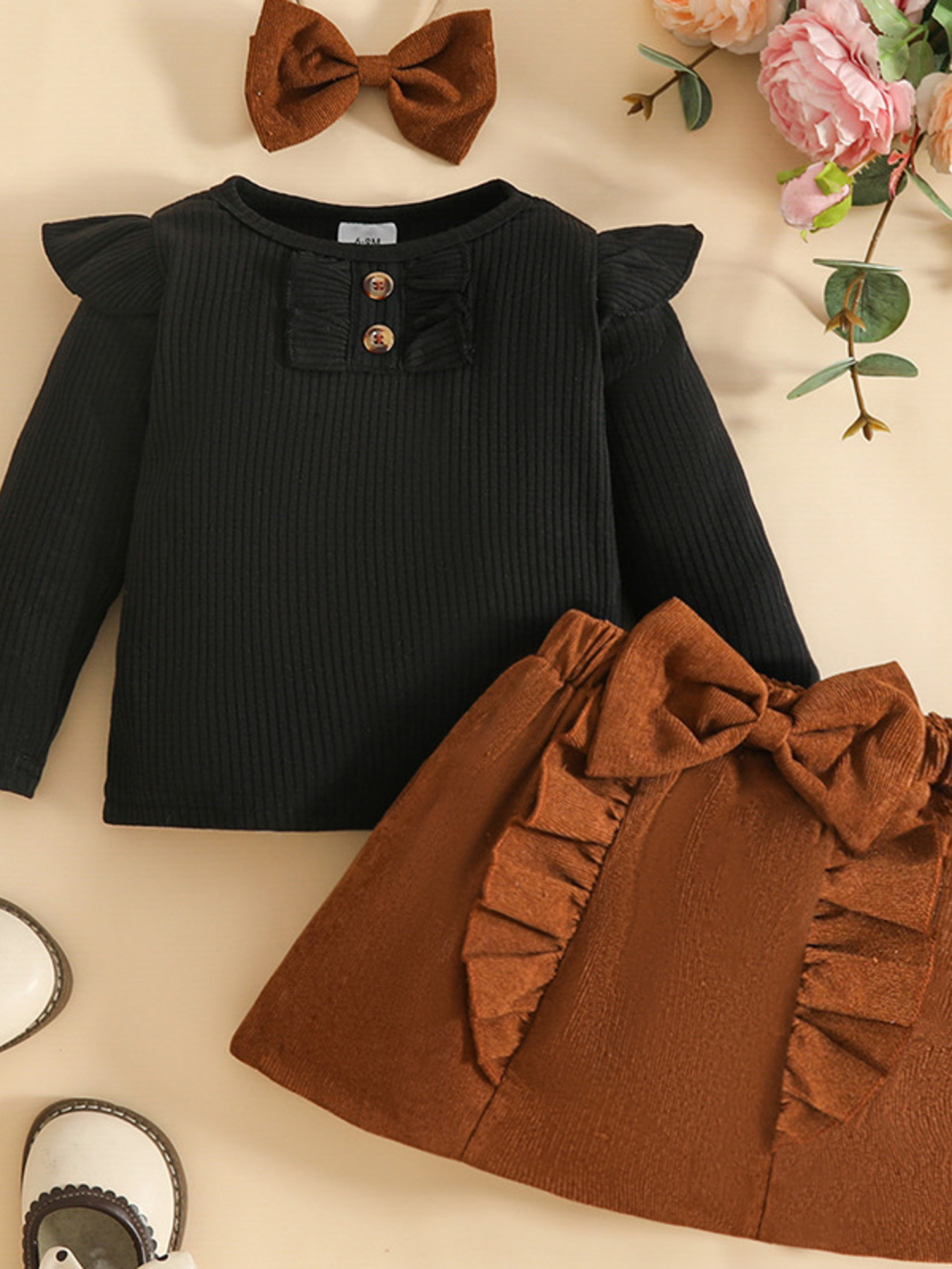Children's Graphic Ruffled Top and Pants Set with Headband