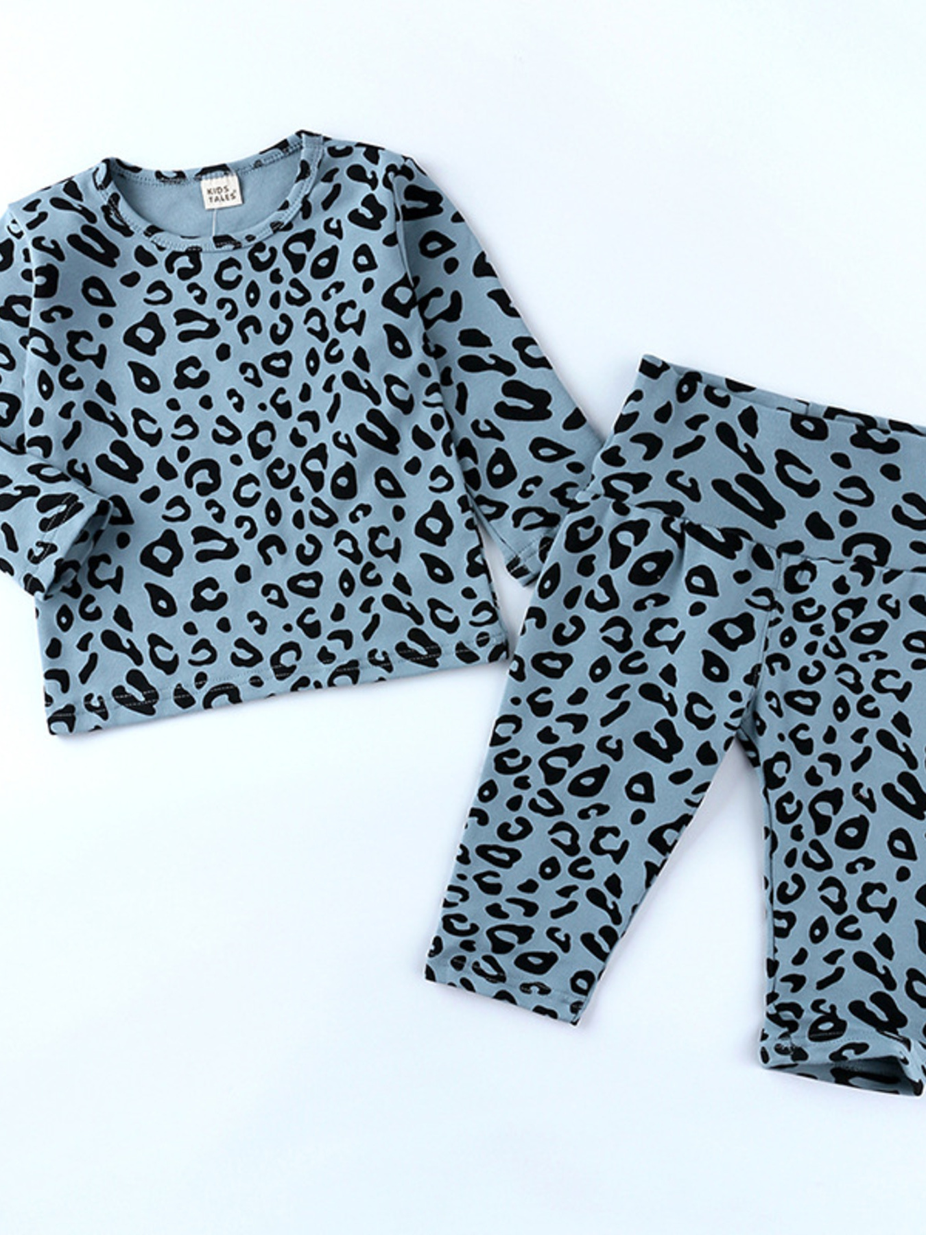 Children's Leopard Print Long Sleeve Top and Pants Set