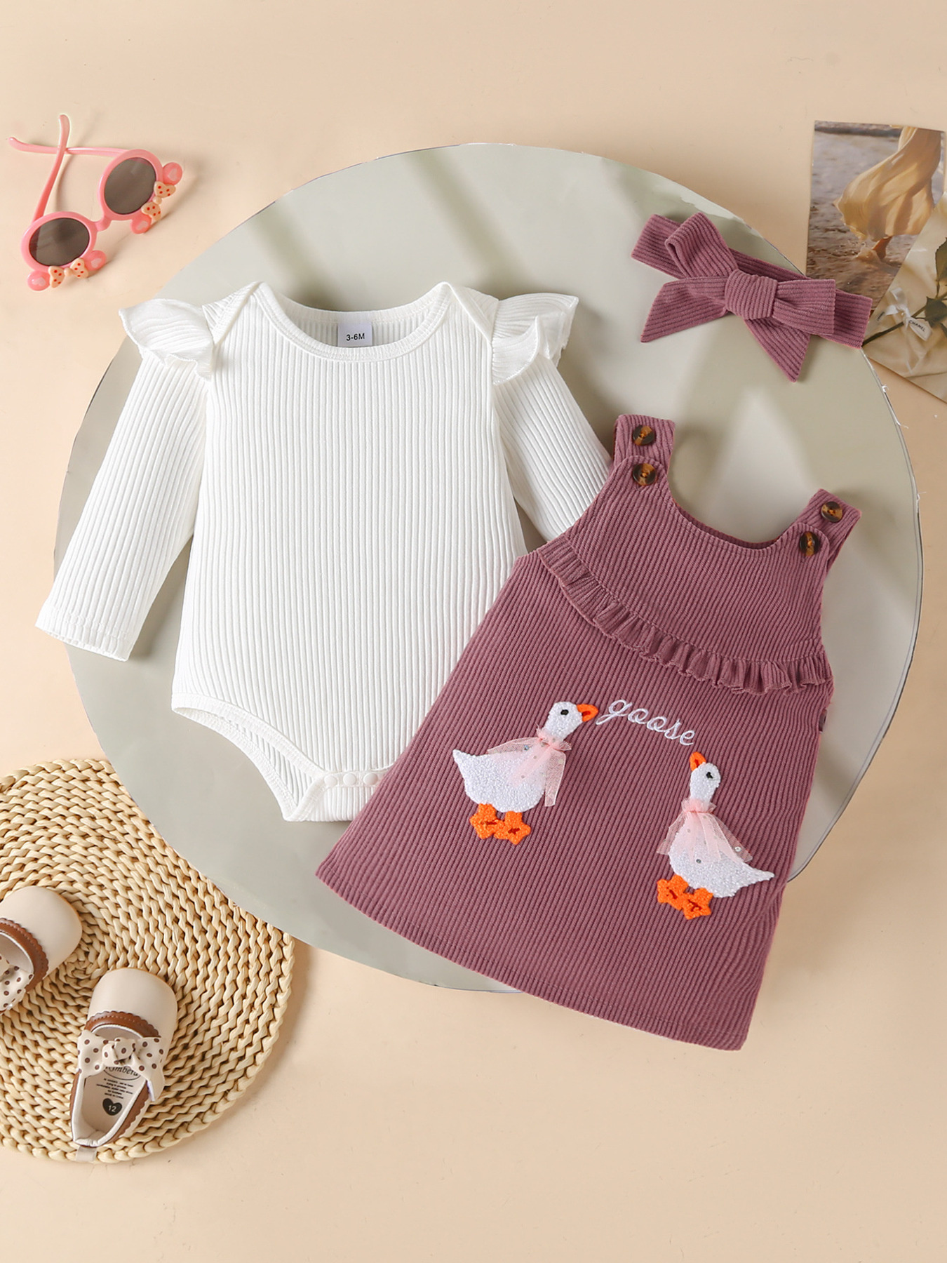 Children's Ruffled Trim Bodysuit and Dress Set with Headband