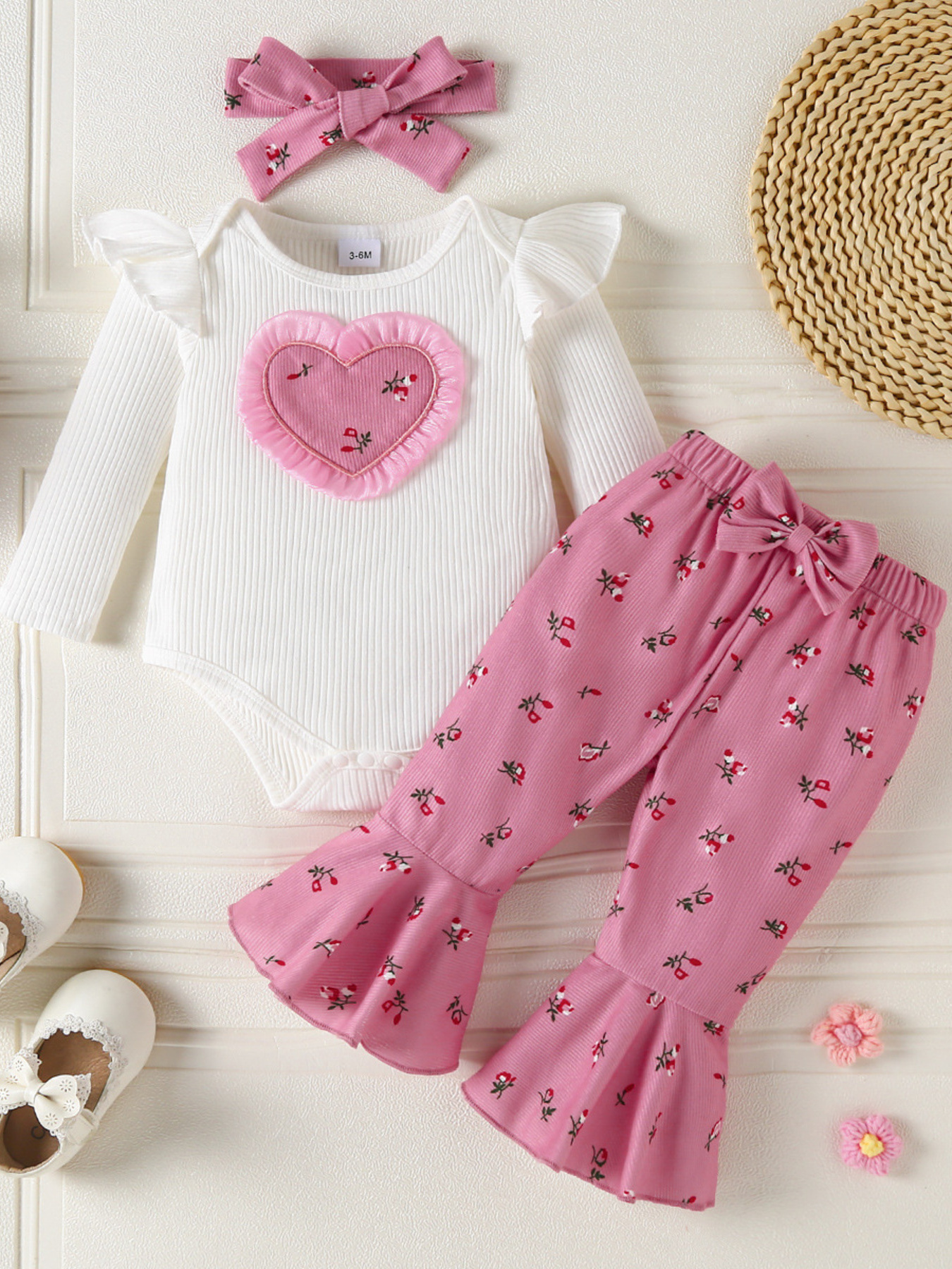 Children's Heart Print Bodysuit & Suspender Pants Set