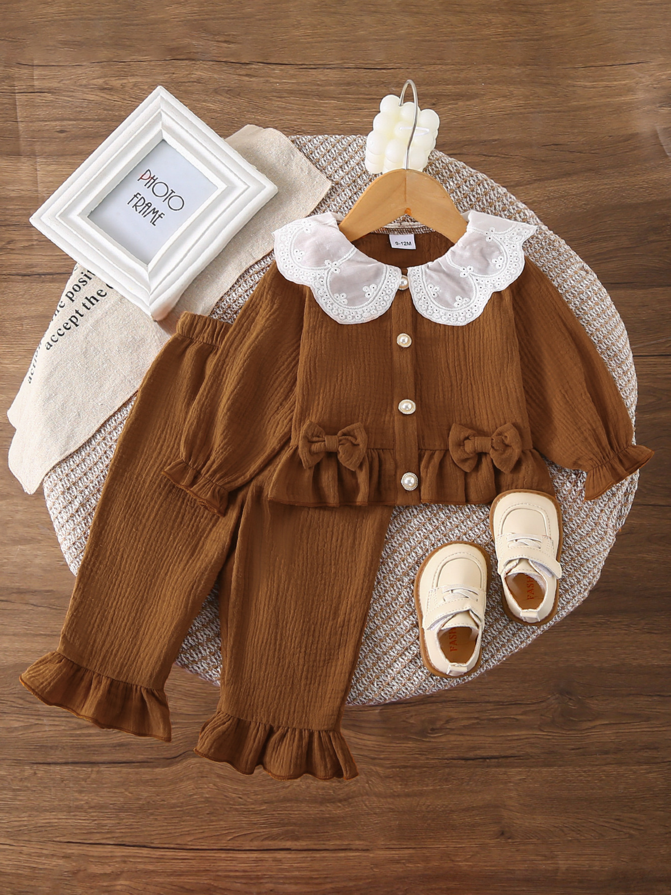 Children's Bowknot Ruffle Sleeve Top and Pants Set