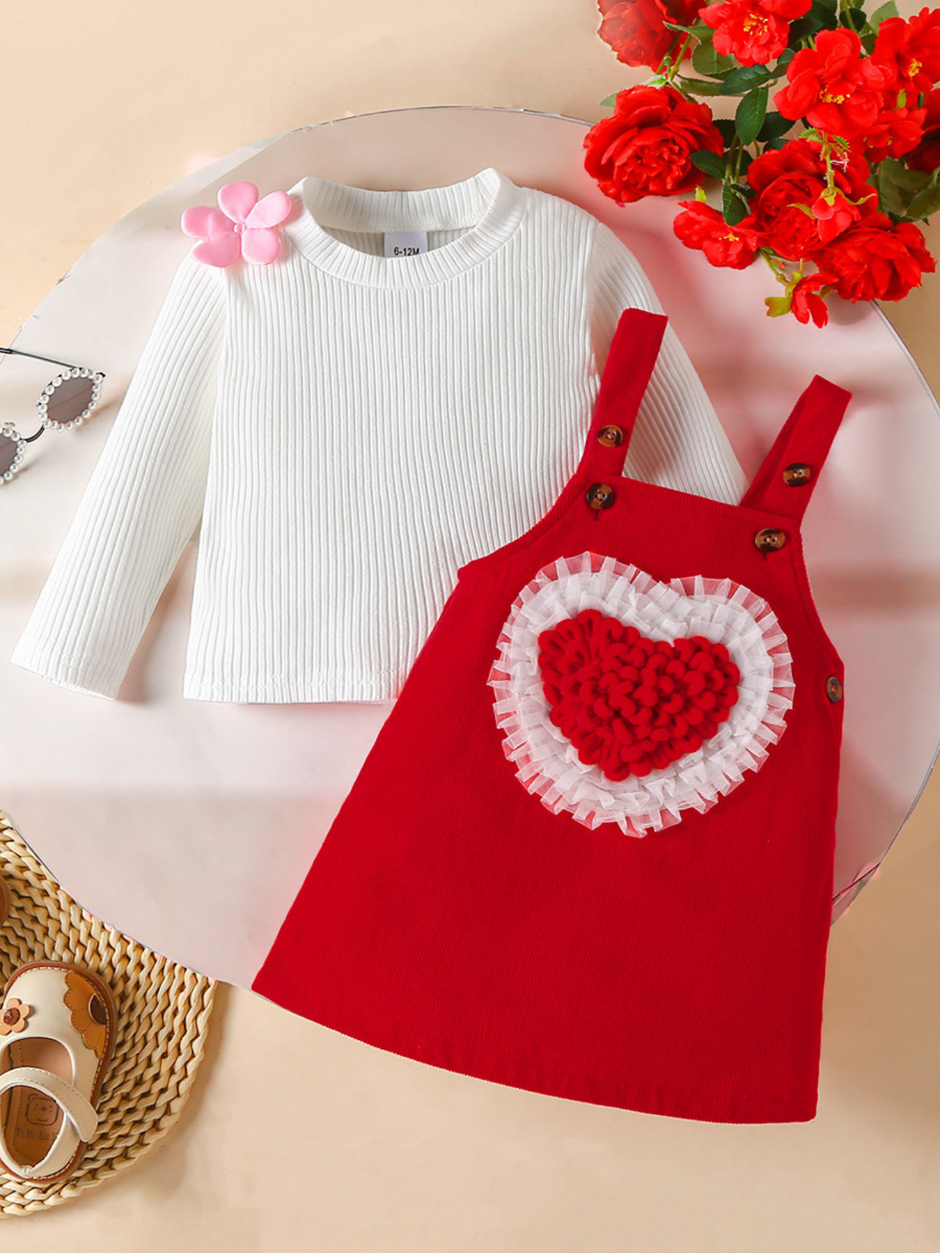 Children's Heart Decor Corduroy Overall Dress & Ribbed Top Set