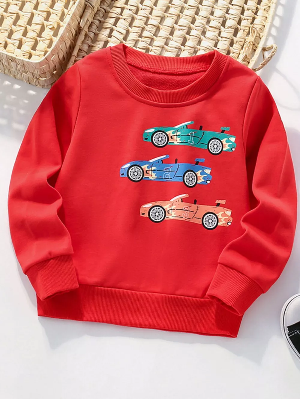 Children's Colorful Car Crew Neck Sweatshirt
