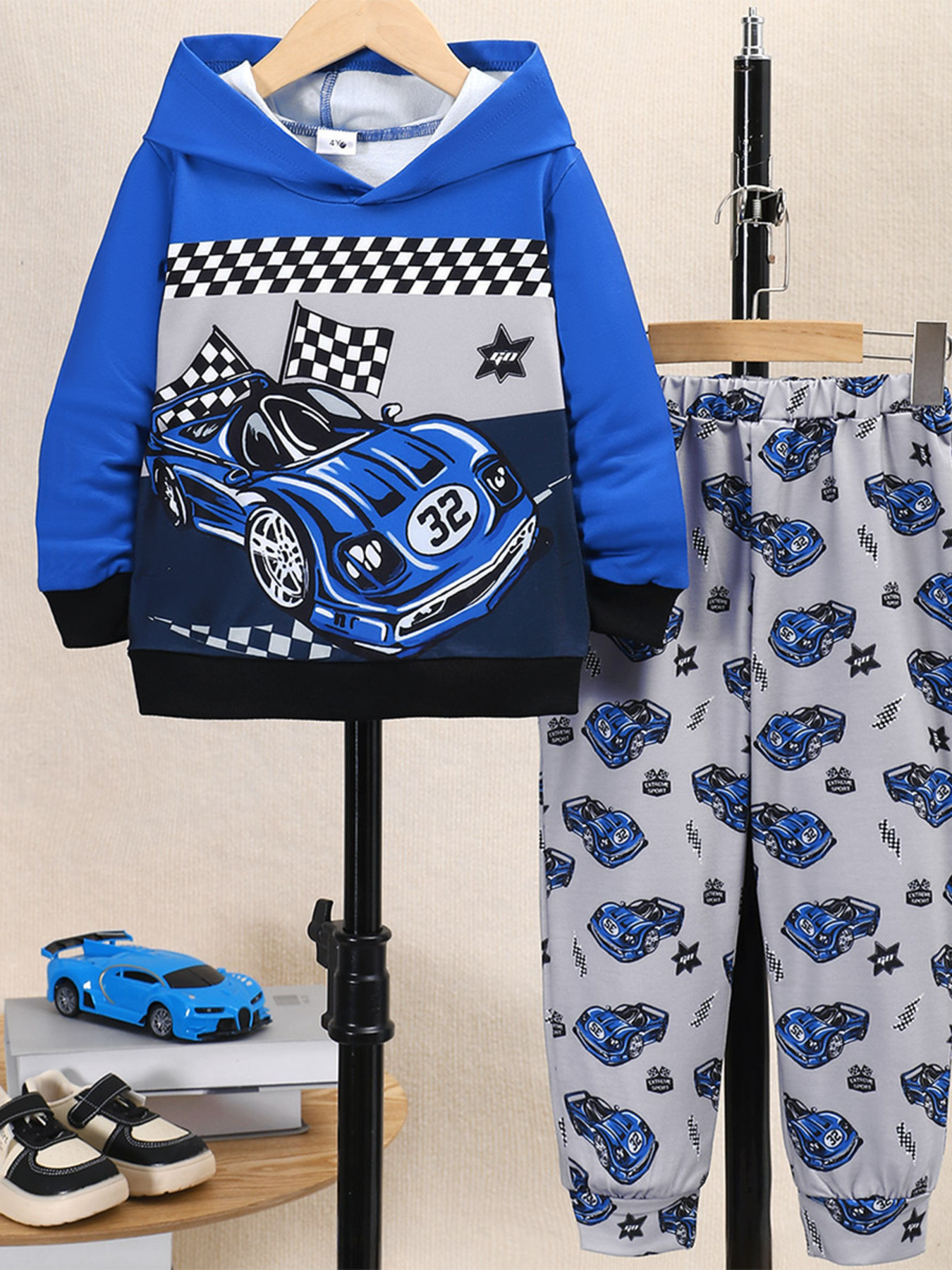 Children's Racing Car Print Long Sleeve Sweatshirt and Pants Set