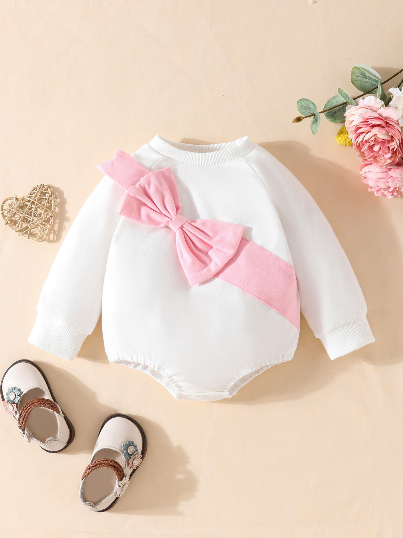 Children's Bow Decor Long Sleeve Baby One-Piece Bodysuit