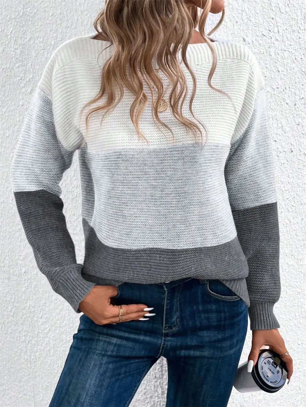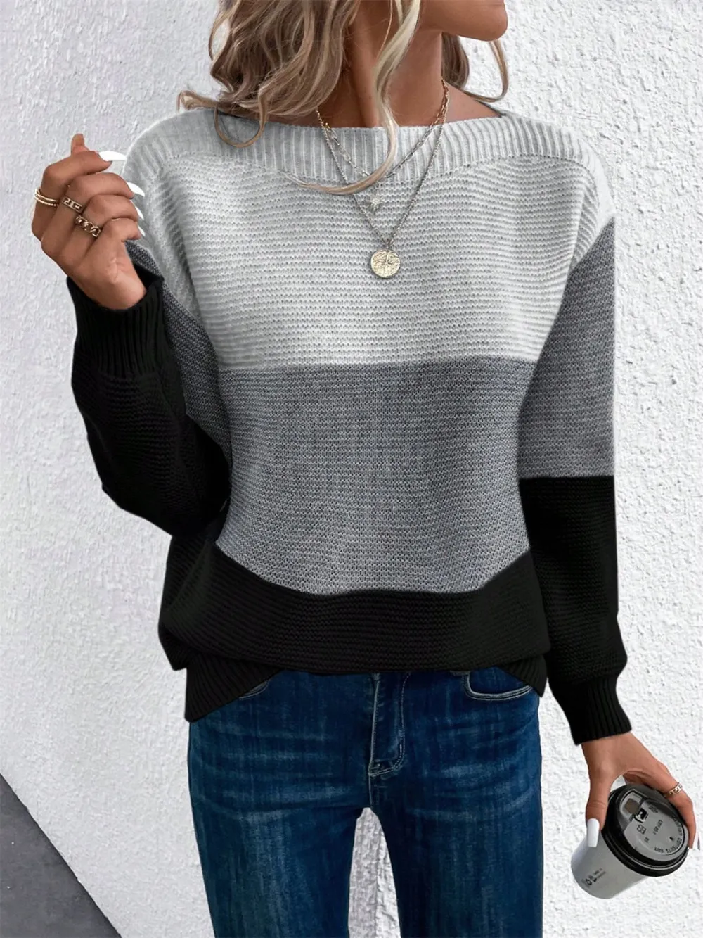 Contrast Striped Boat Neck Dropped Shoulder Sweater