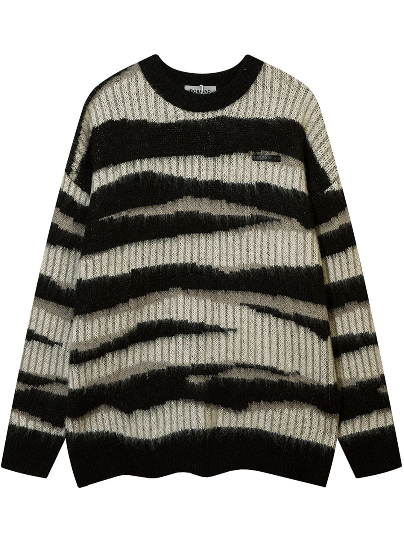 Men's Oversized Contrast Striped Round Neck Sweater