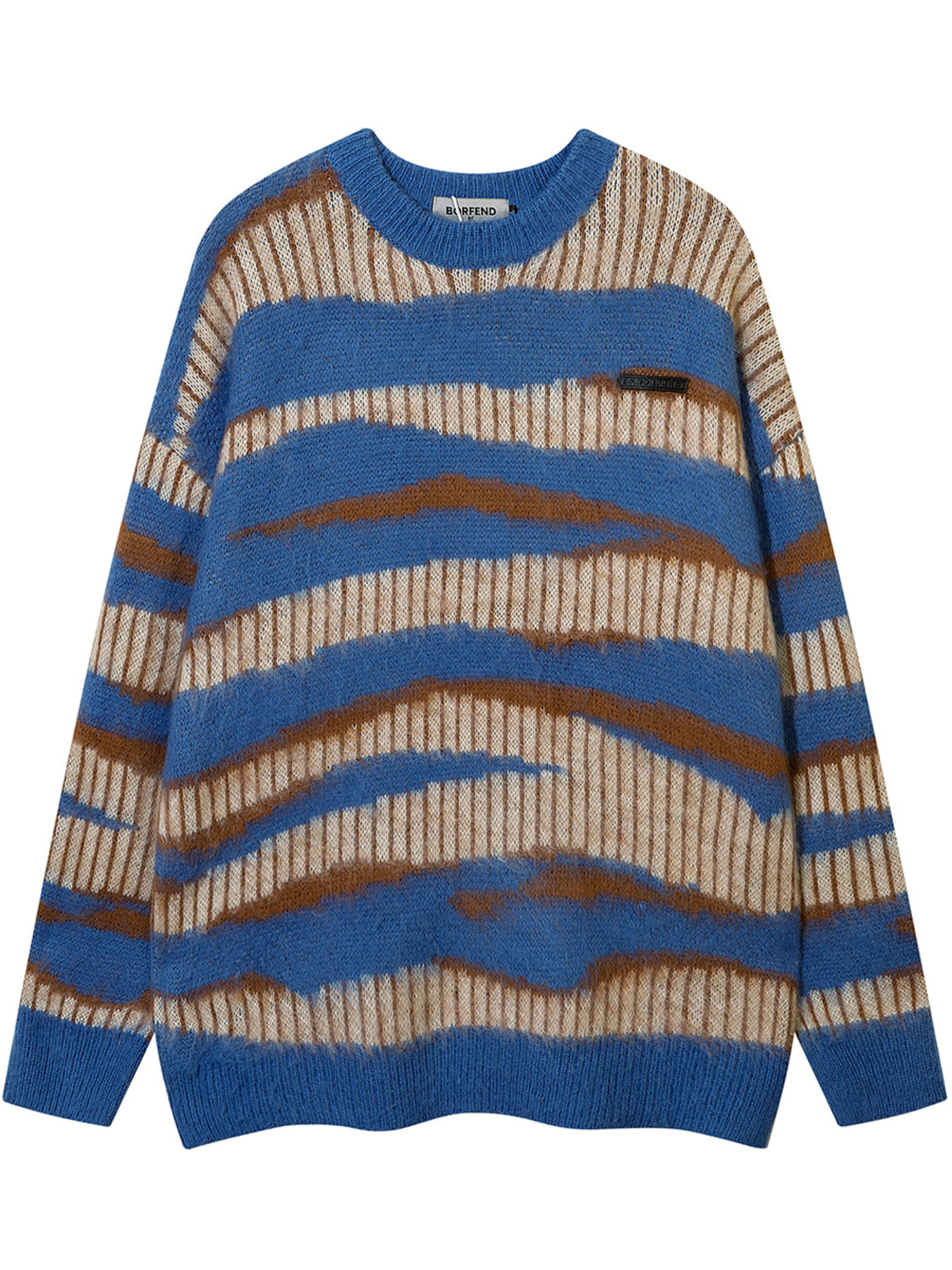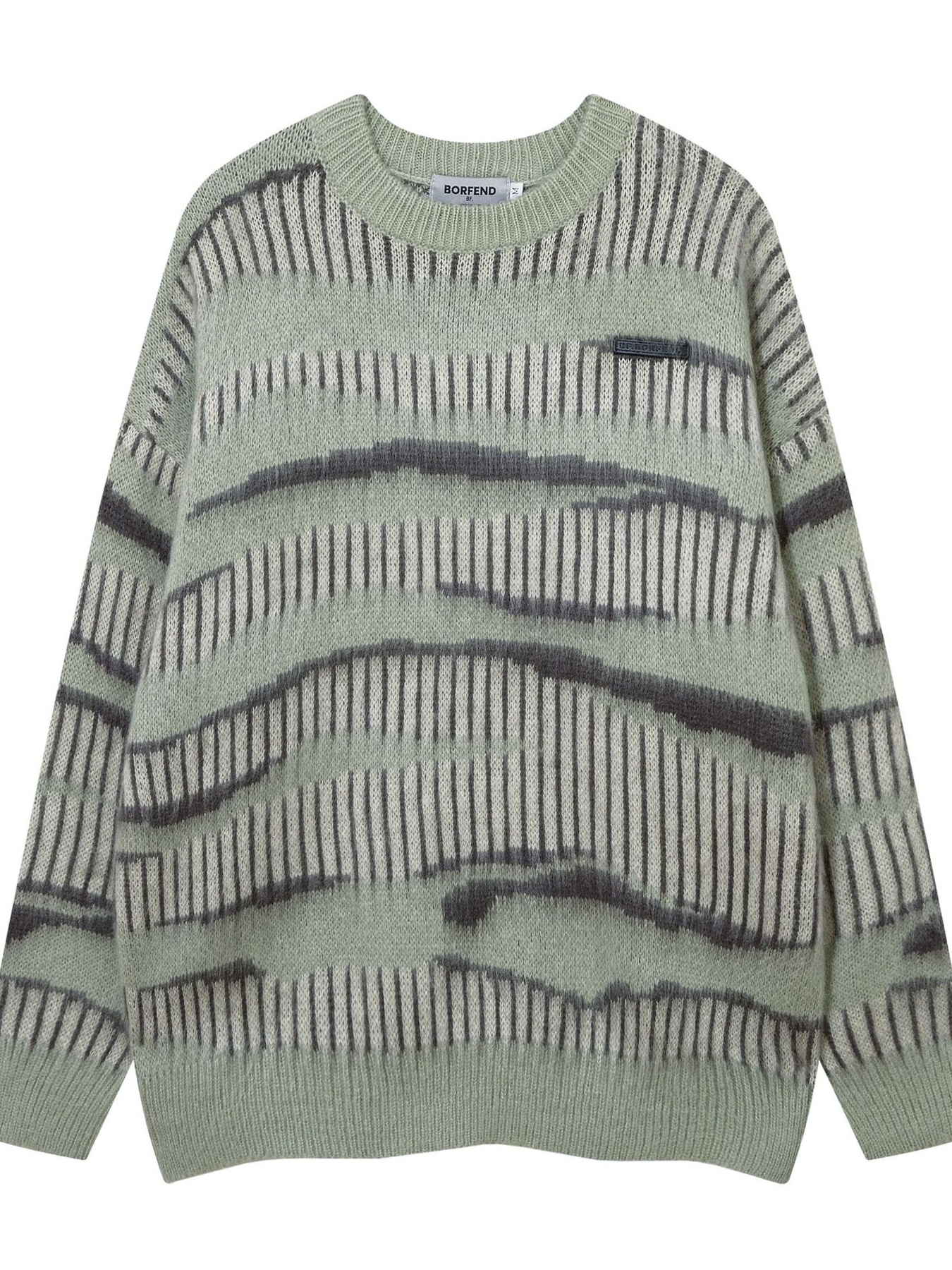 Men's Wave Striped Pattern Oversized Knit Sweater