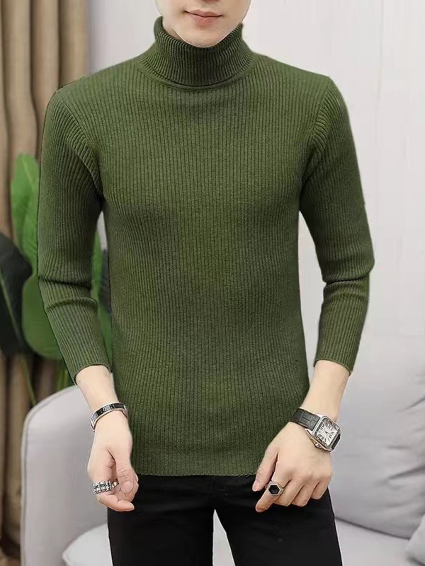 Men's Plus Size Ribbed Turtleneck Long Sleeve Sweater