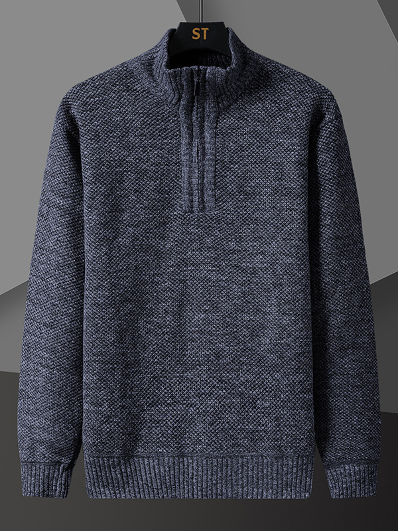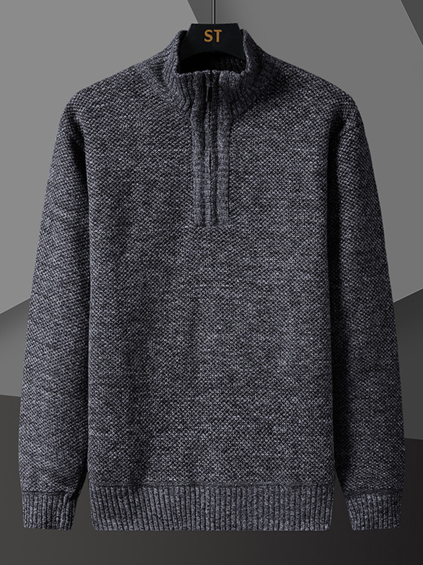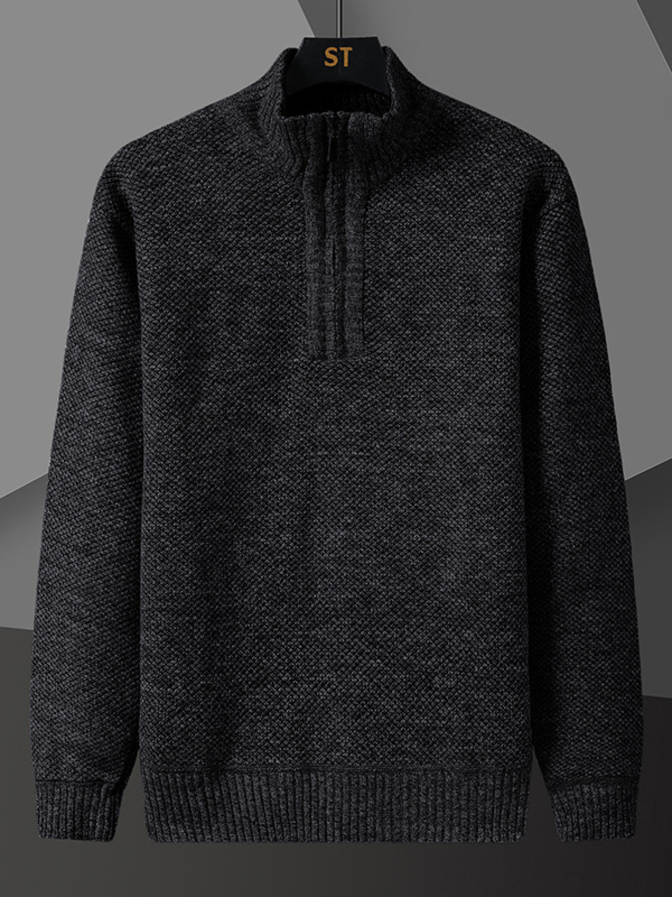 Men's Plus Size Quarter Zip Long Sleeve Sweater