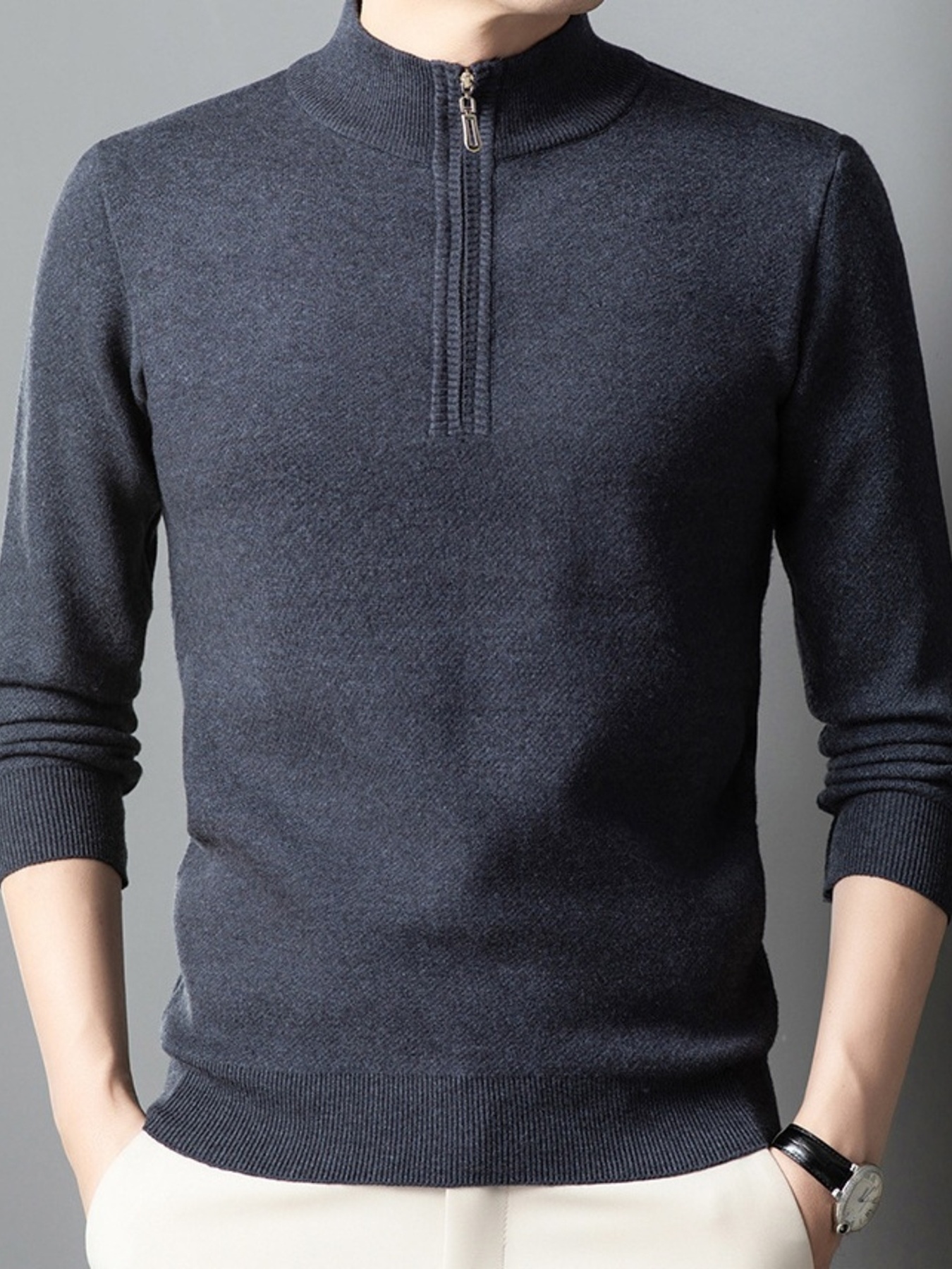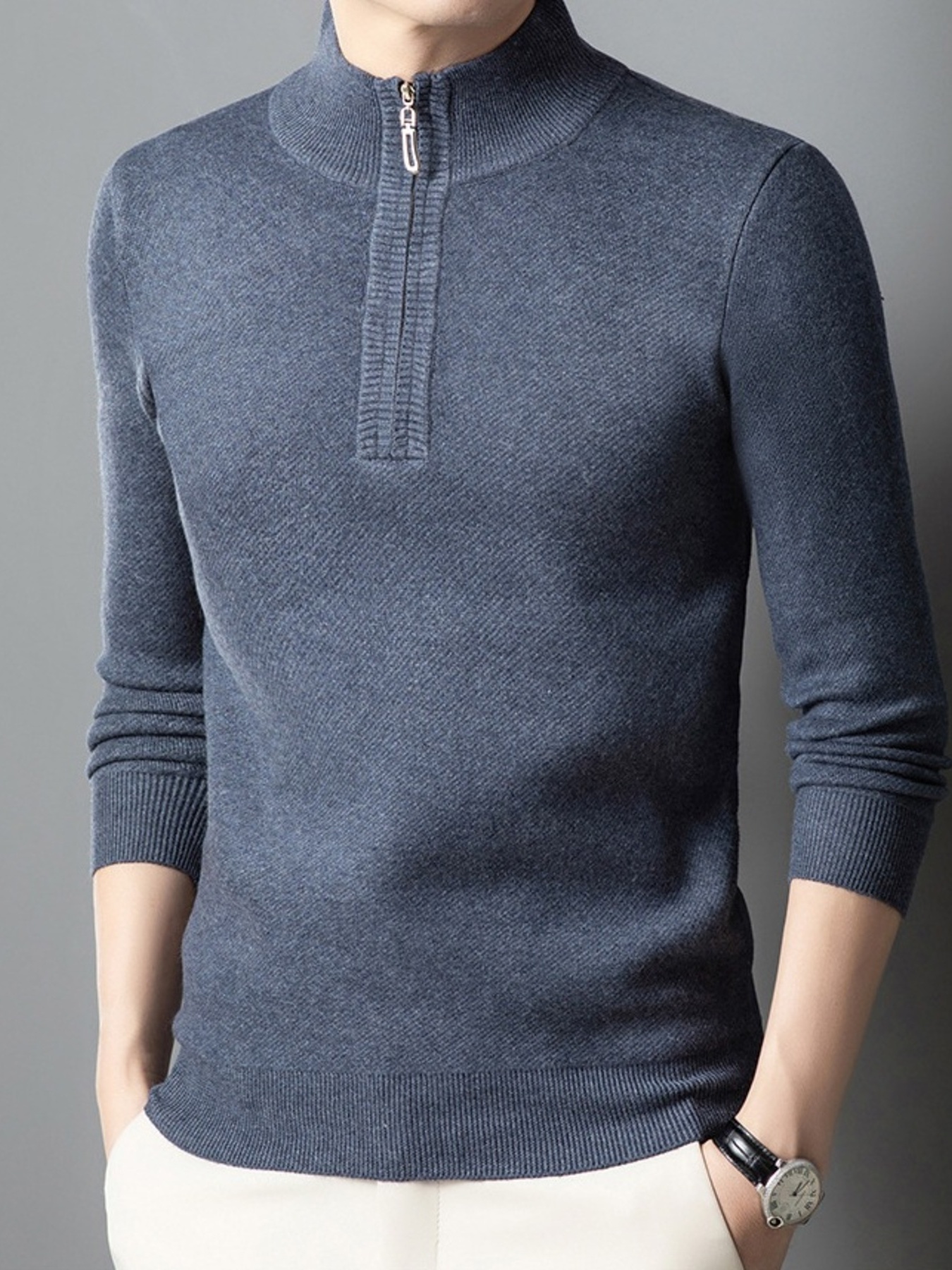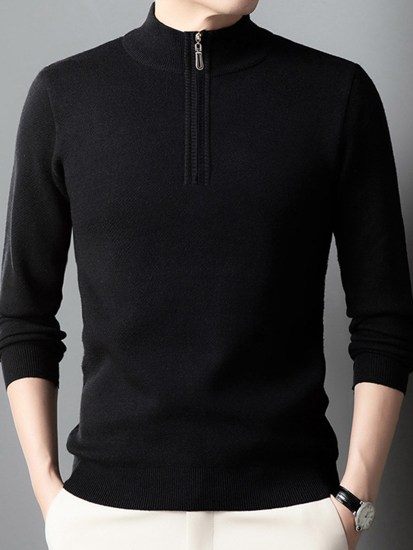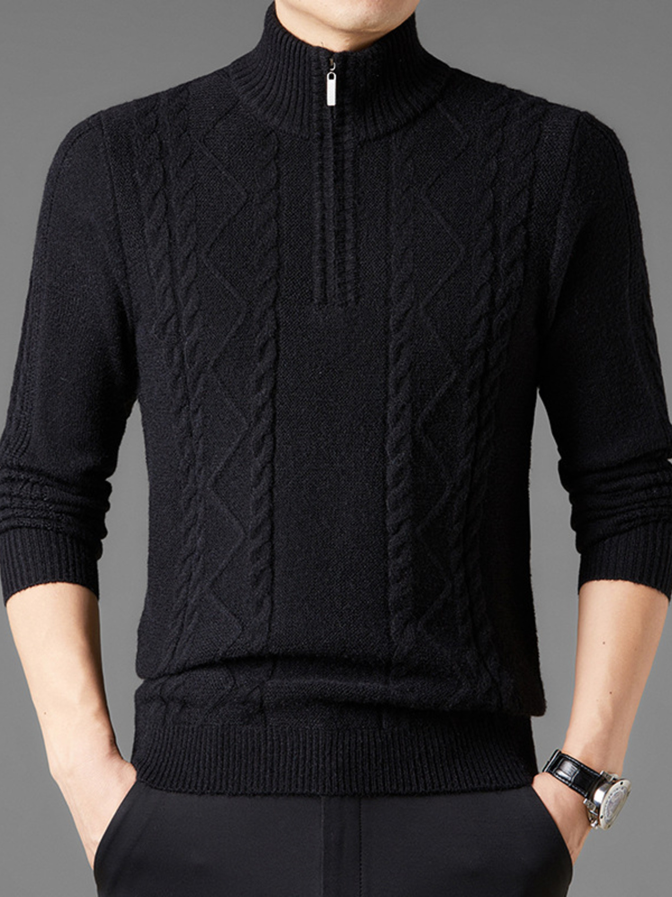 Men's Plus Size Quarter Zip Long Sleeve Sweater