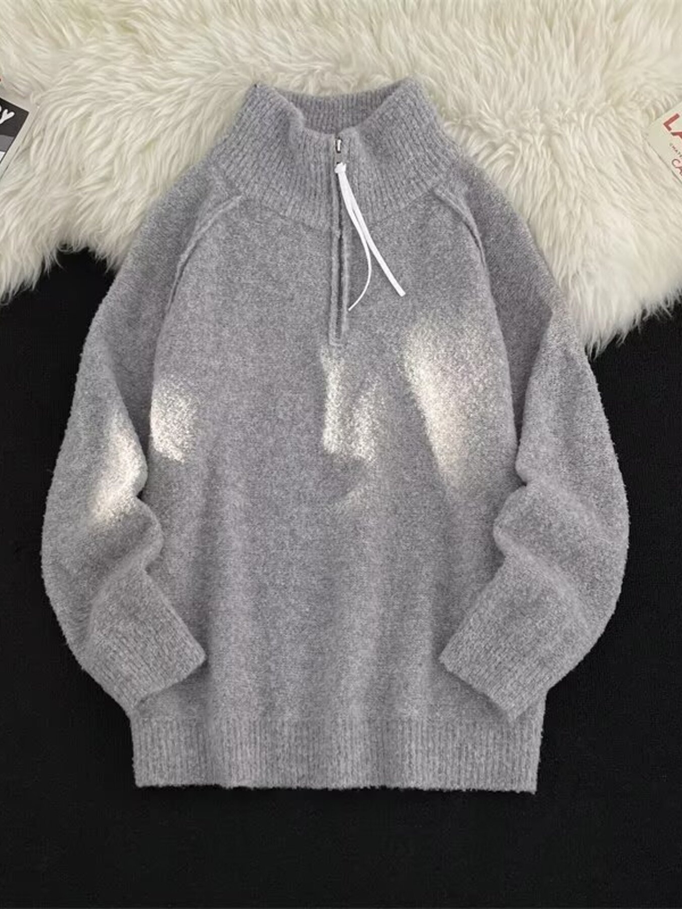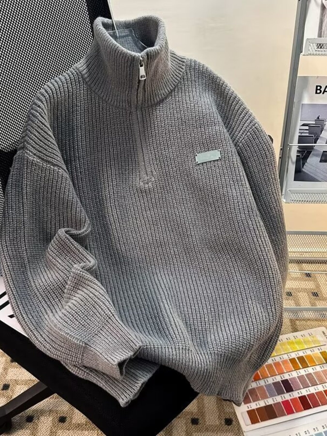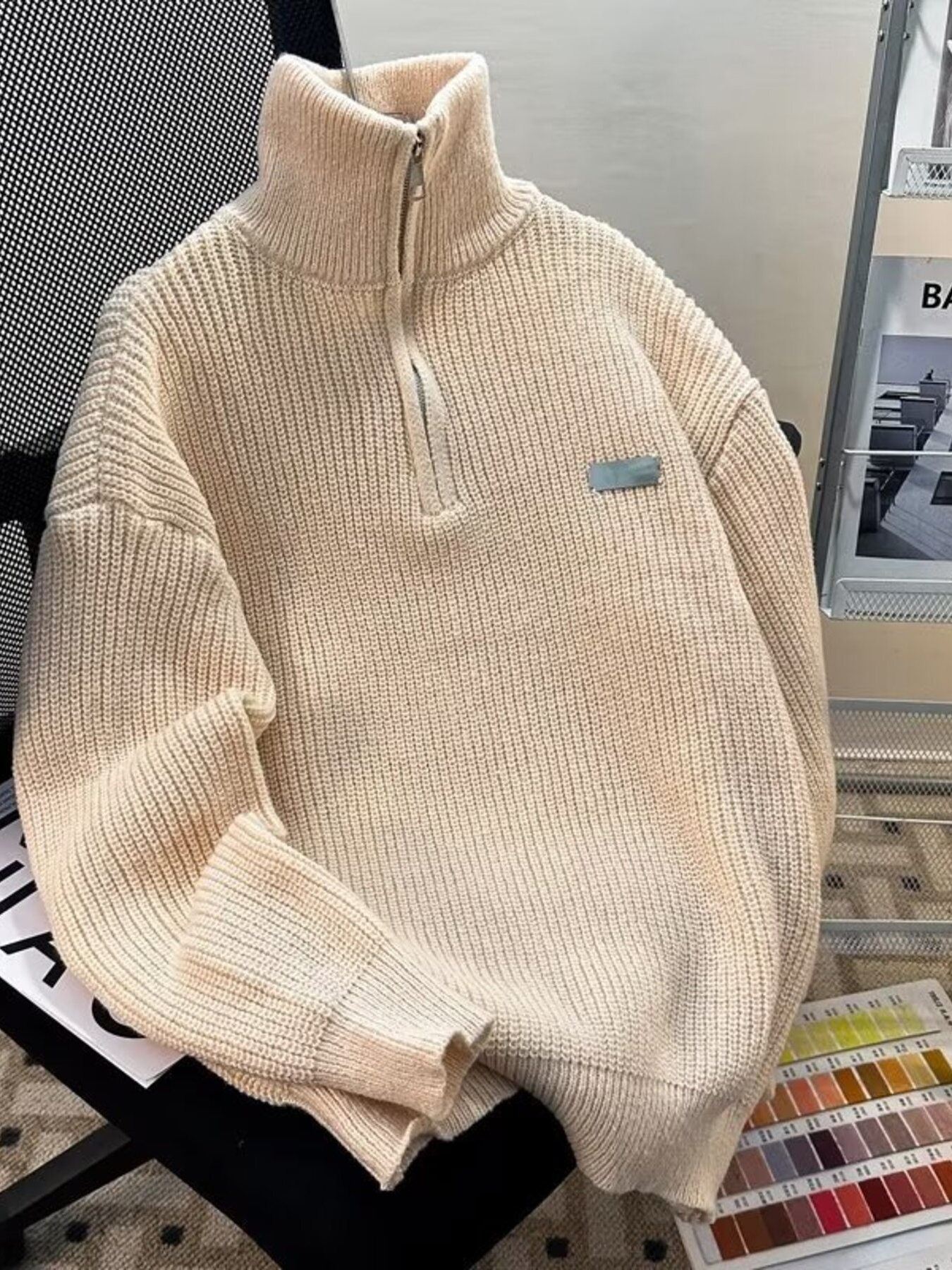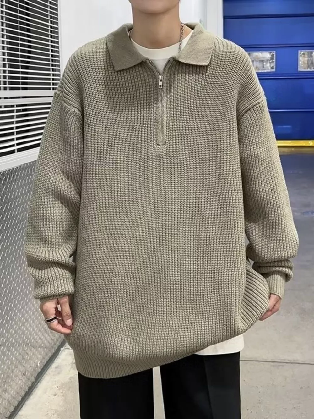 Men's Plus Size Quarter-Zip Collar Drop Shoulder Sweater