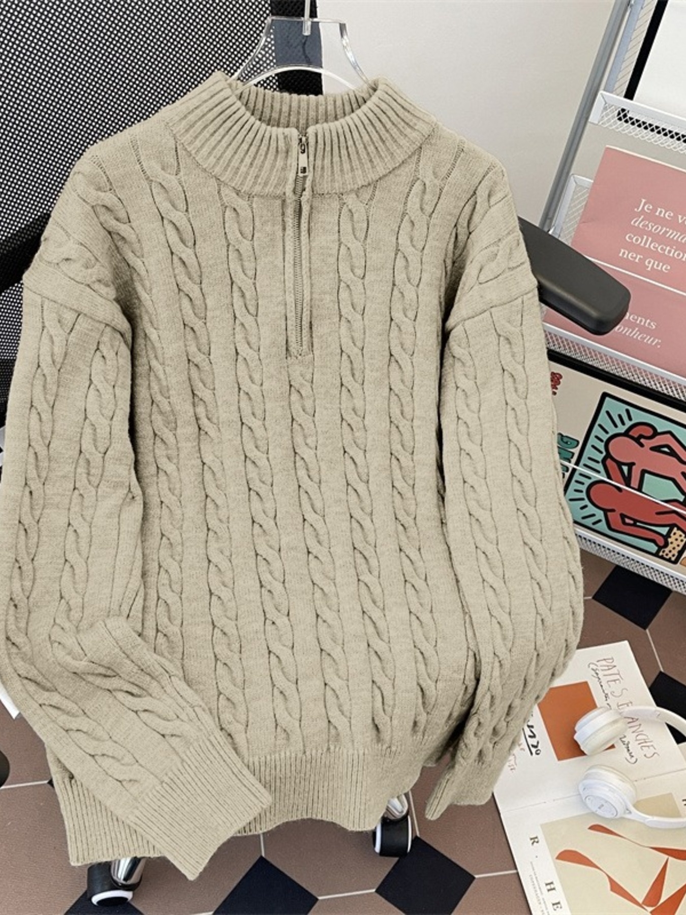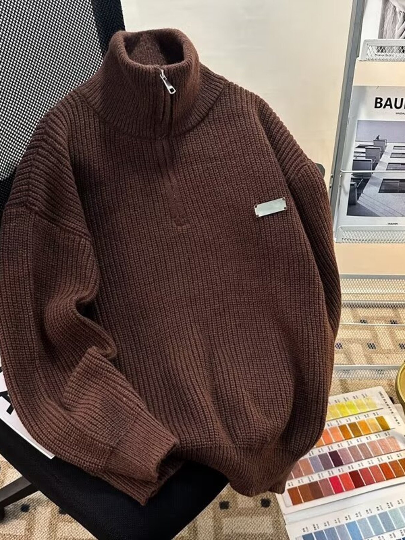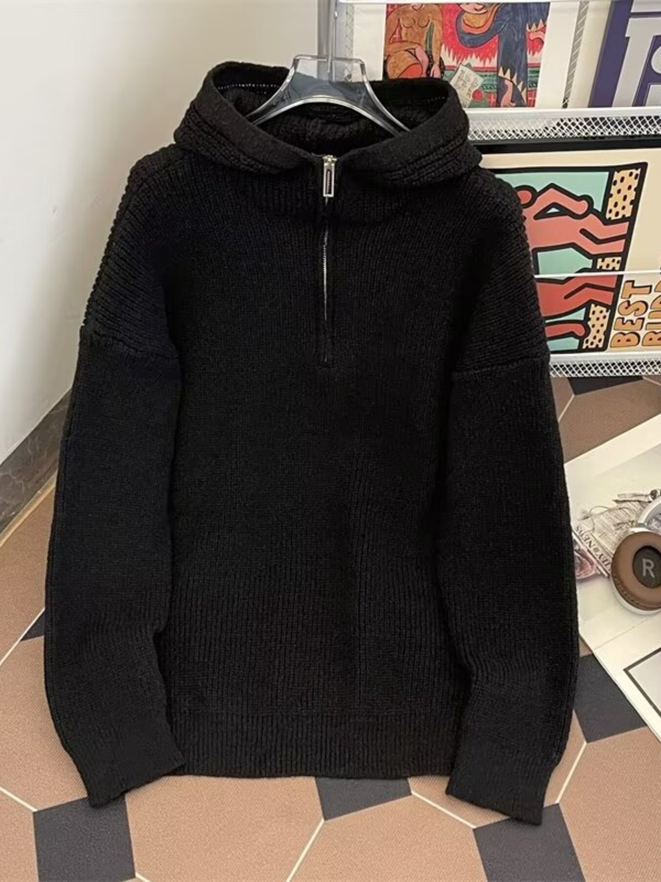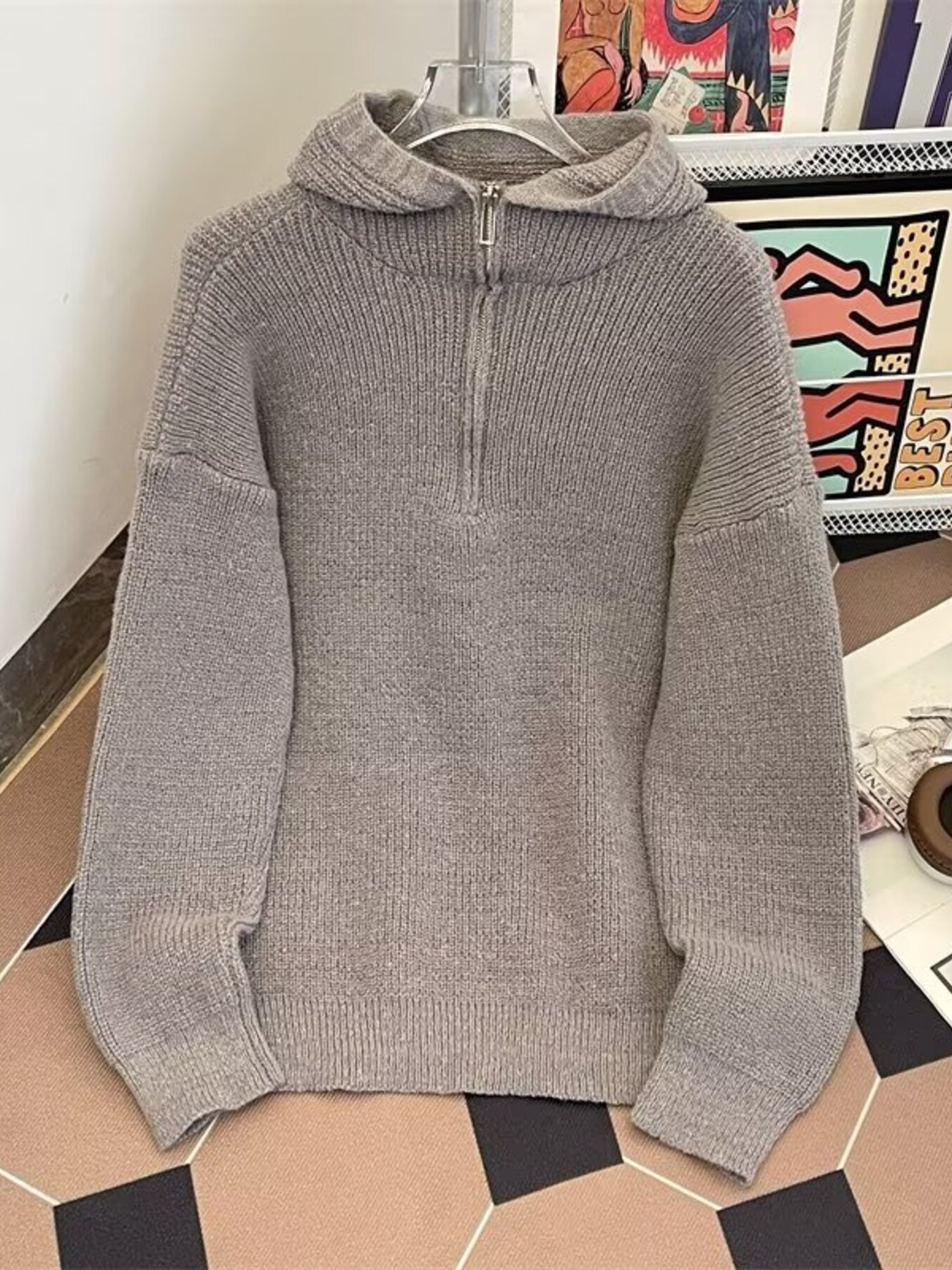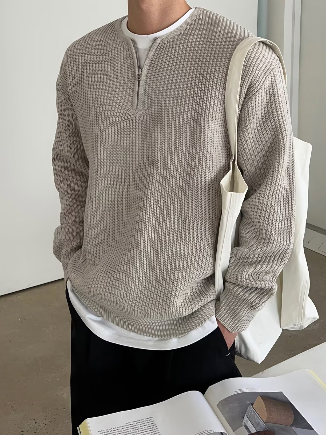 Men's Plus Size Quarter-Zip Collar Drop Shoulder Sweater