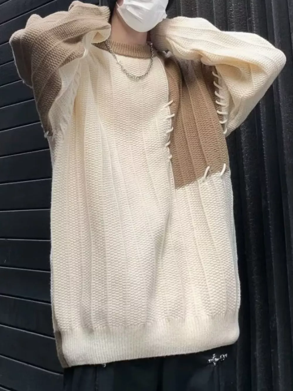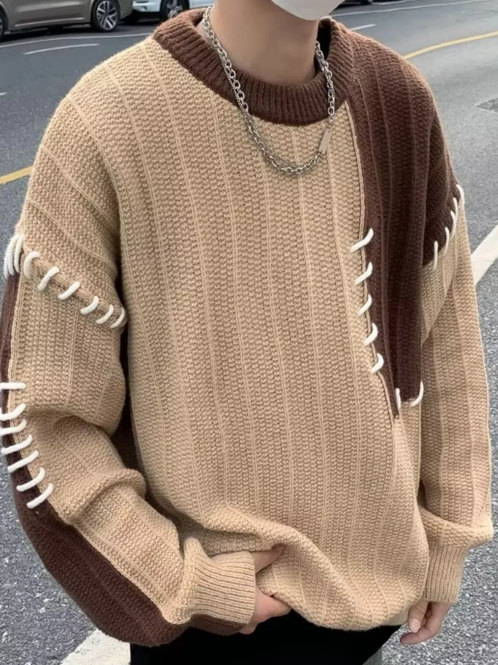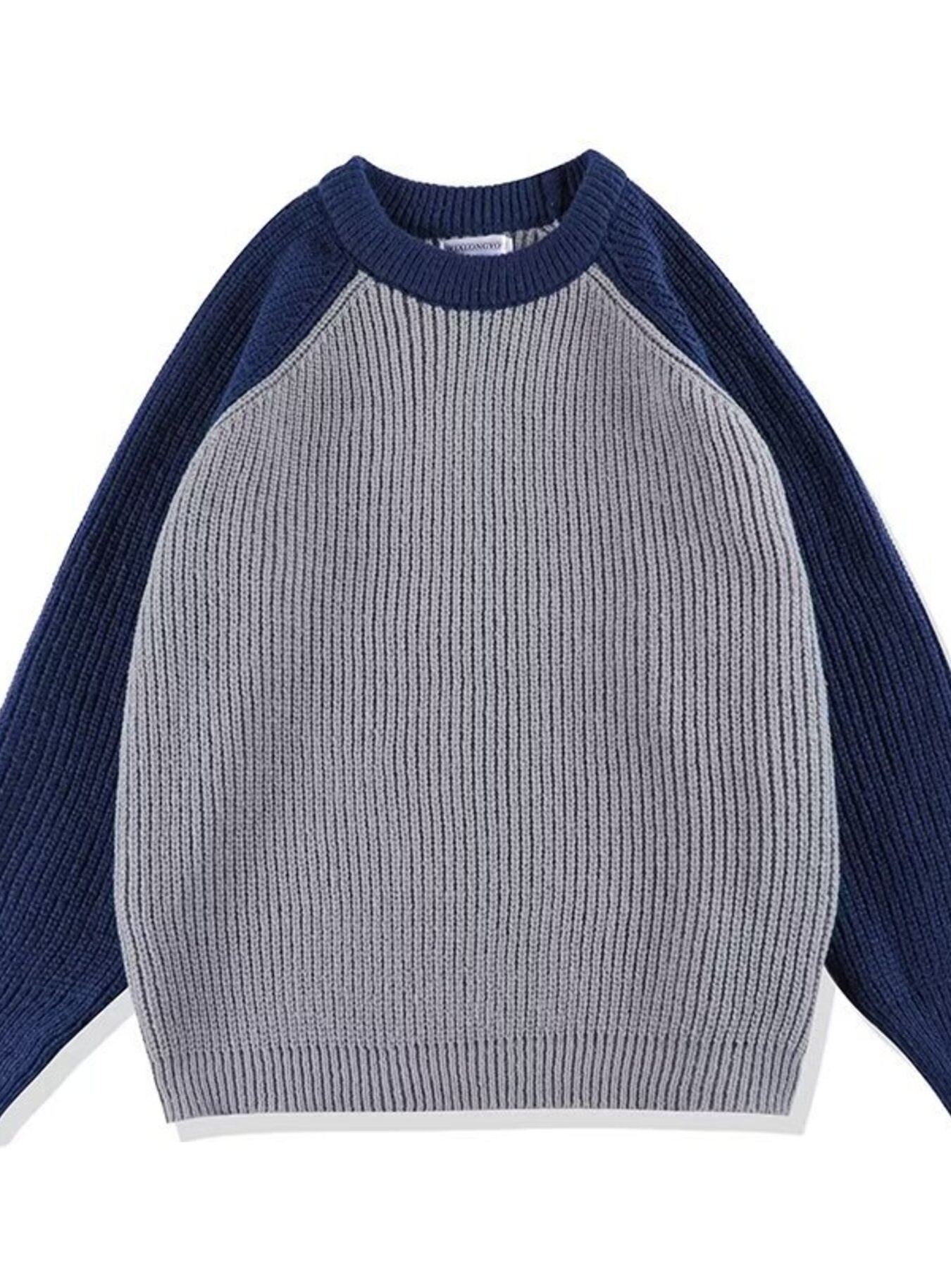 Men's Gradient Color Block Fuzzy Knit Pullover