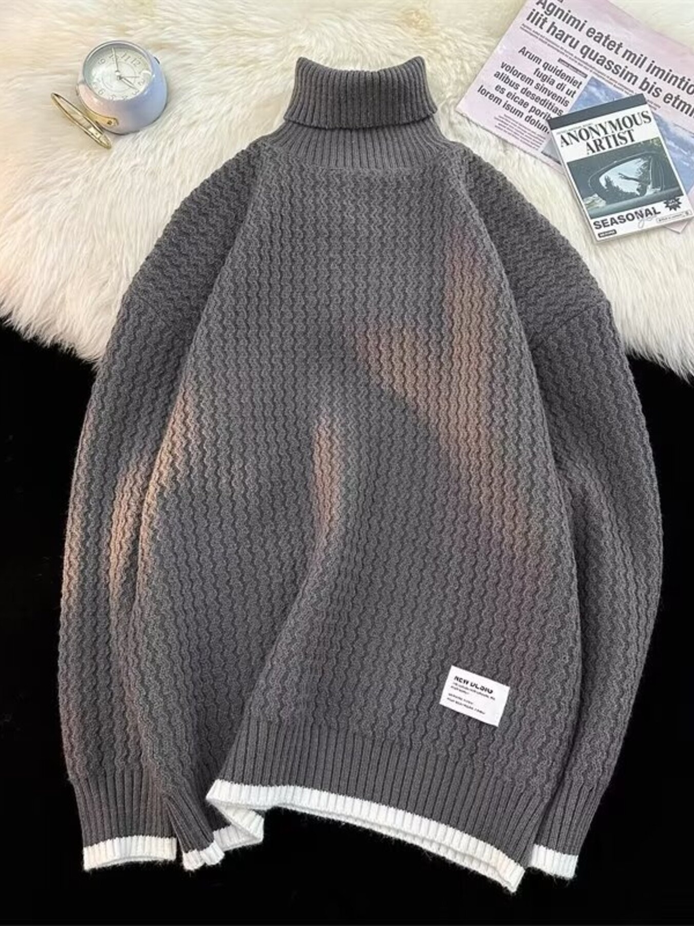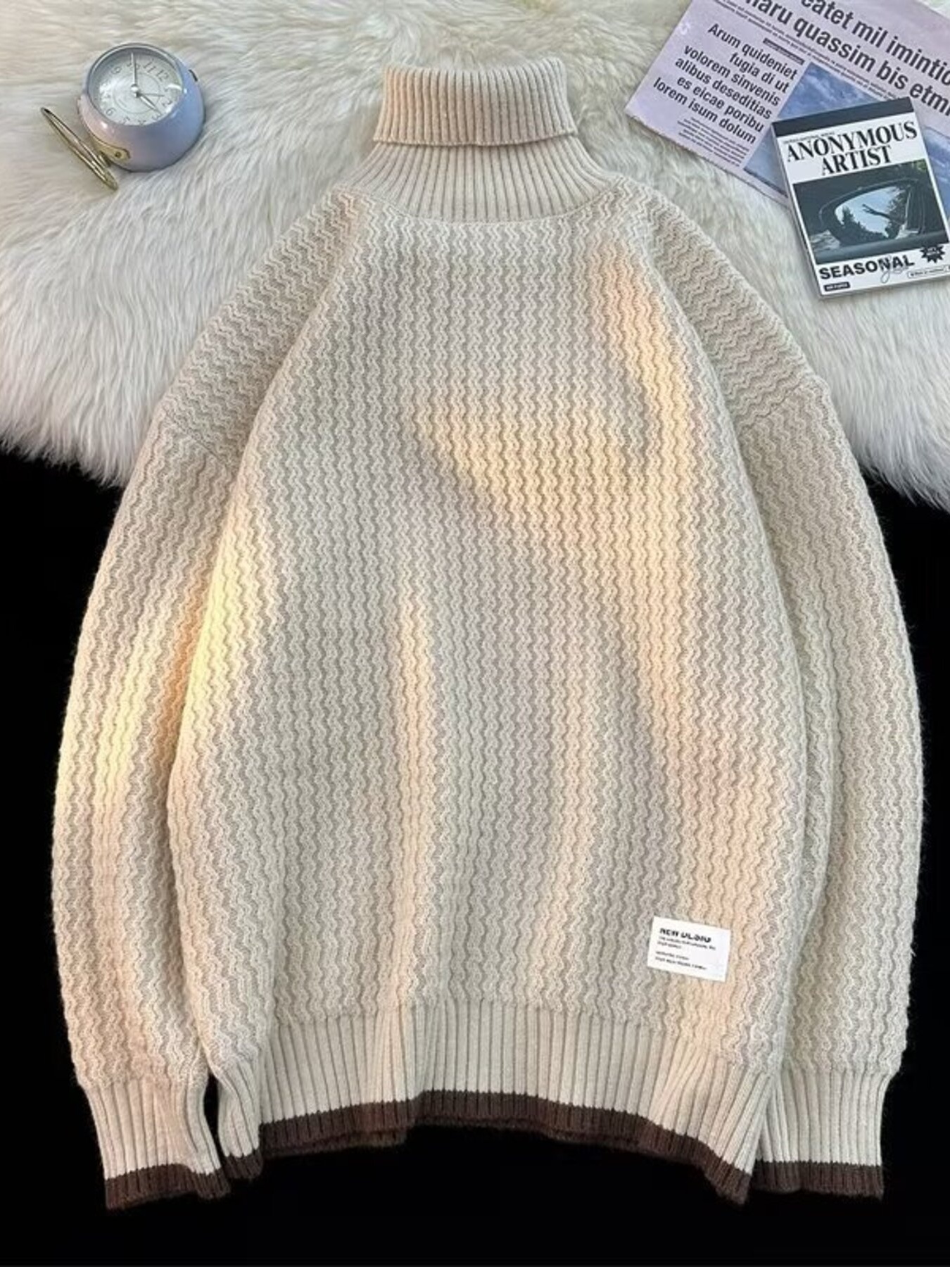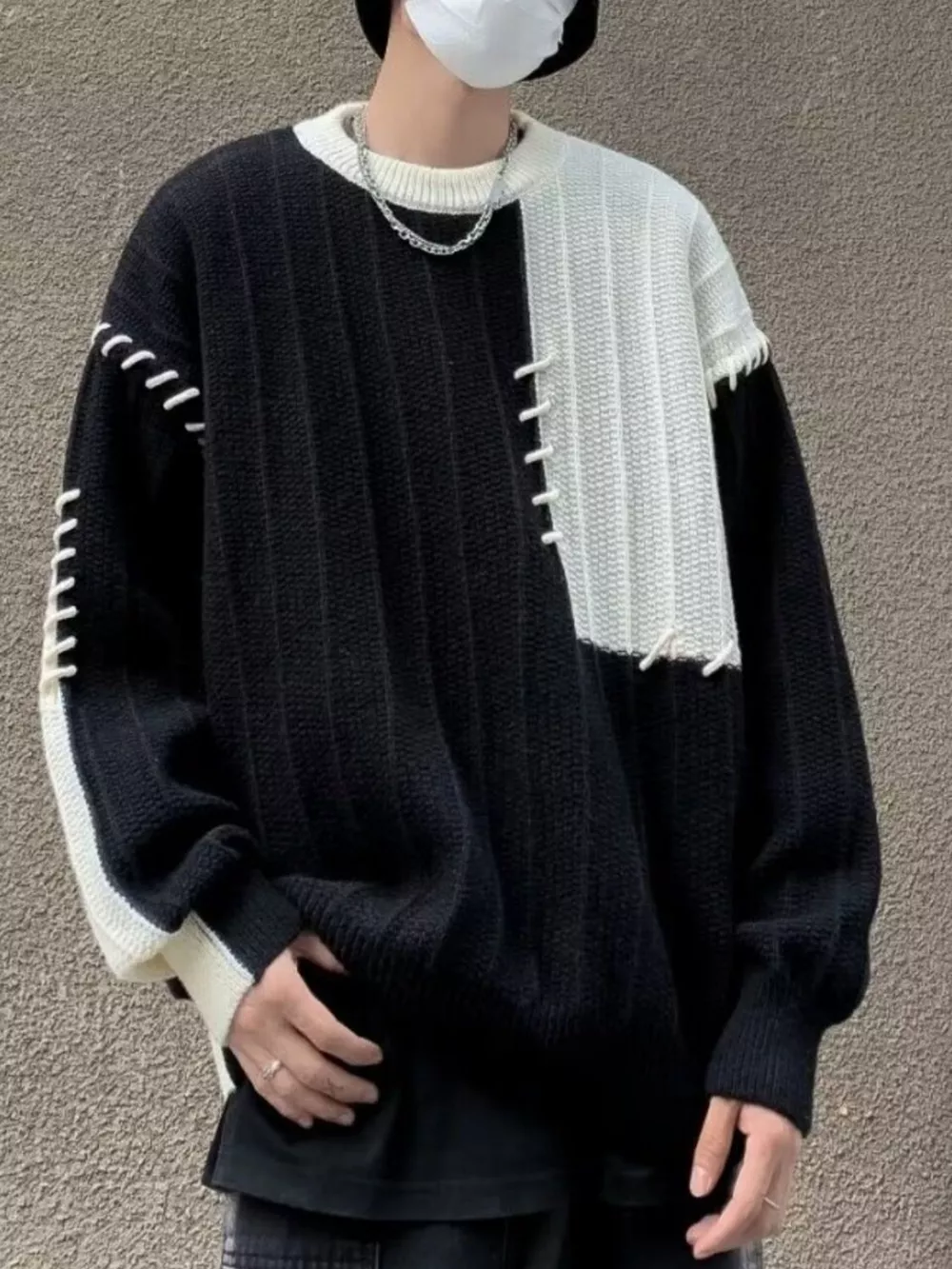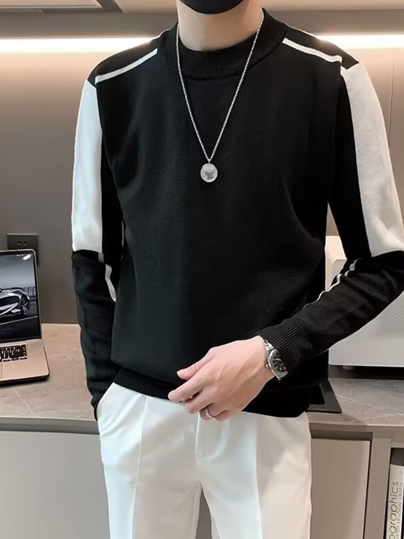 Men's Gradient Color Block Fuzzy Knit Pullover