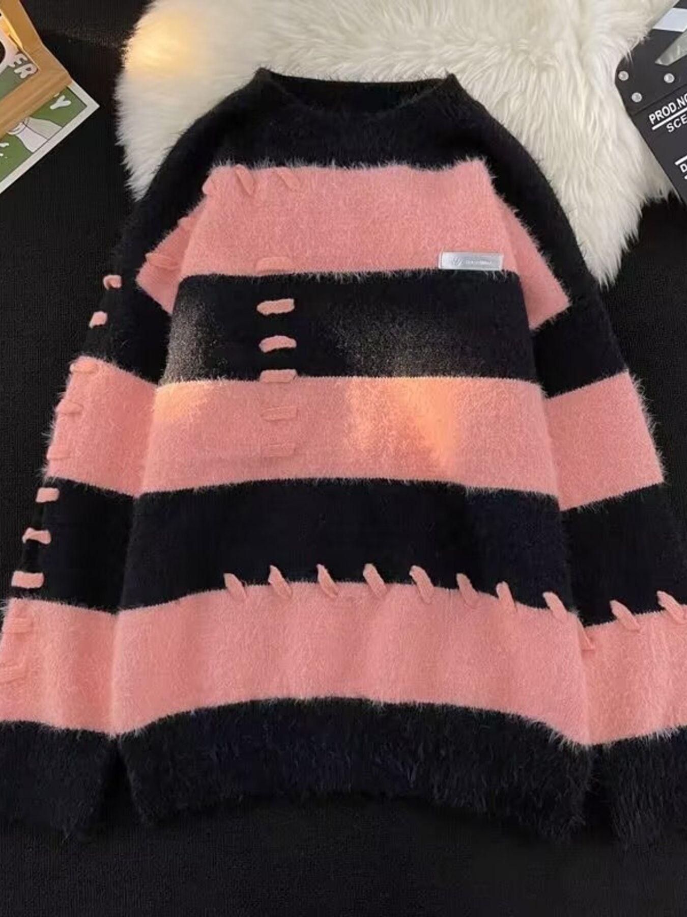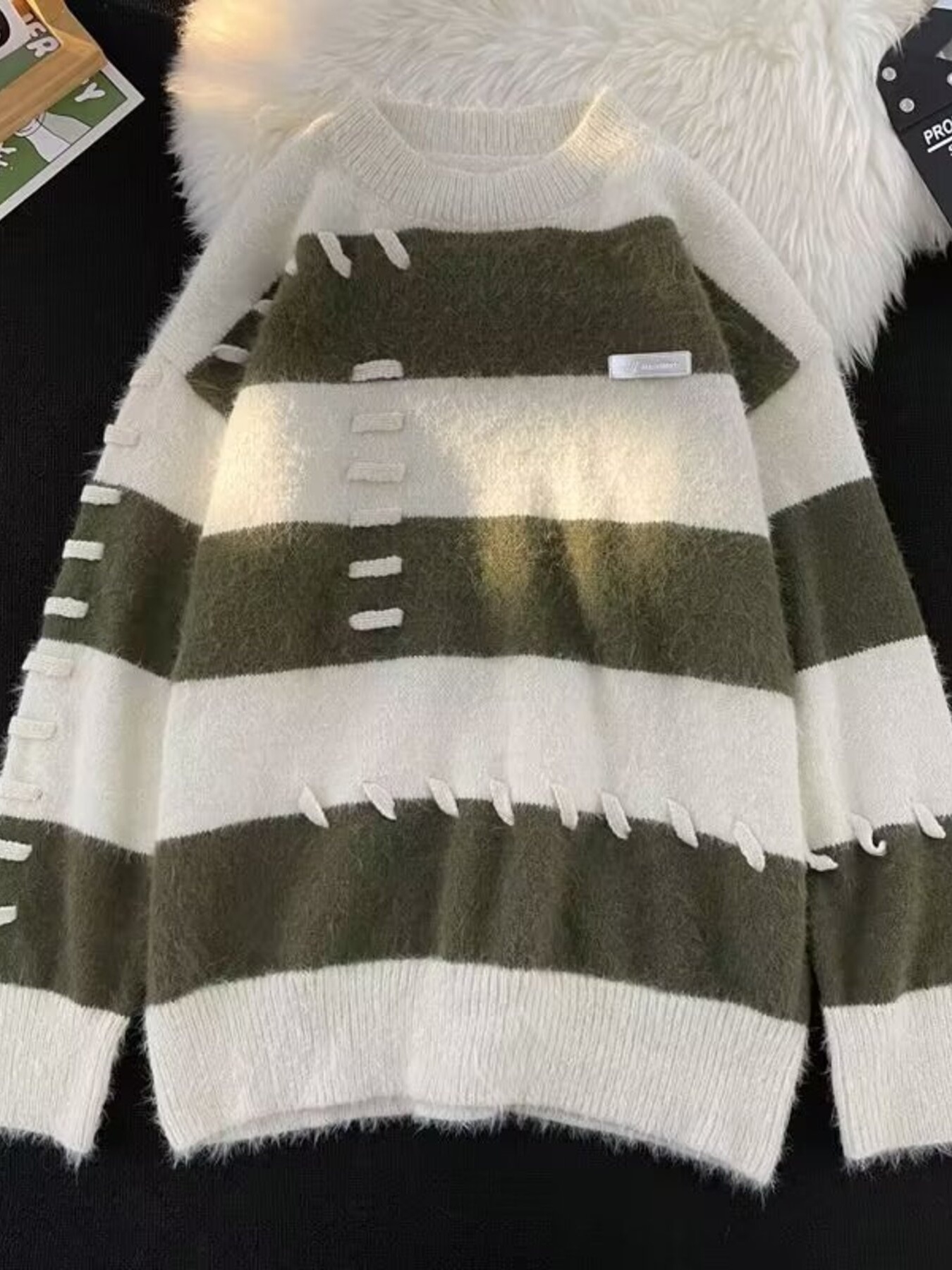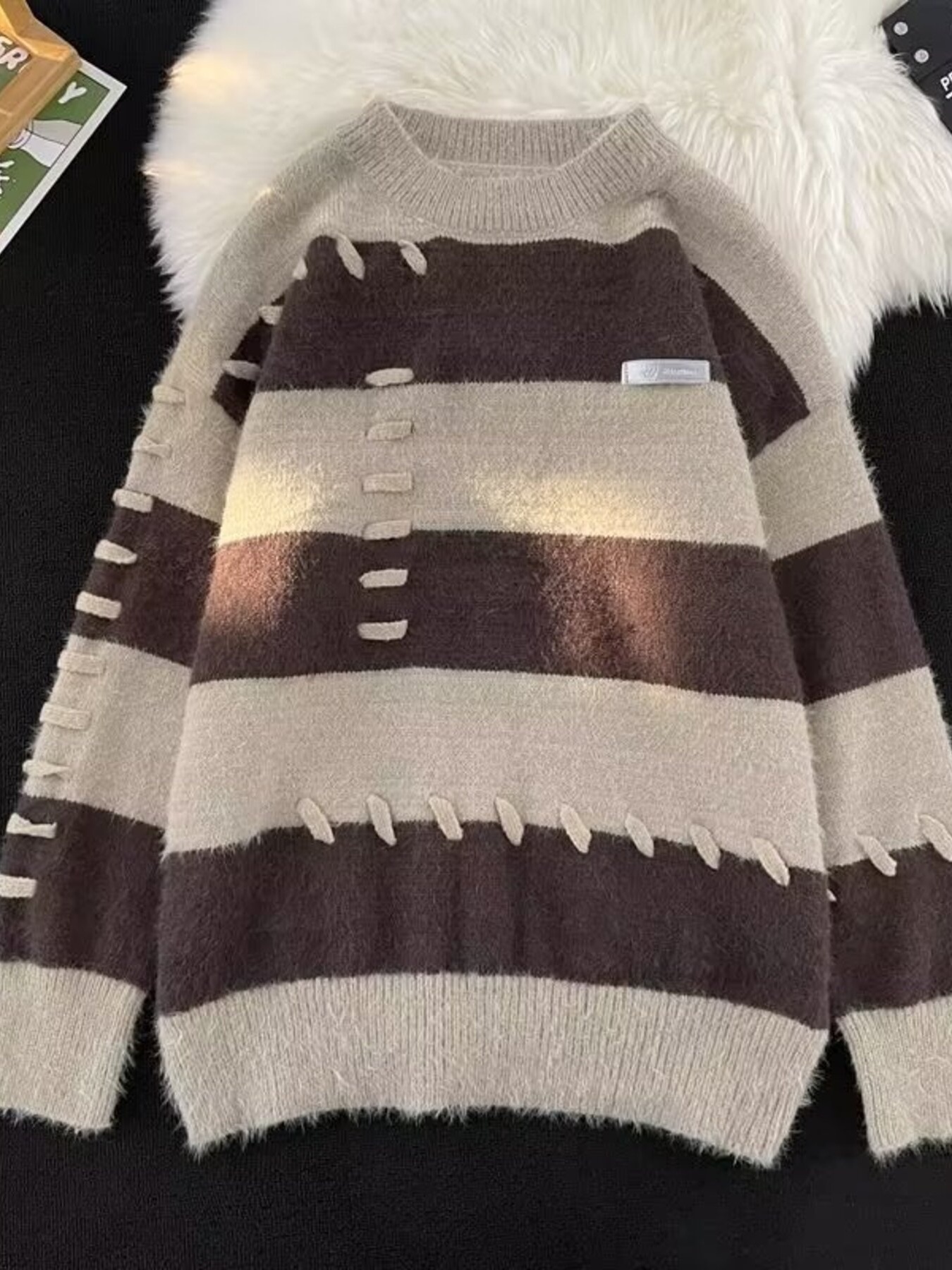 Men's Plus Size Striped Fuzzy Knit Pullover Sweater