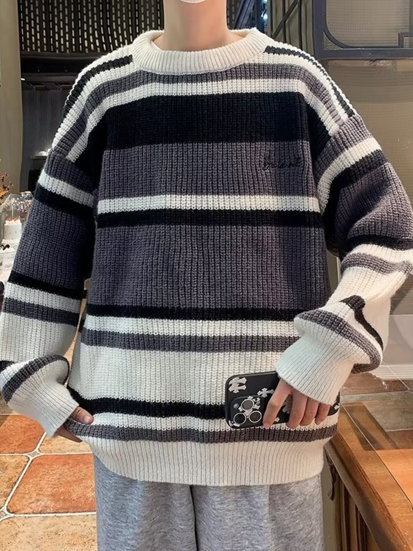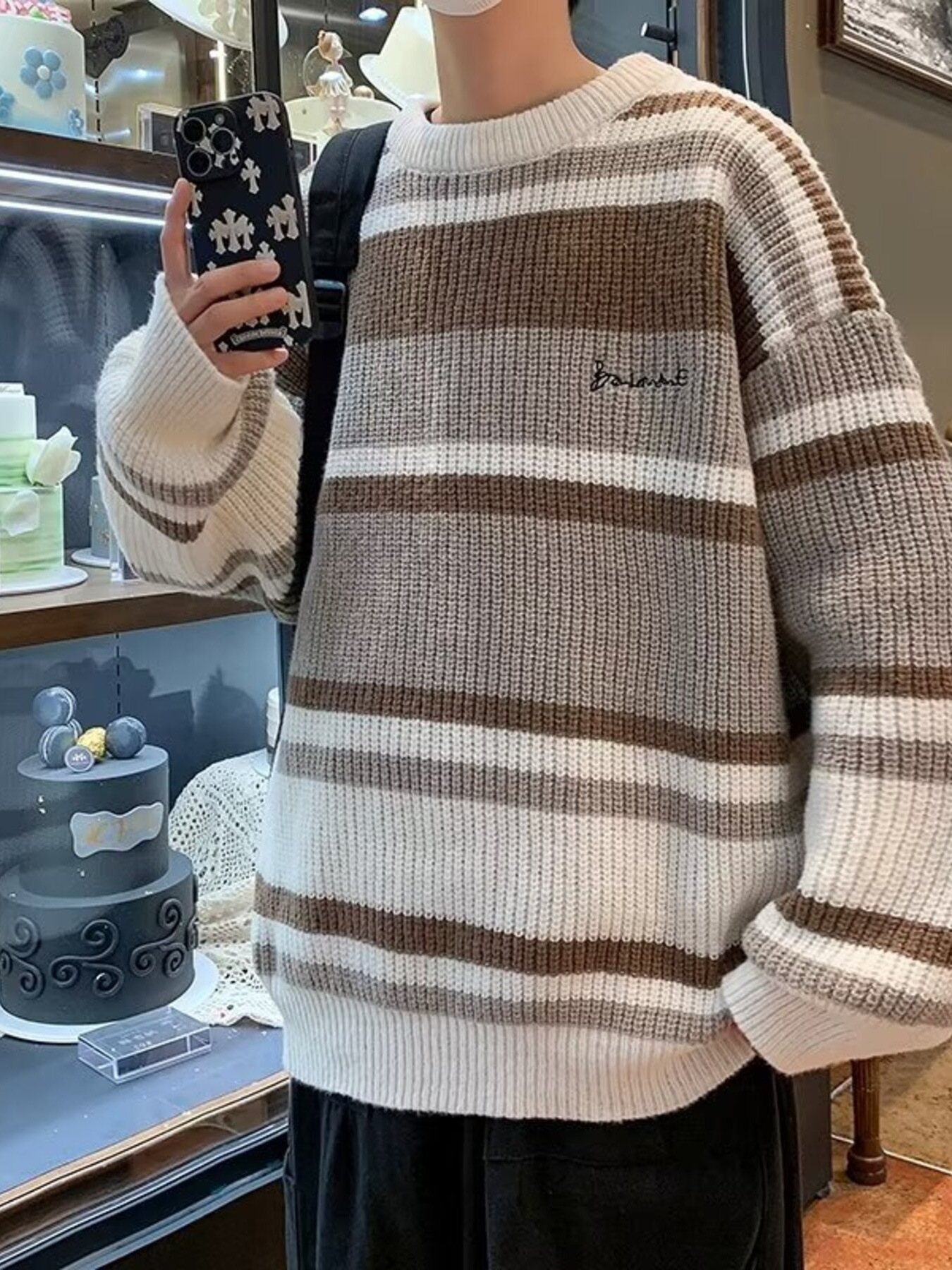 Men's Full Size Striped Pattern Round Neck Sweater Plus Size