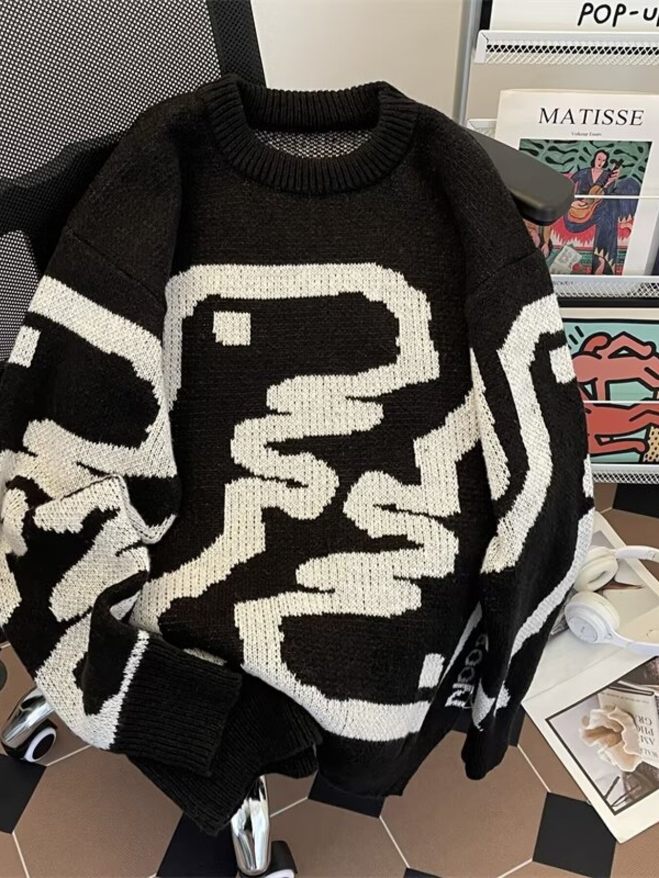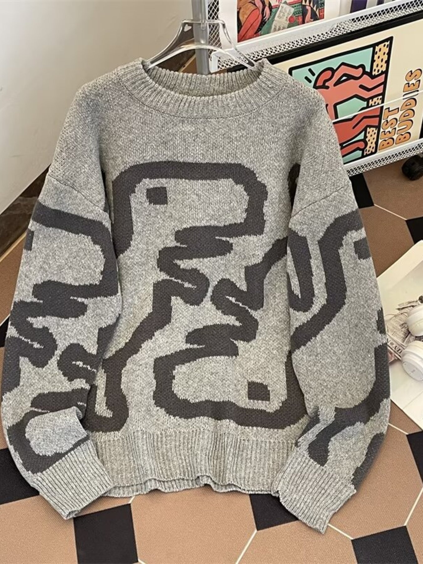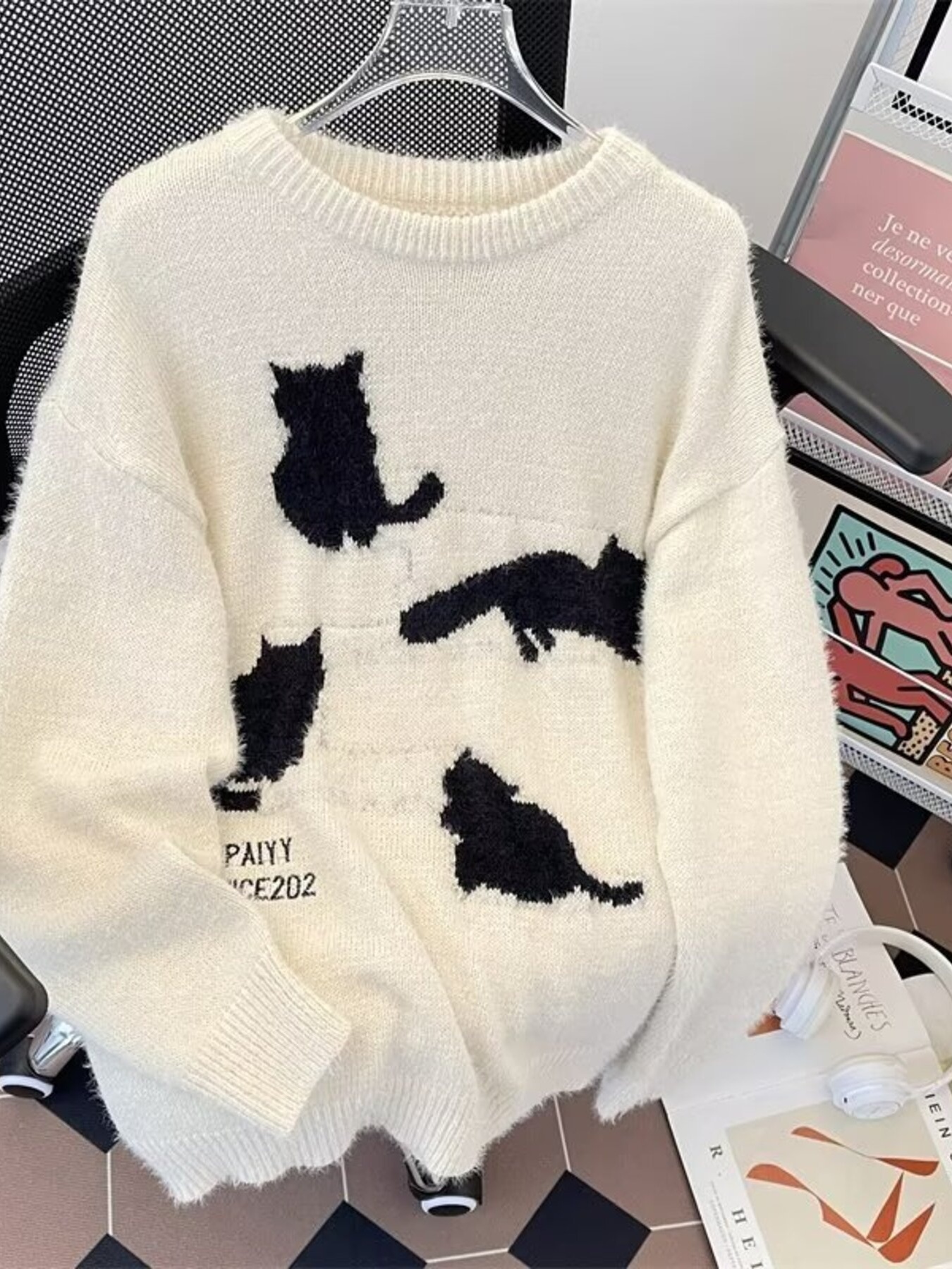 Men's Plus Size Cute Cat Pattern Knitted Pullover