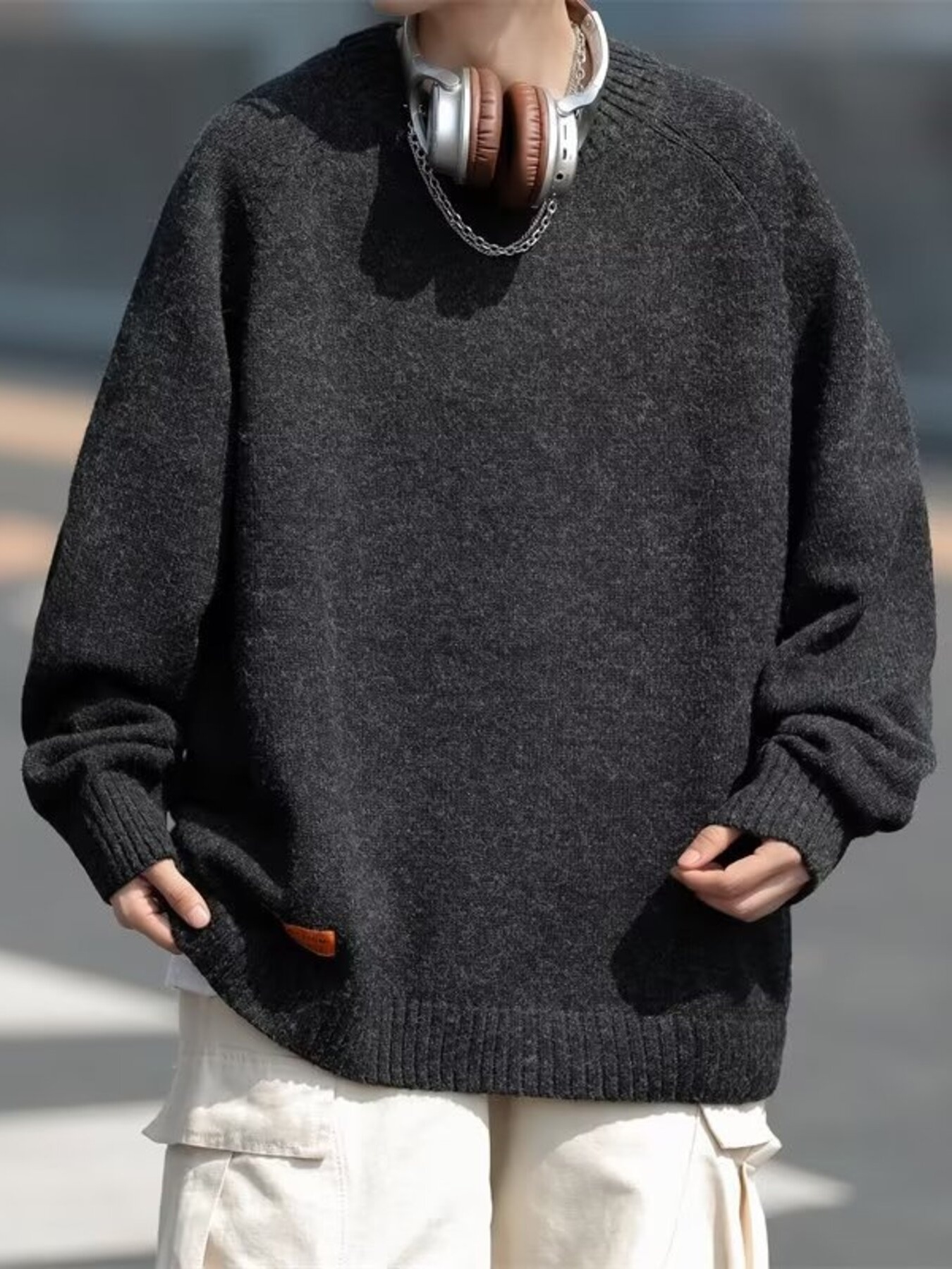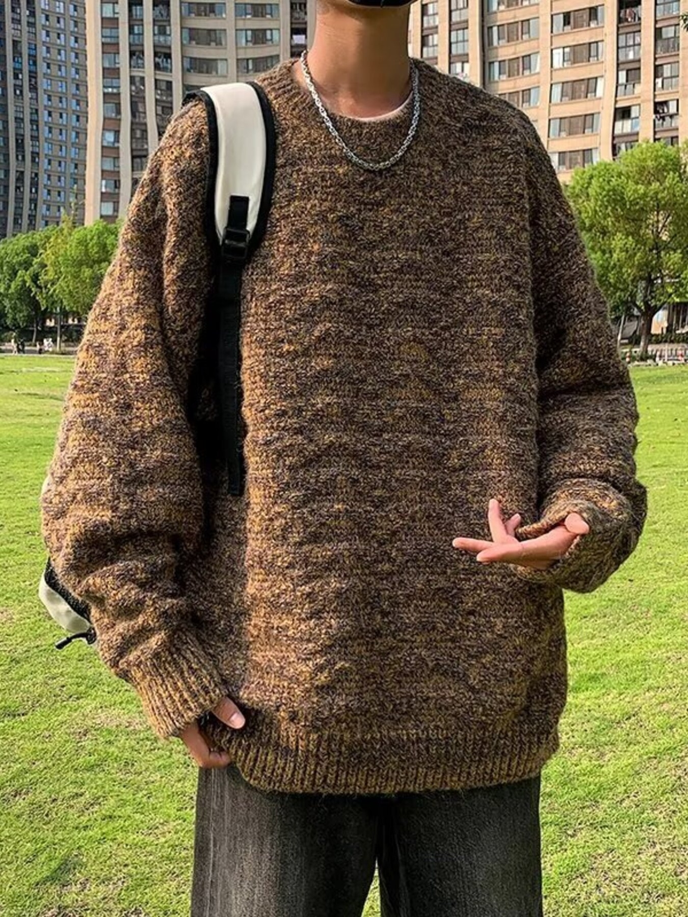 Men's Fluffy Round Neck Long Sleeve Sweater