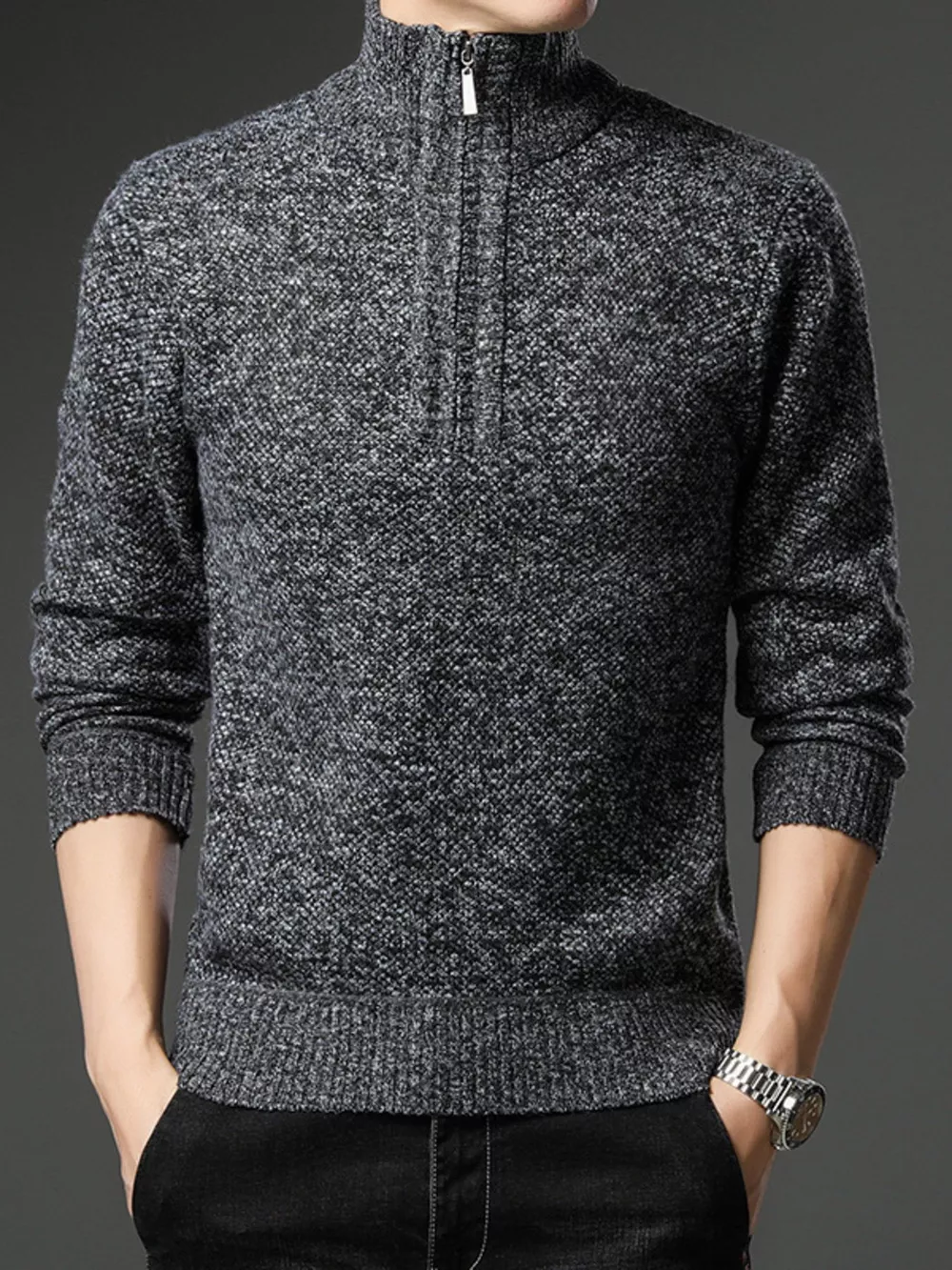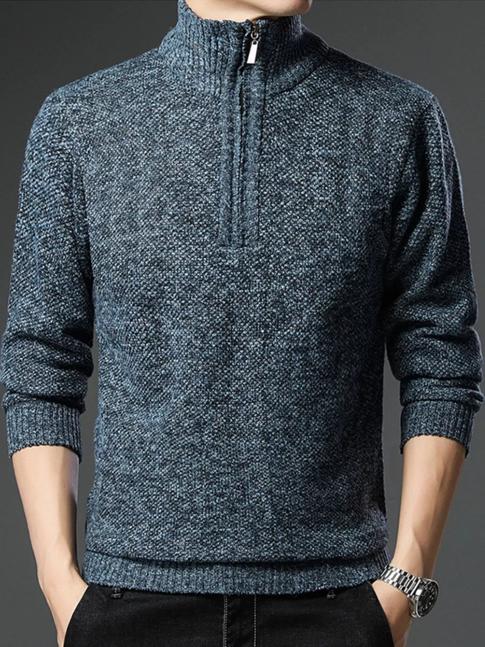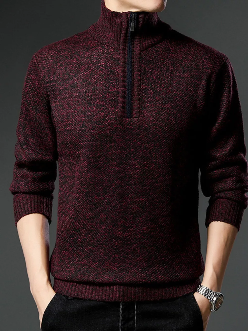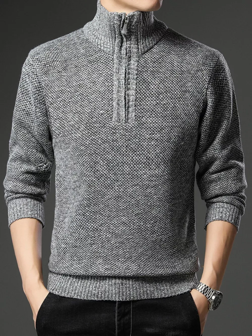 Men's Plus Size Half-Zip Knitted Pullover Sweater