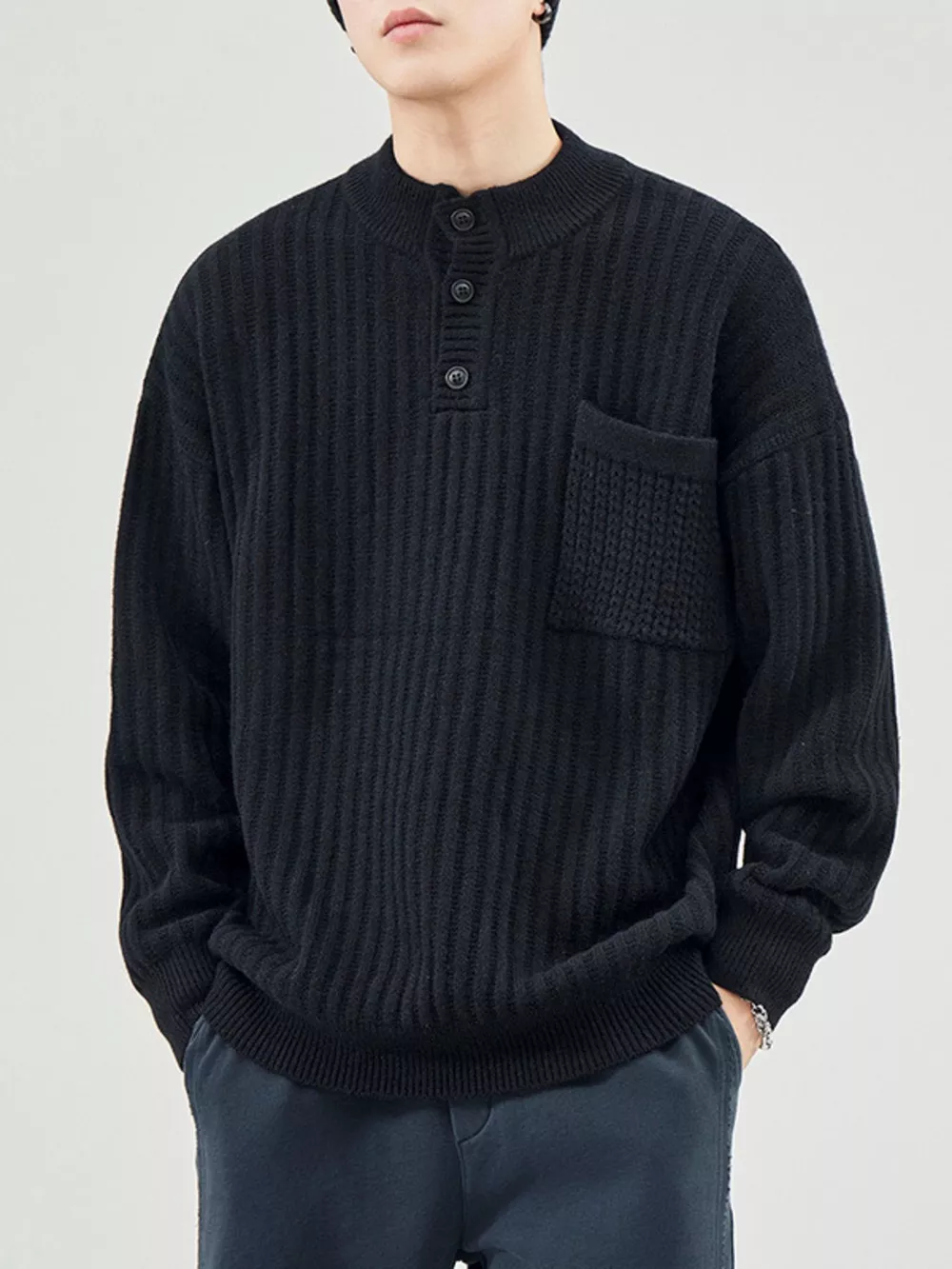 Men's Plus Size Button Detail Long Sleeve Sweater