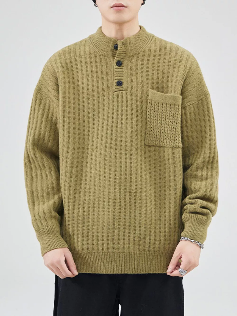 Men's Oversized Ribbed Long Sleeve Sweater